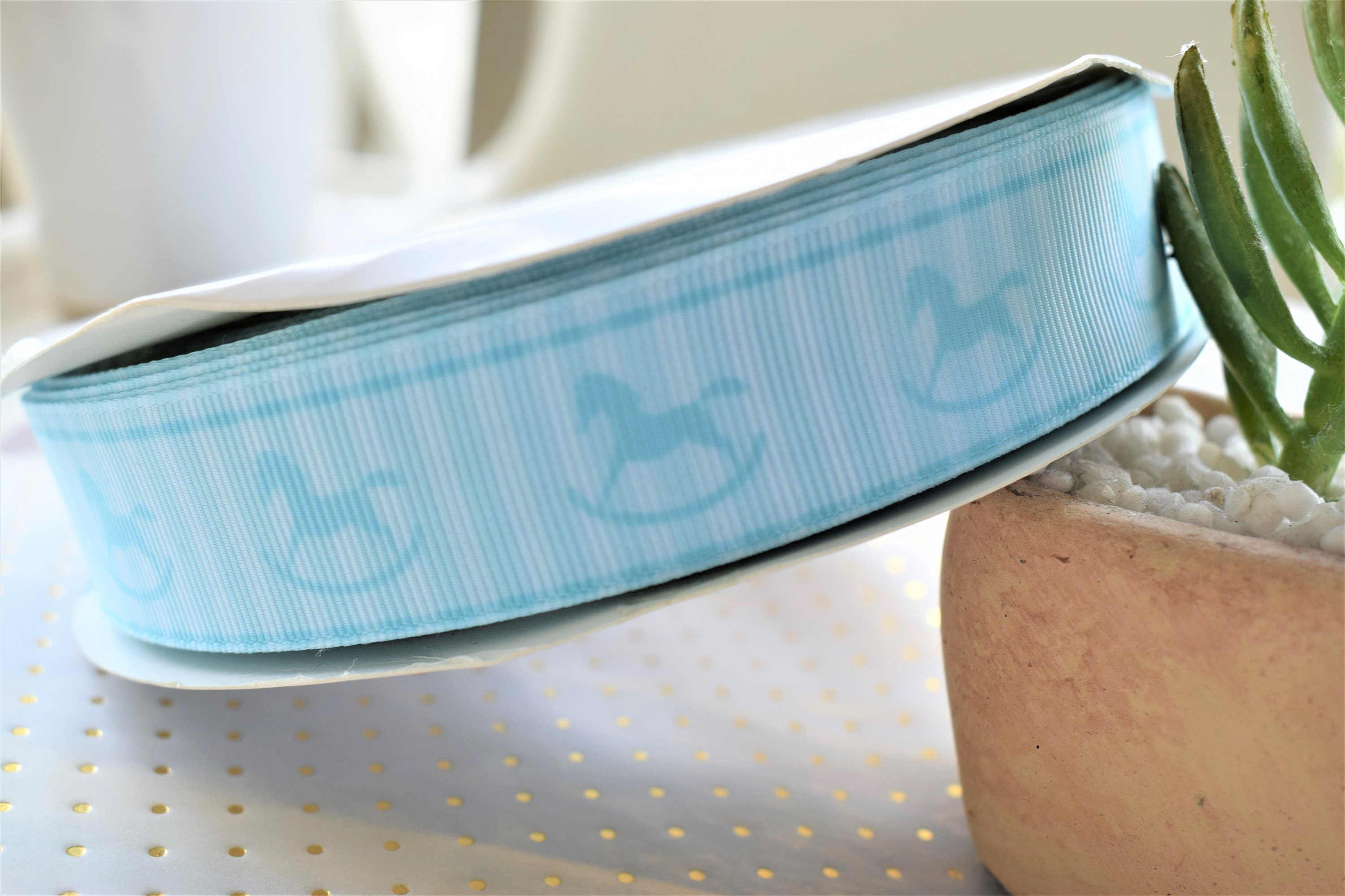 Blue Rocking Horse Baby Shower Ribbon, Boy Horse Baby Ribbon, Baby Horse Ribbon, Rocking Horse Printed Grosgrain, Boy Horse, 1" (25mm)