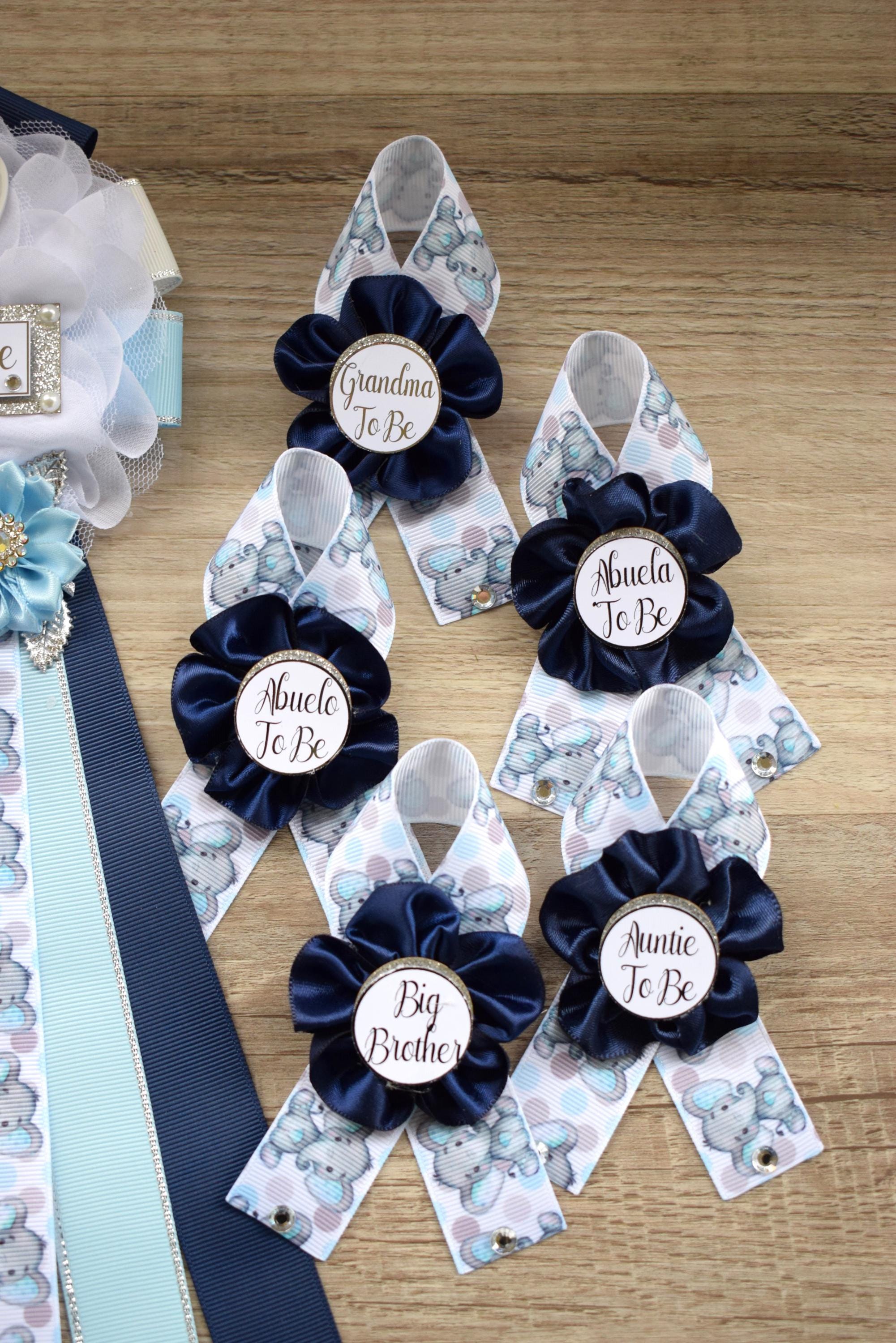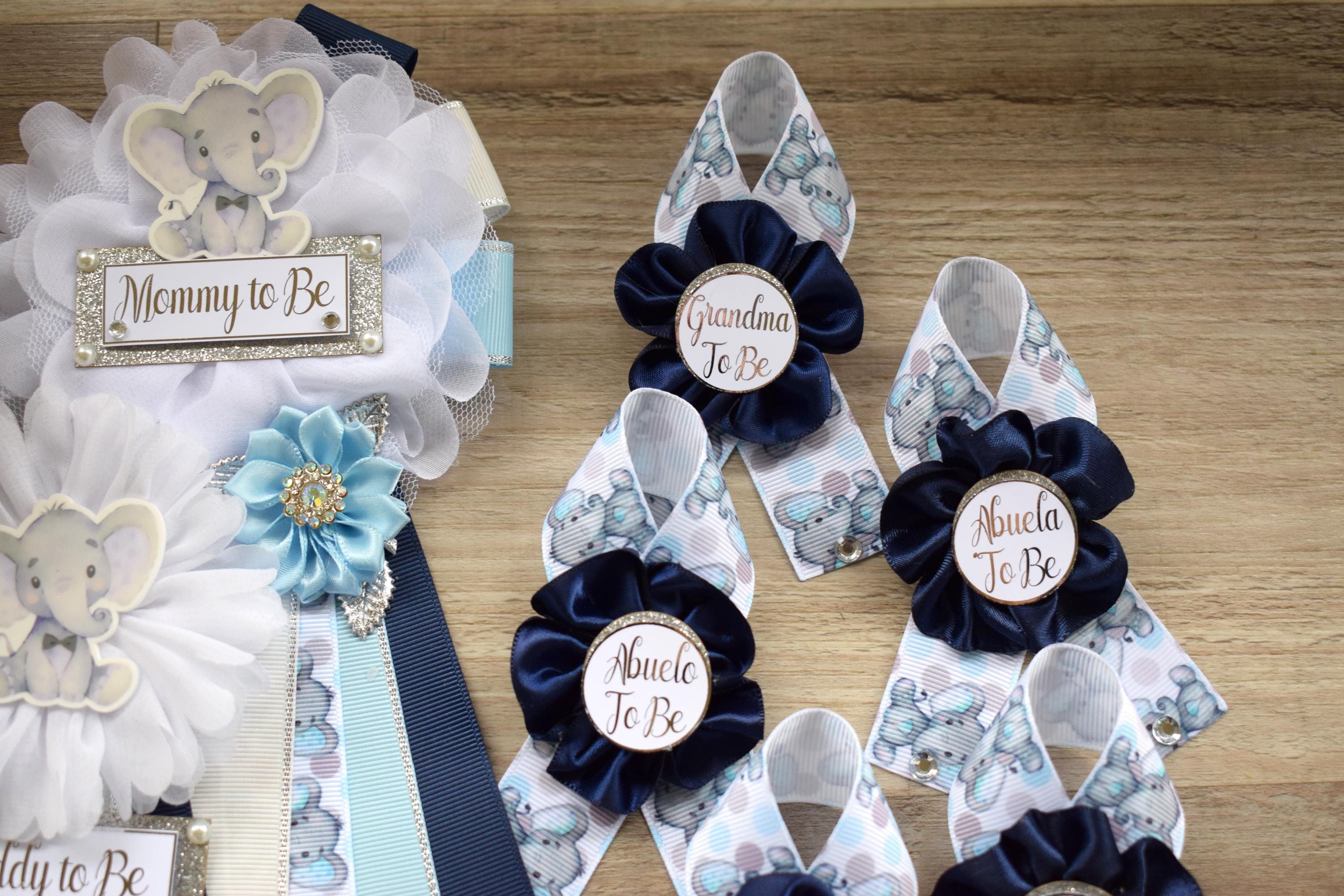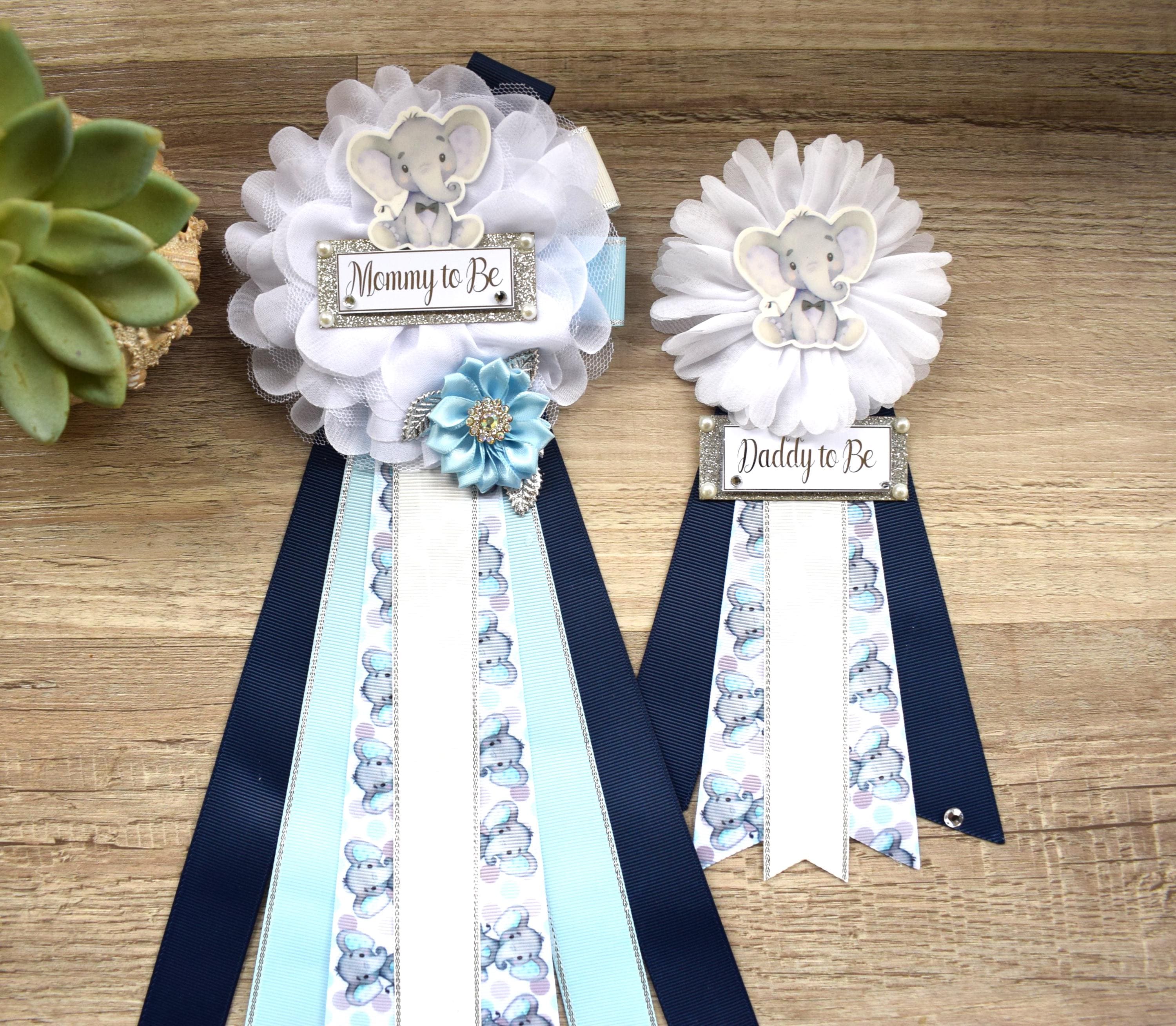 Navy Elephant Baby Shower, Blue Grey Maternity Sash, Boy Navy Blue Mommy To Be Ribbon, Daddy To Be Pin, A Little Peanut Is On The Way!