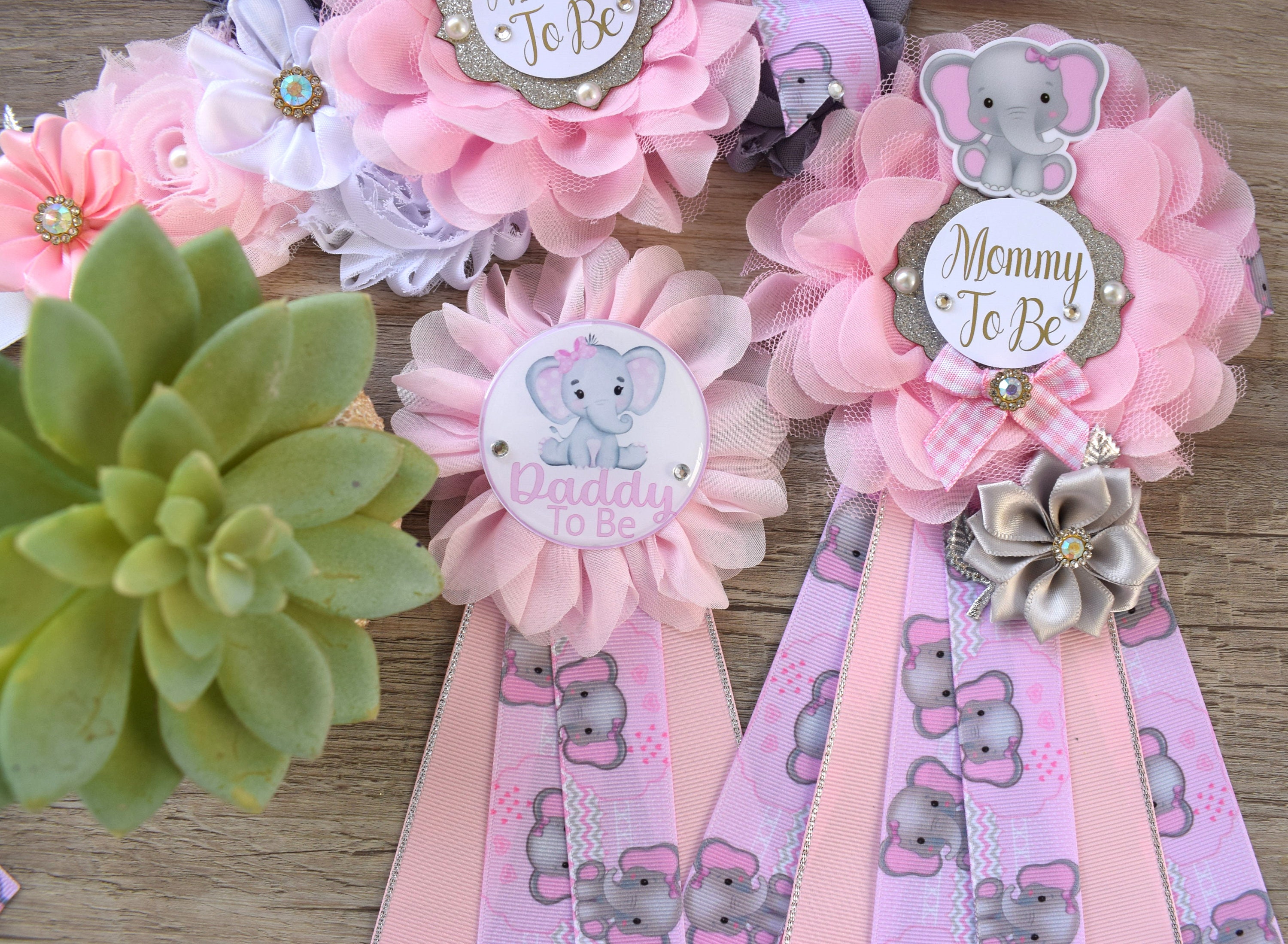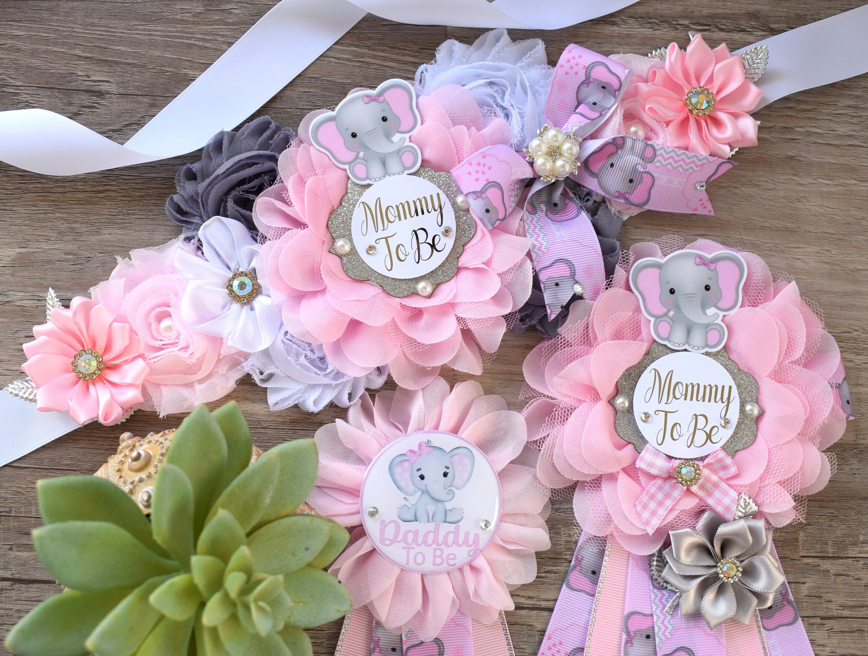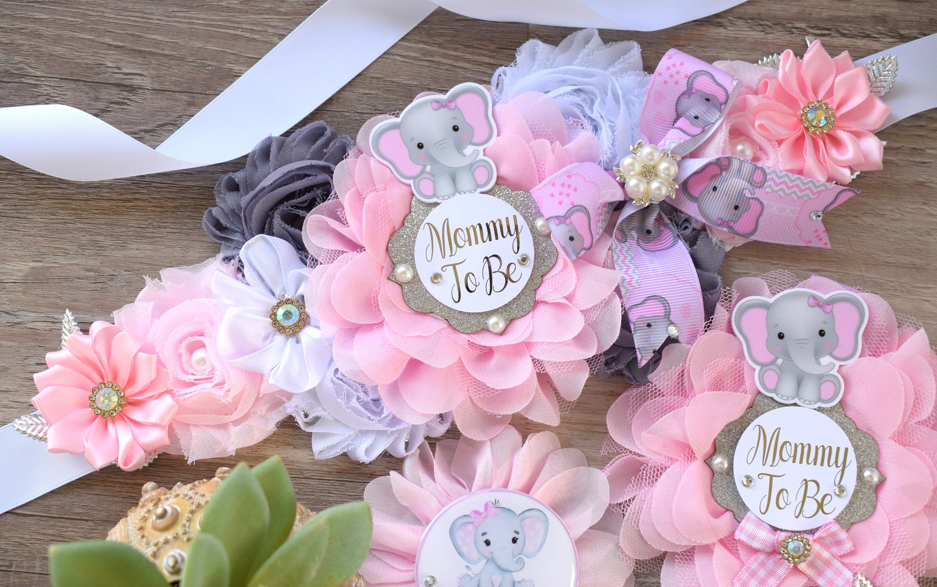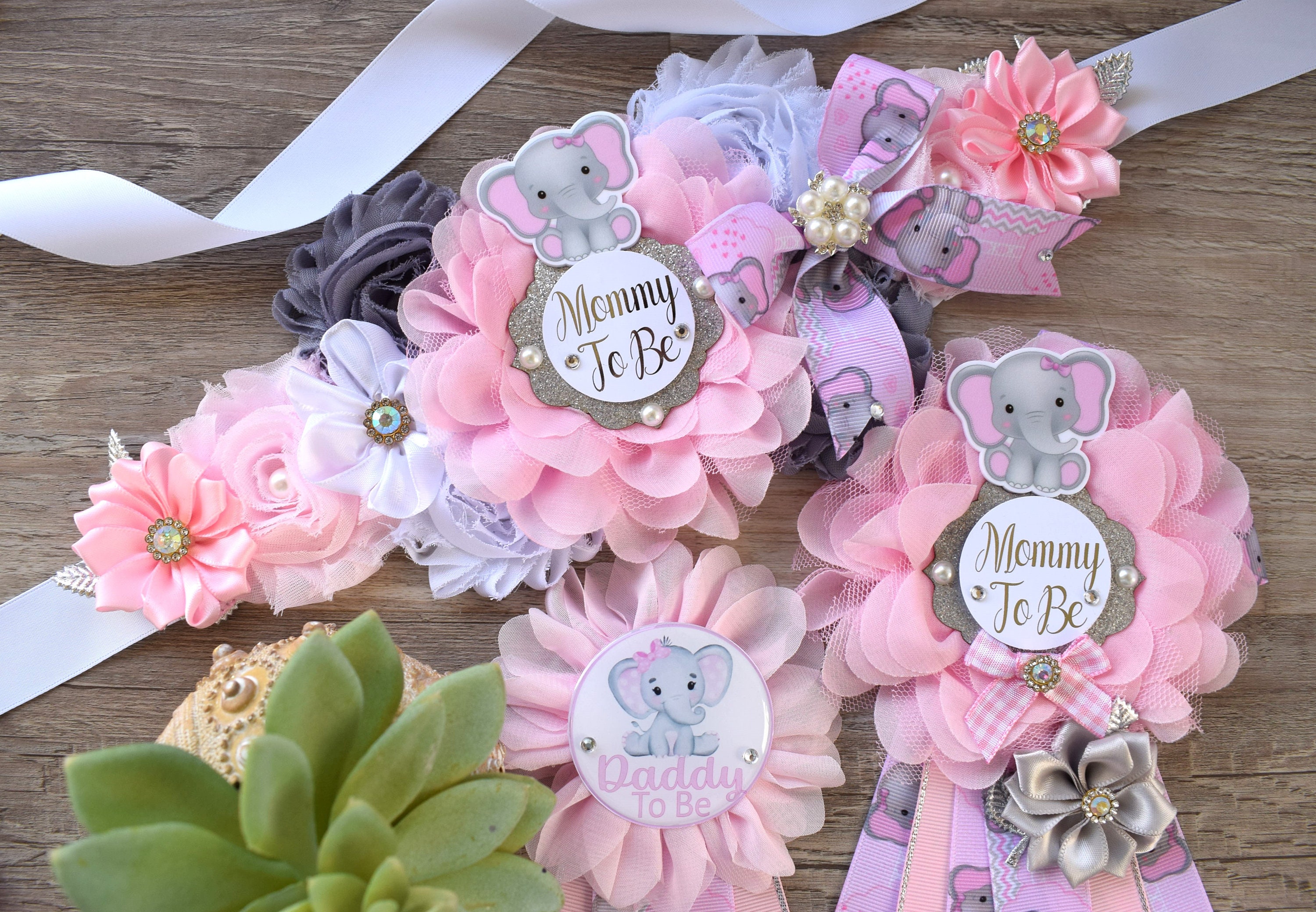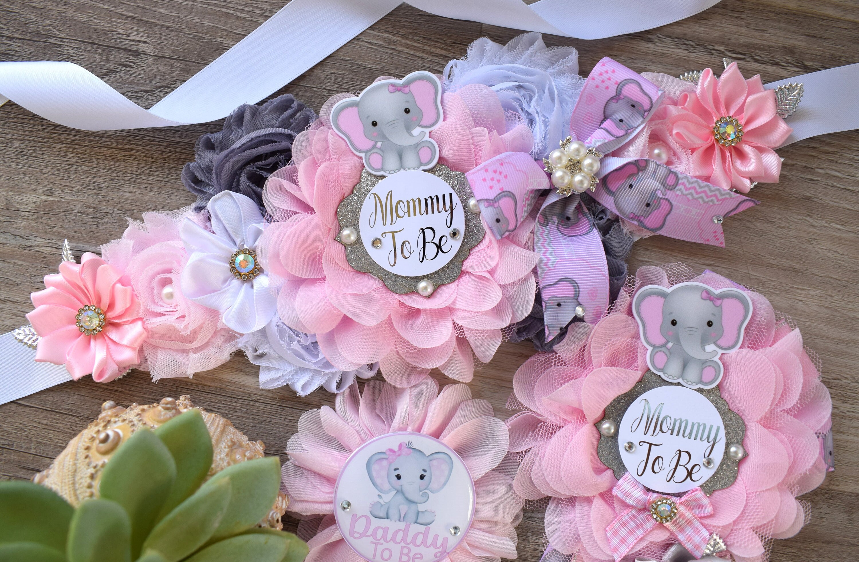 This Pink Elephant Sash & Pin Set were made especially for a Baby Shower or a Photo Prop.