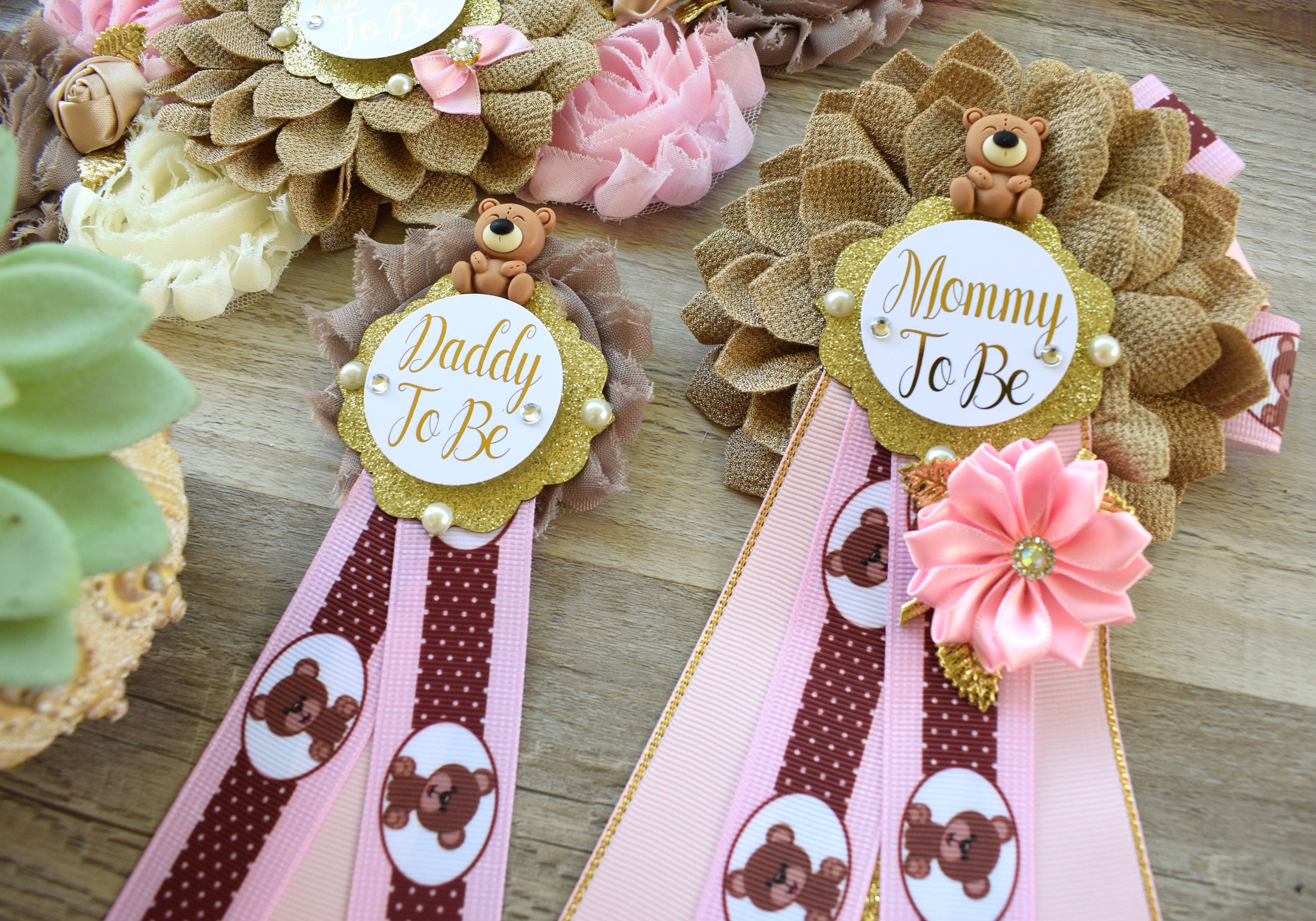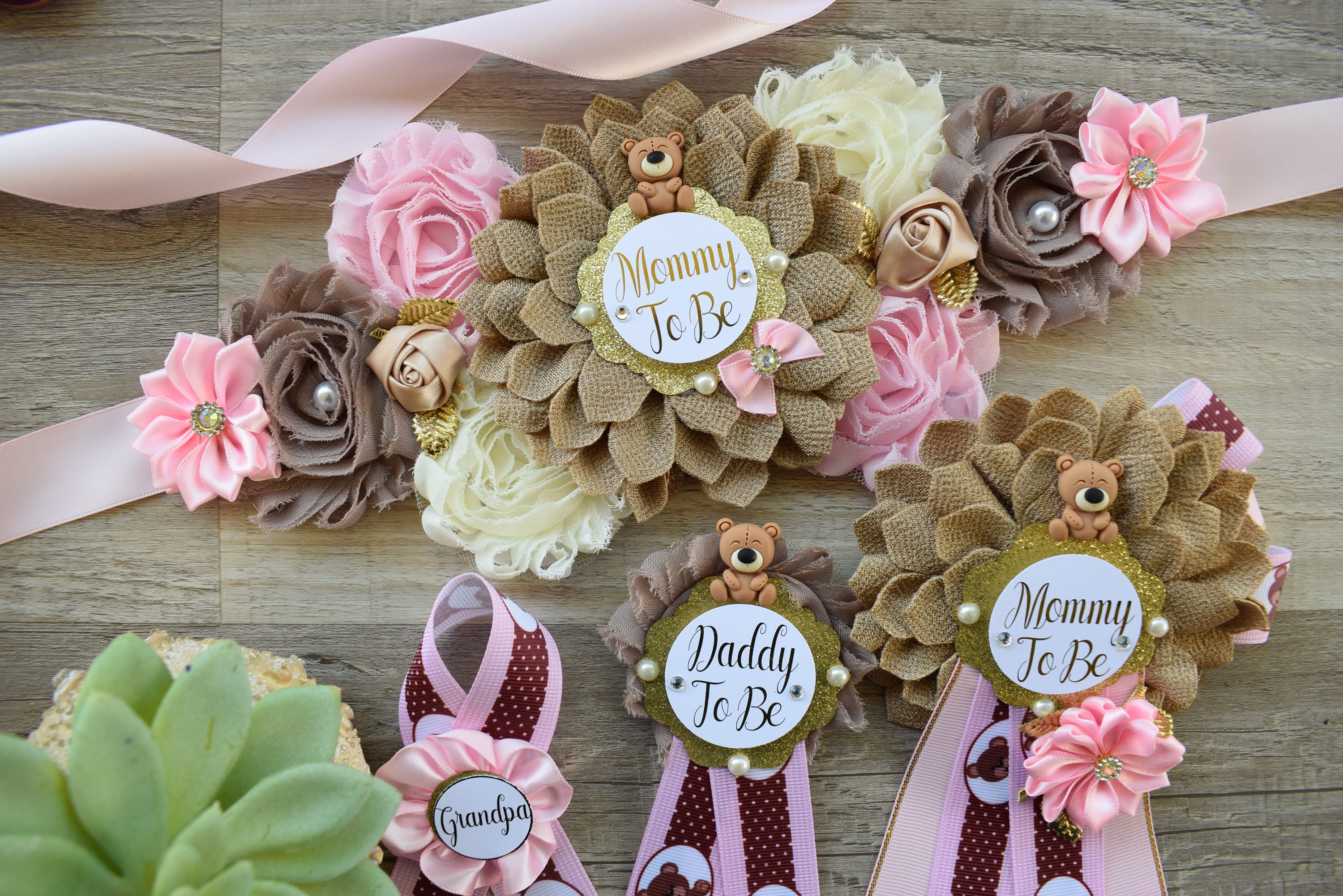 Girl Teddy Bear Baby Shower, Pink Bear Mommy Bear Maternity Sash, Papa Teddy Bear Mommy Daddy To Be Corsage, Pink Girl Teddy Bear, Custom