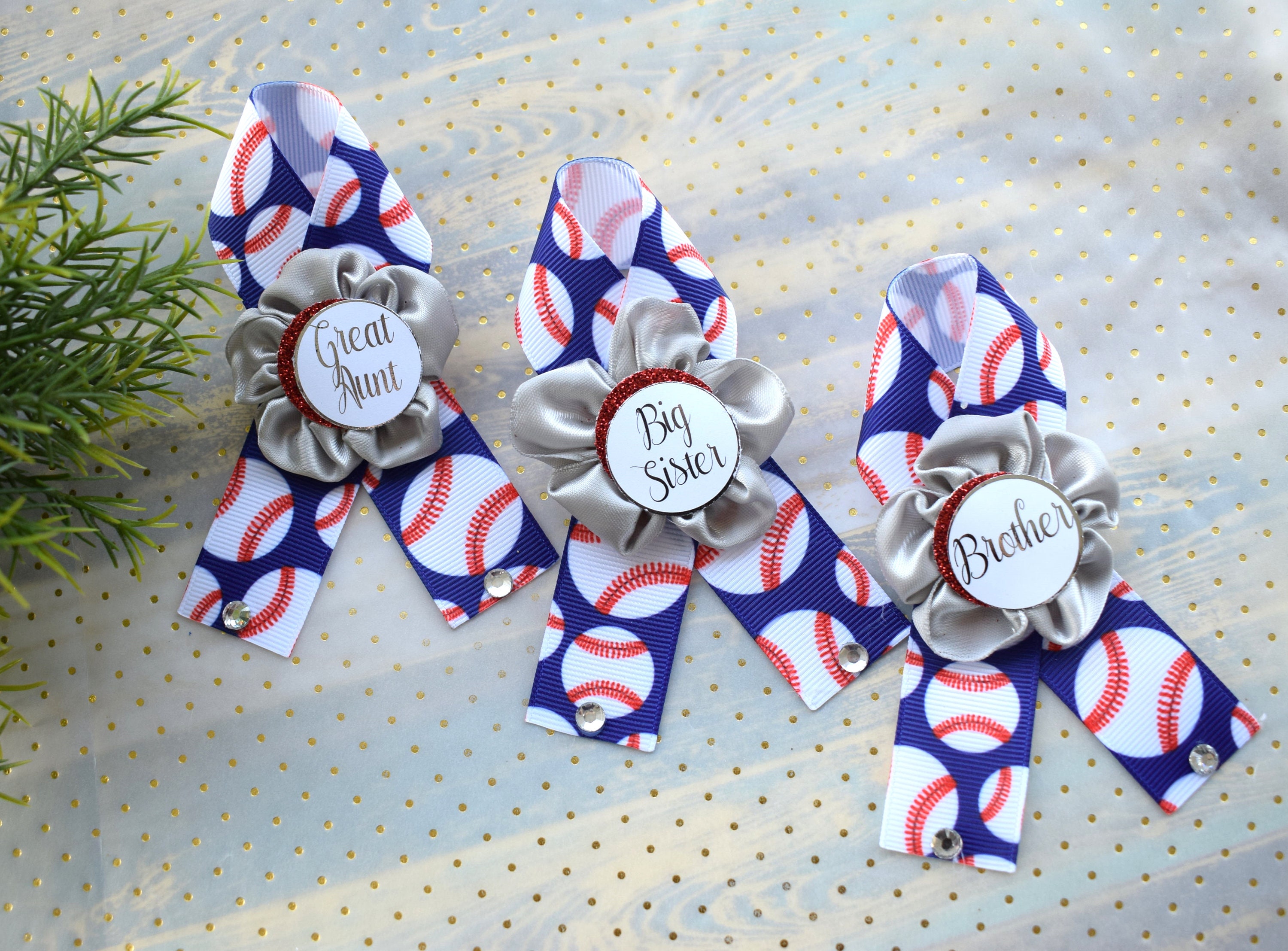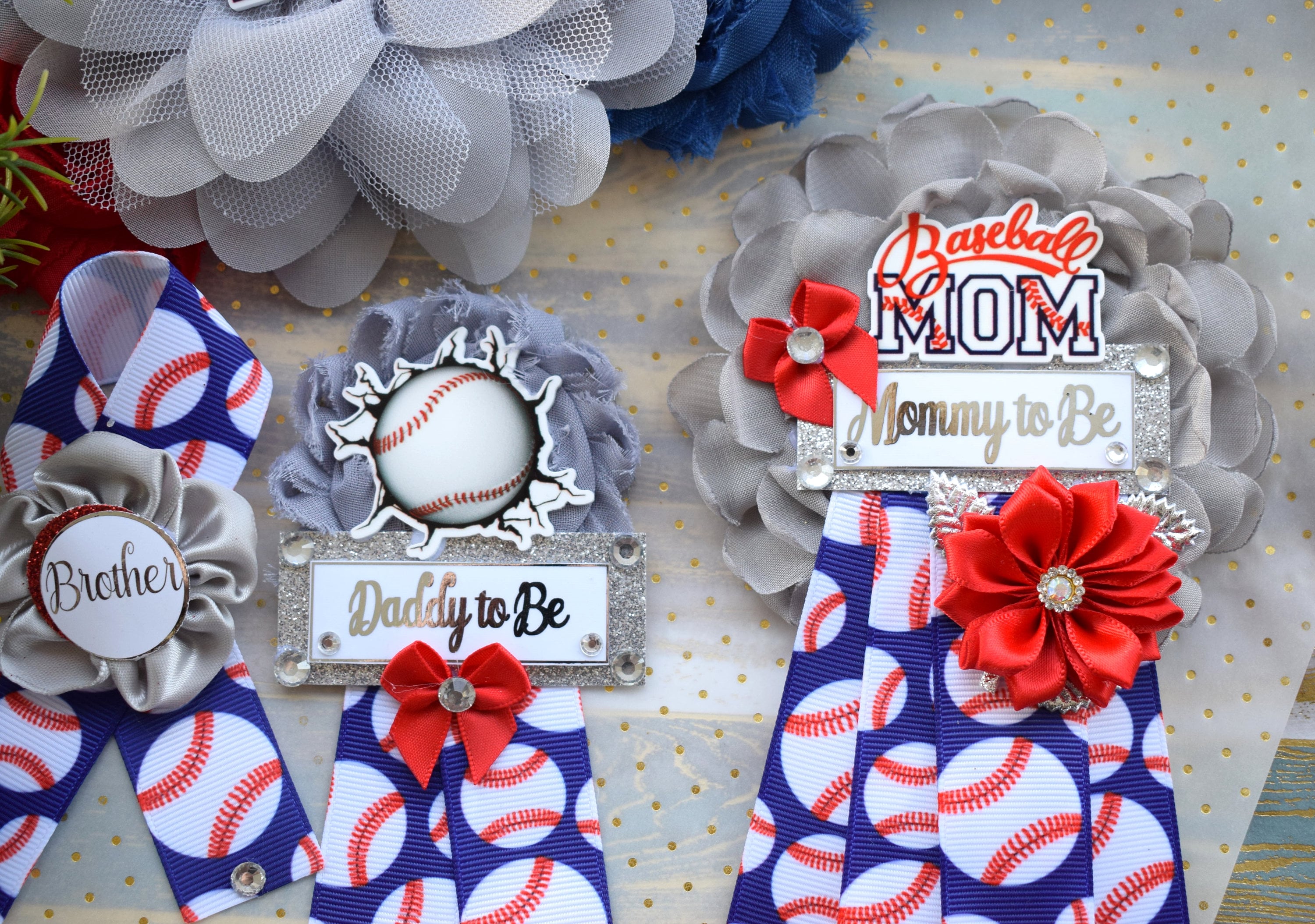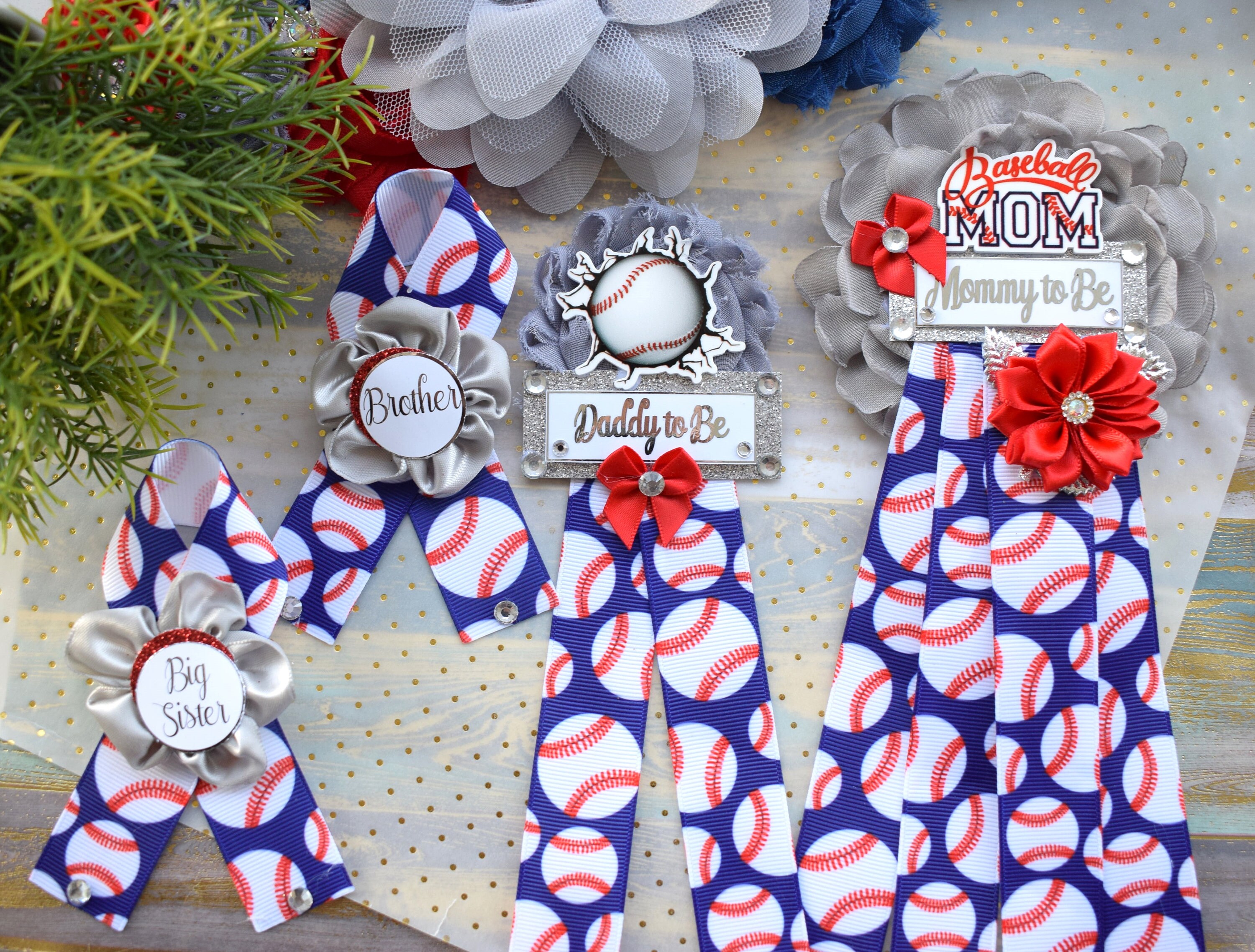 This Baseball Theme Sash & Pin Set was made especially for a Baby Shower or a Photo Prop.