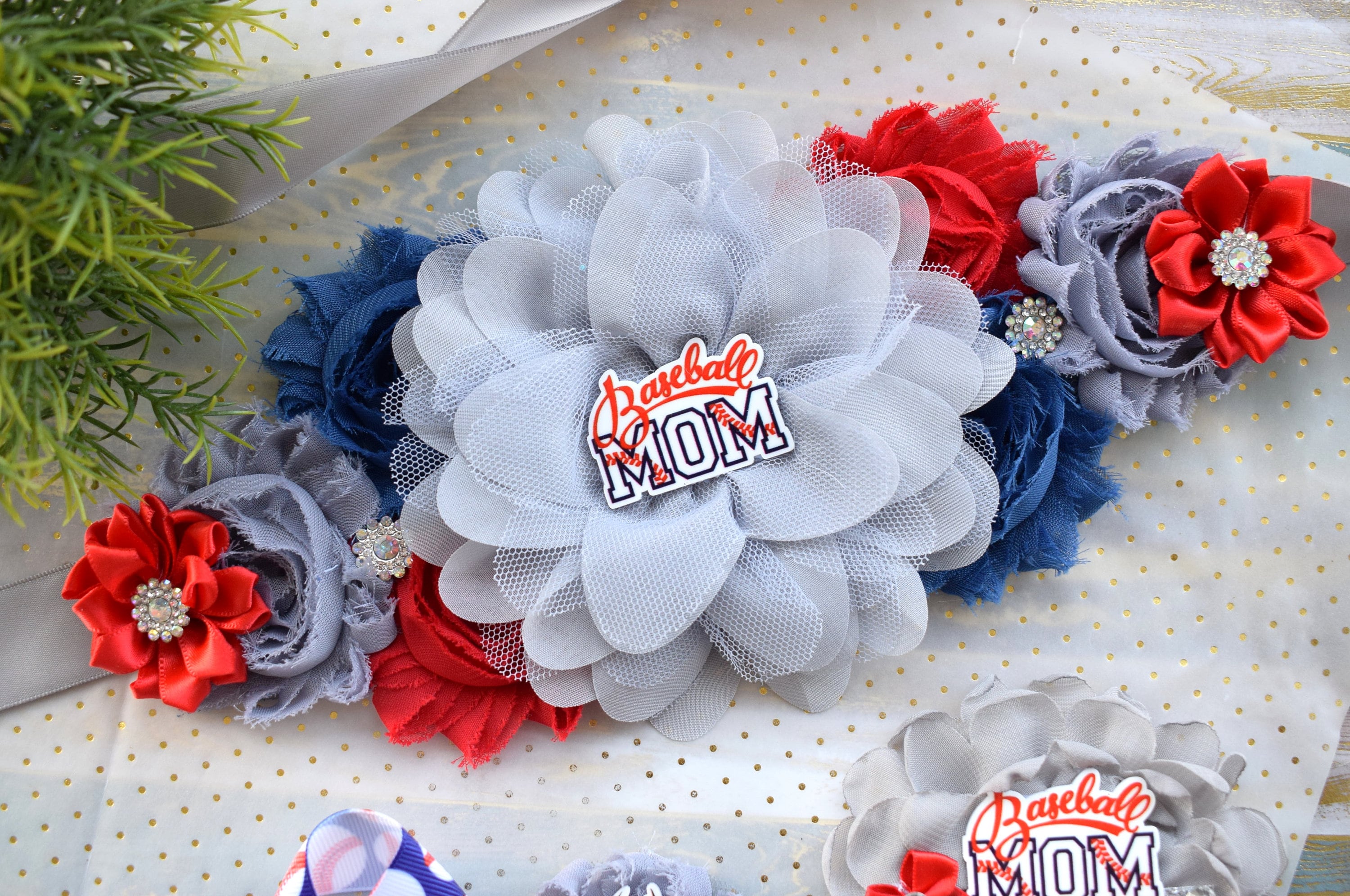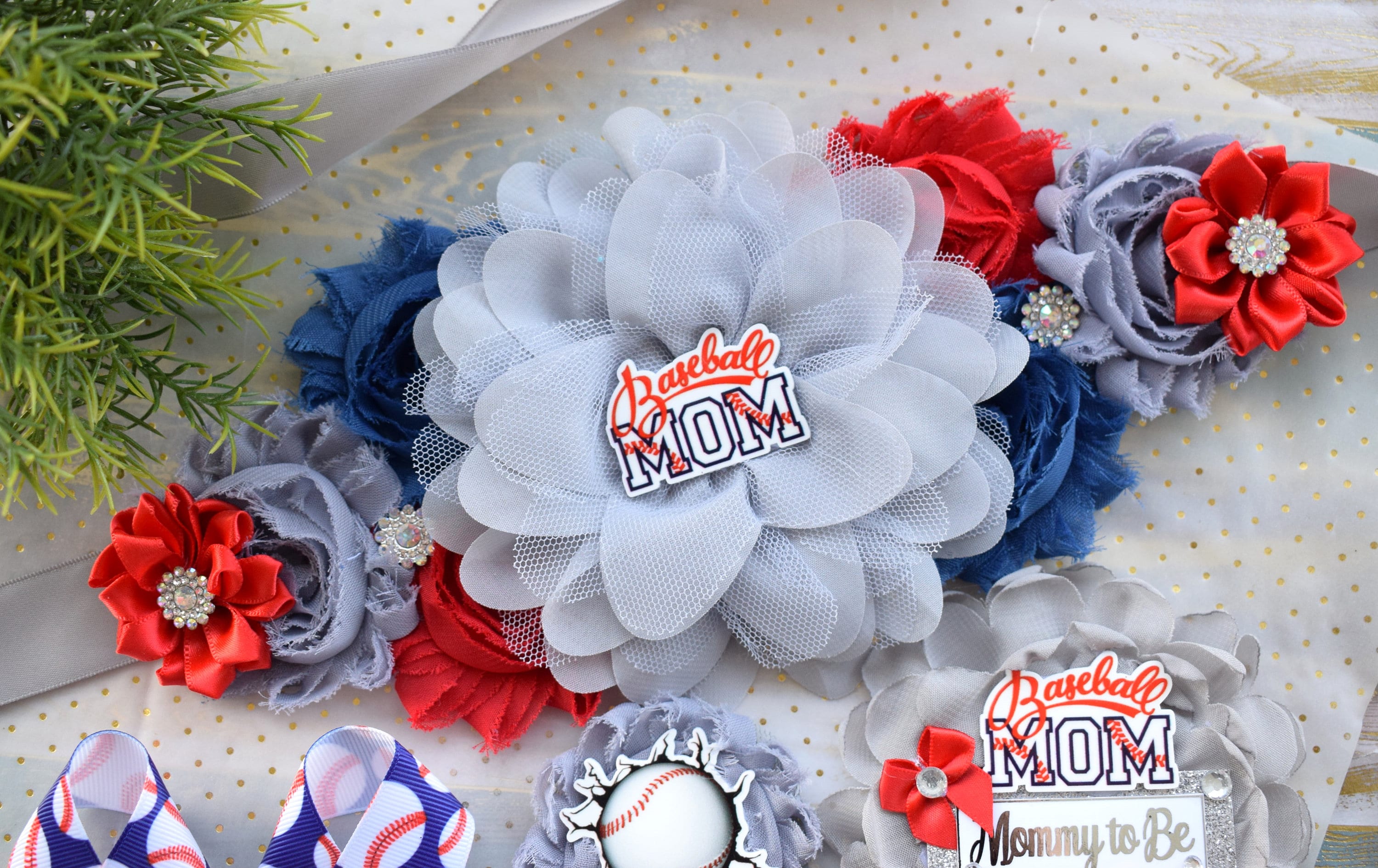Baseball Baby Shower, Sport Baby Shower, Red Blue Flower Sash, Sport Maternity Sash, Red Blue White Sport Flower Sash, Custom Belly Sash