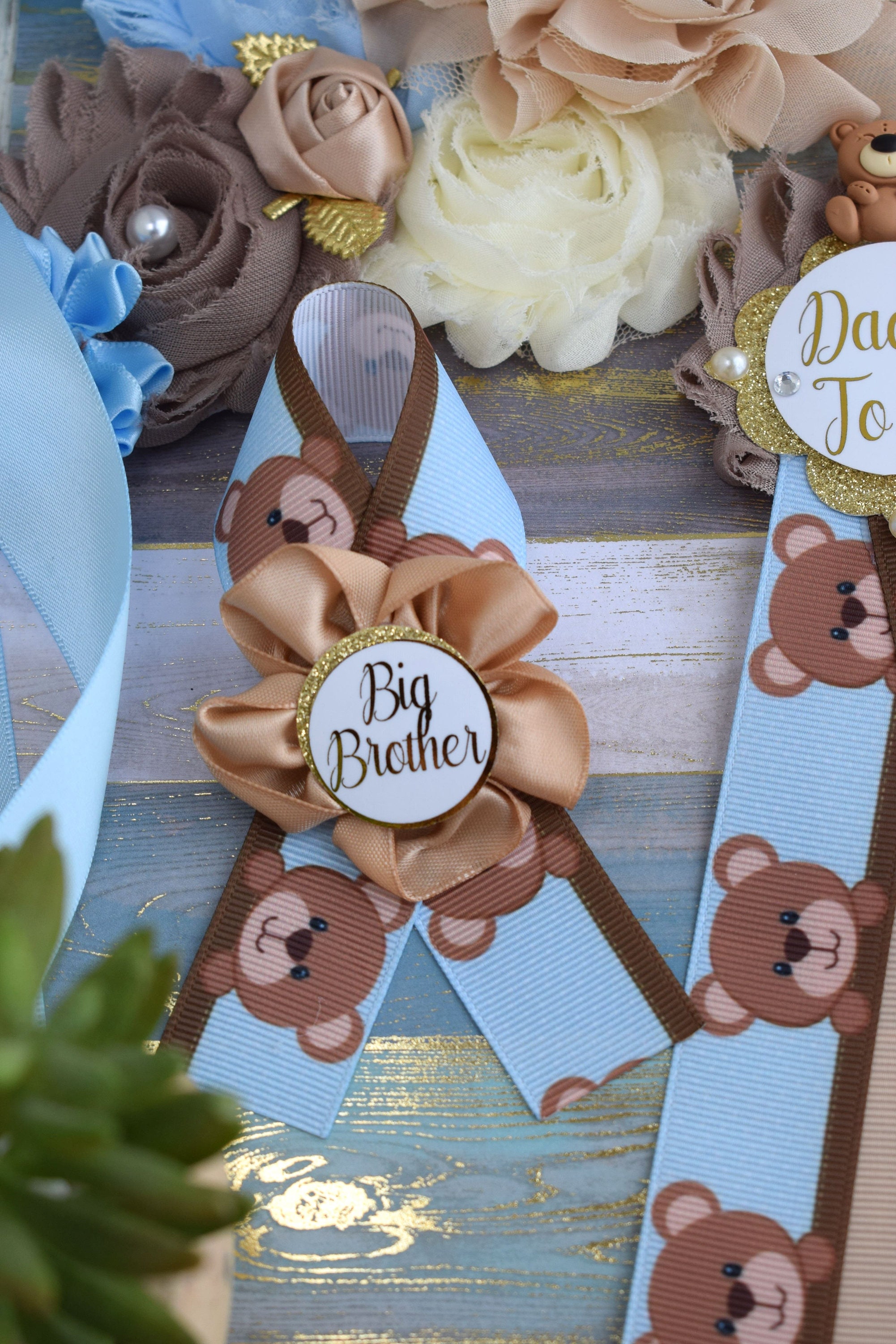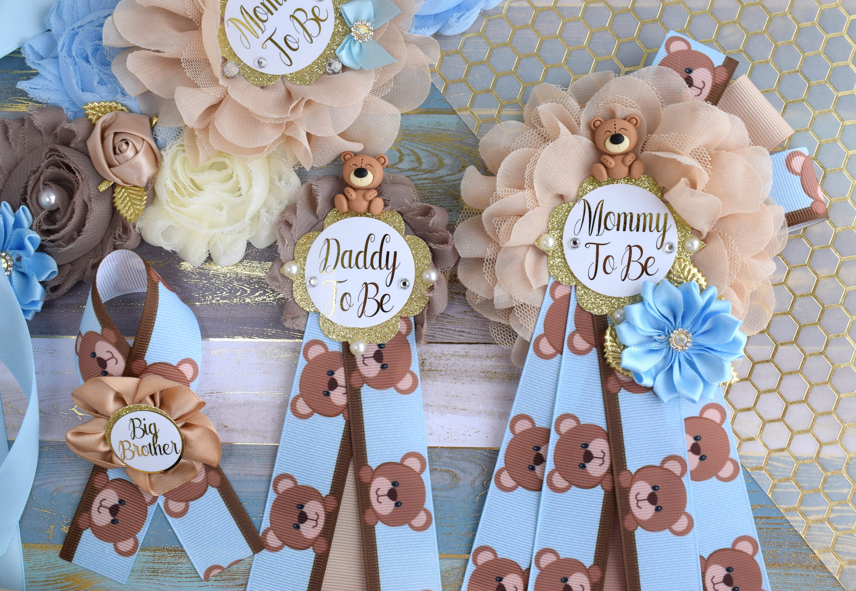 Blue Bear Baby Shower, Teddy Bear Blue Flower Sash, Teddy Bear Corsage Pin, Bear Mommy To Be, Bear Daddy To Be, Bear Baby Shower, Custom