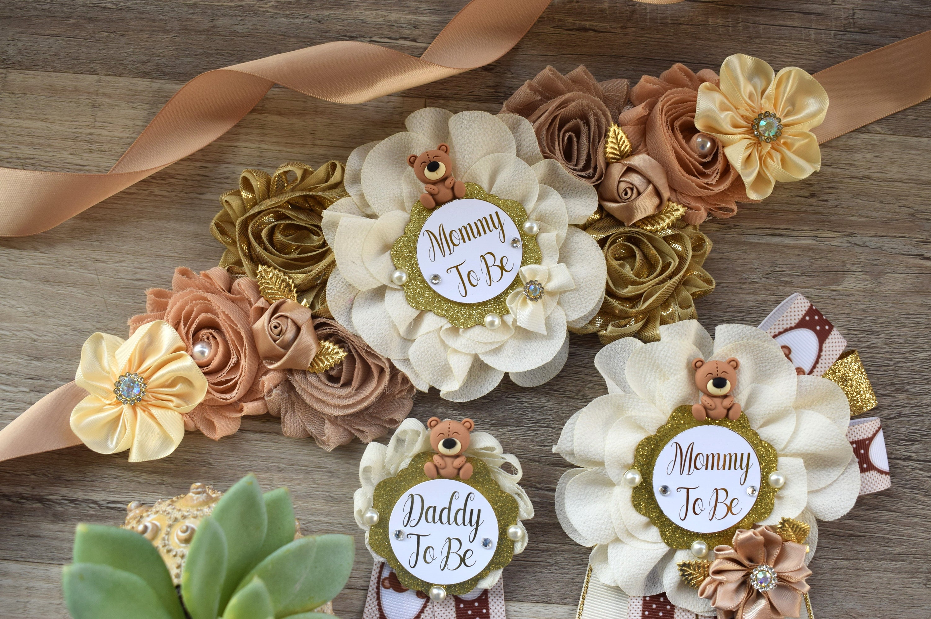 Teddy Bear Baby Shower, Teddy Bear Flower Sash, Ivory Tan Beige Teddy Bear Corsage Pin, Bear Mommy To Be, Teddy Bear Daddy To Be, Custom