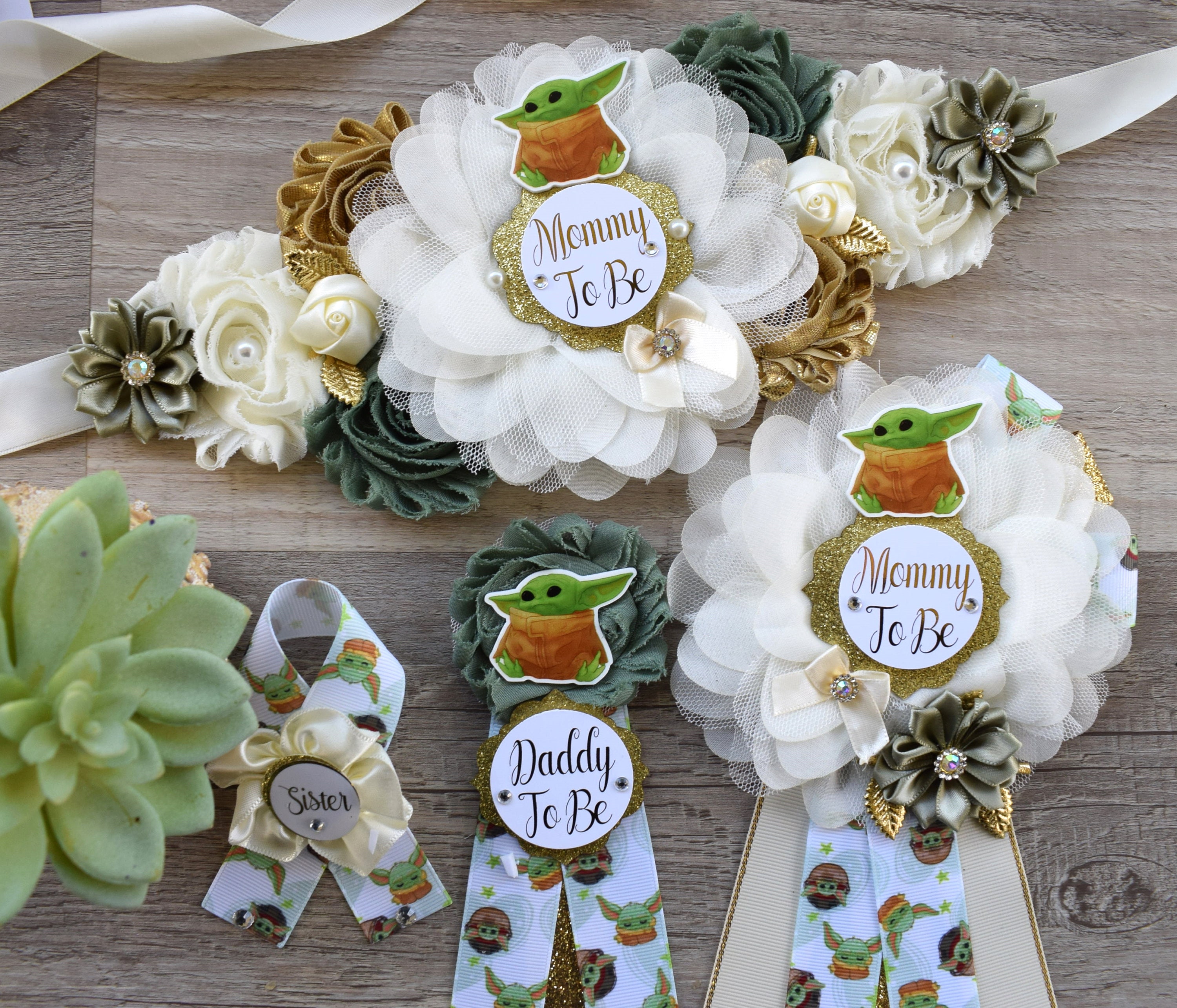 Baby Shower, Green Ivory Mommy To Be Ribbon, Maternity Sash, Ivory Green Baby Shower, Daddy To Be Pin, Custom
