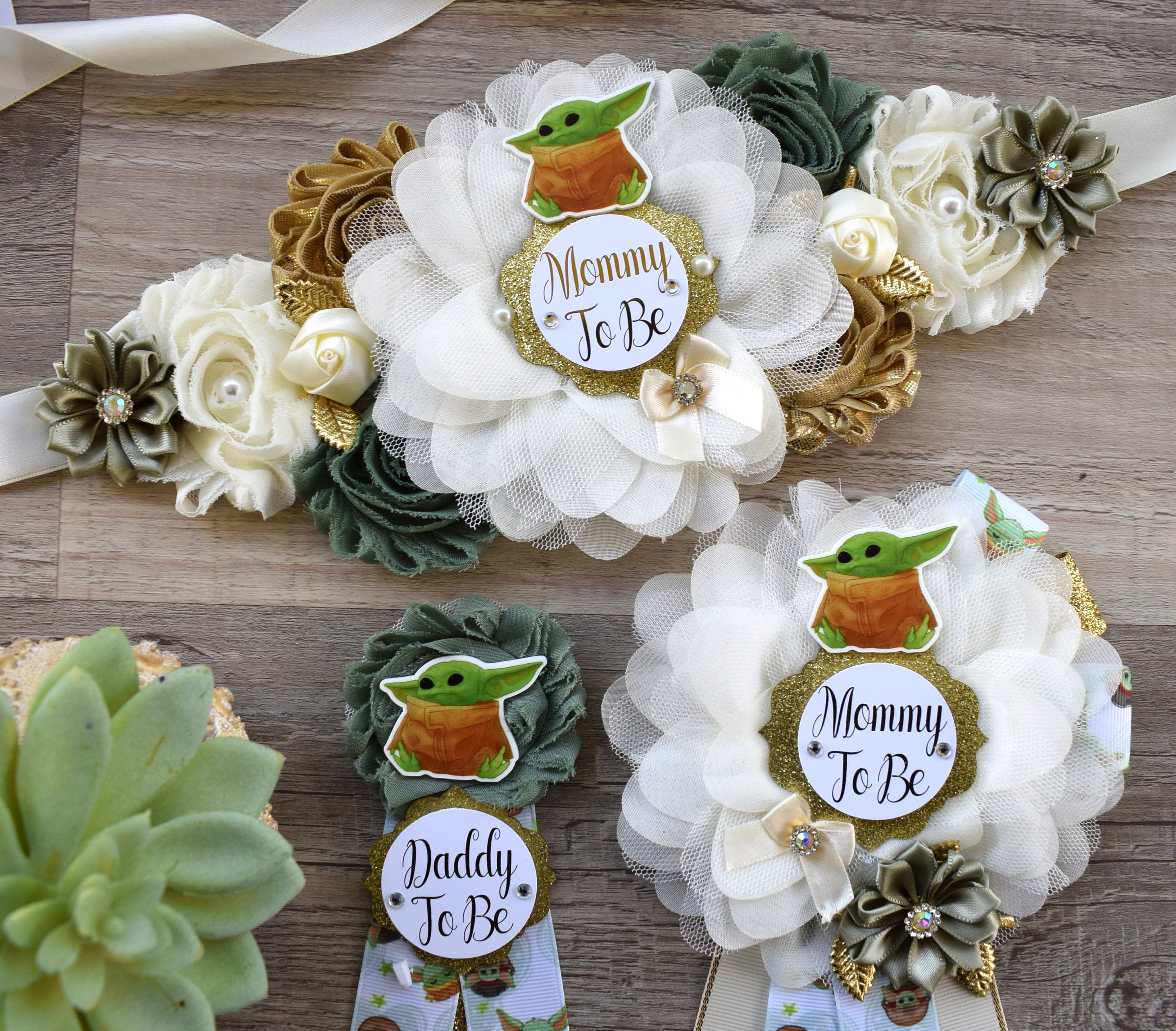 This gorgeous Flower Sash & Pins set is made especially for a Baby Shower or a Photo Prop.