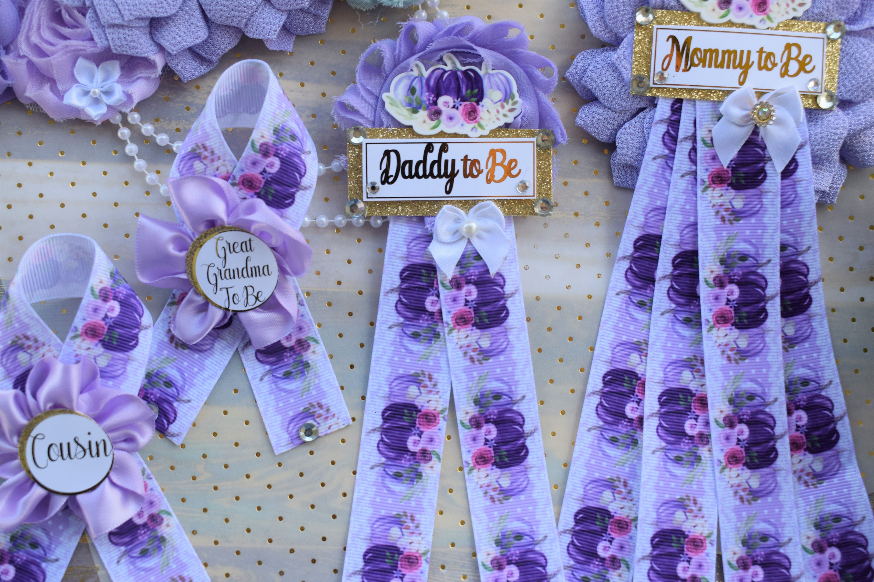 Lavender Pumpkin Baby Shower, Purple Lilac Maternity Sash, Vintage Lavender Flower Belly Sash, Pumpkin Flower Sash, Fall Belly Sash, Custom