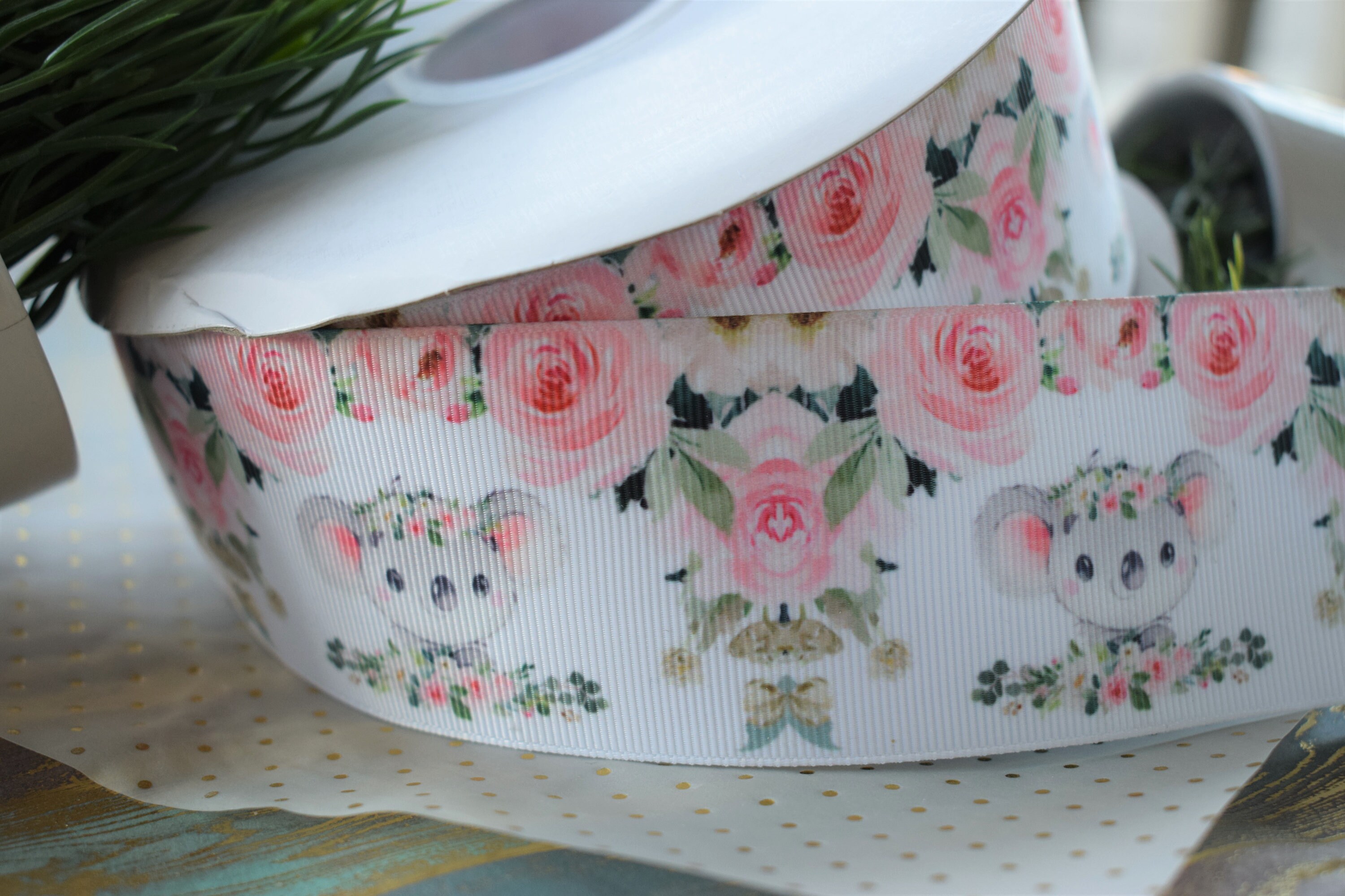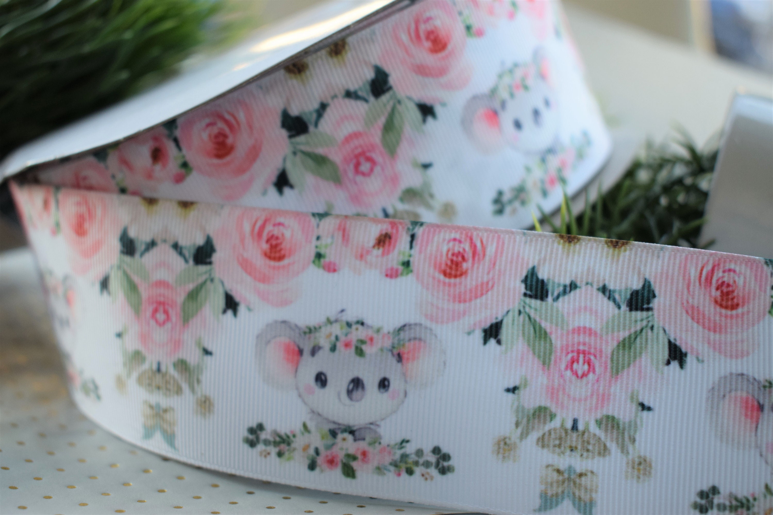 Pink Koala Baby Shower Ribbon, Girl Baby Koala Ribbon, Pink Grey Koala Ribbon, Koala Baby Shower || 3 Yards of Ribbon -1" (25mm) / 2" (50mm)