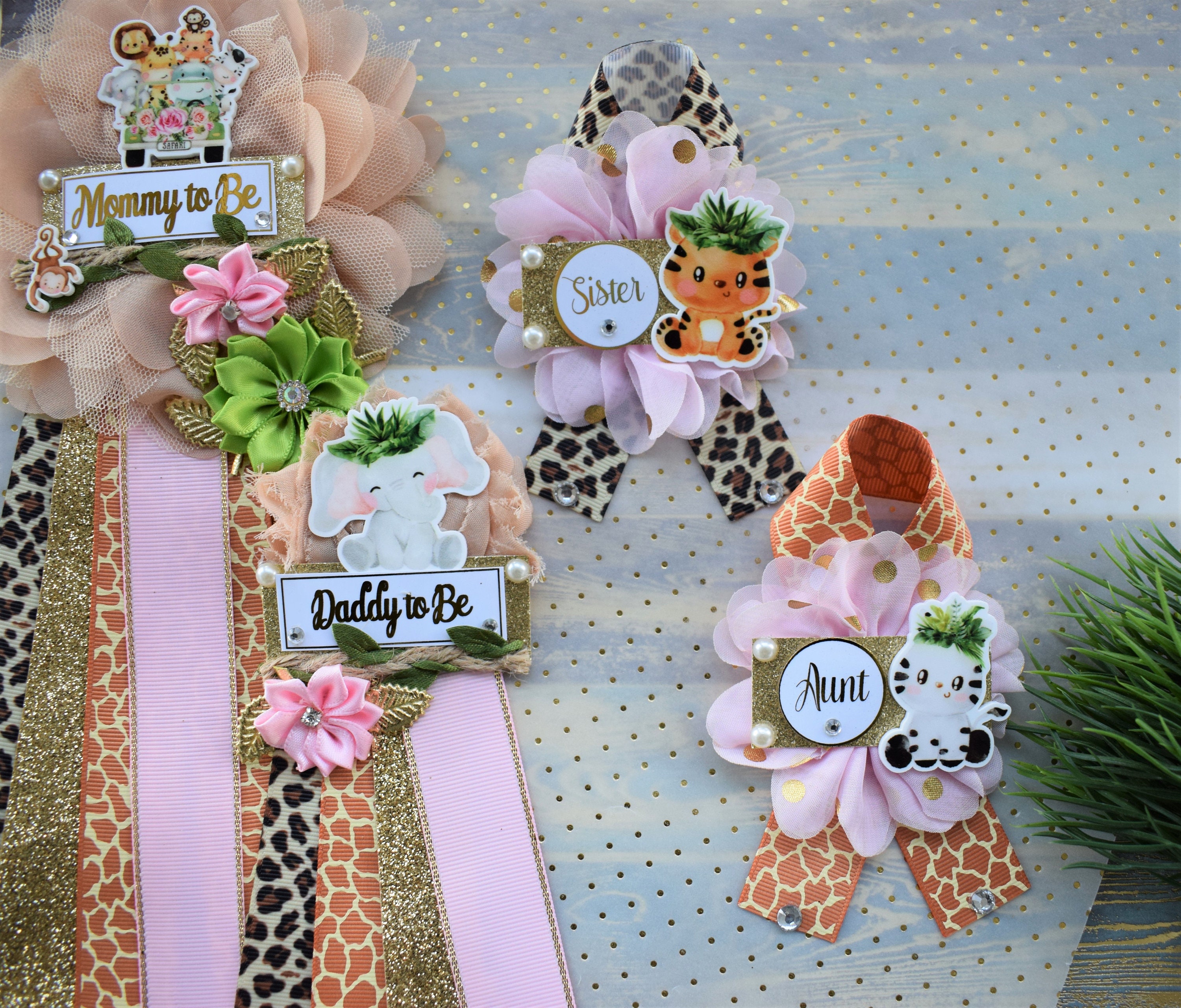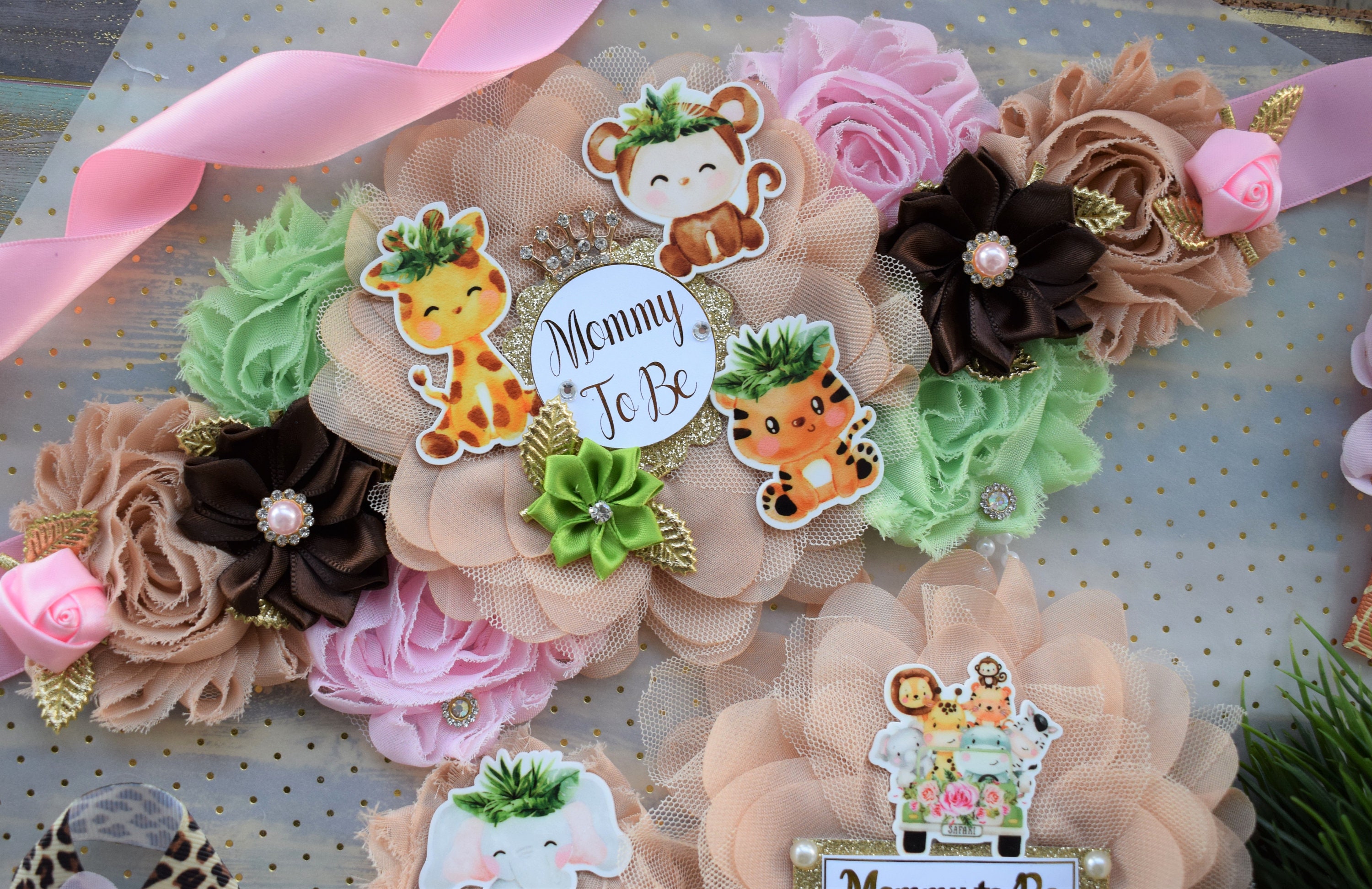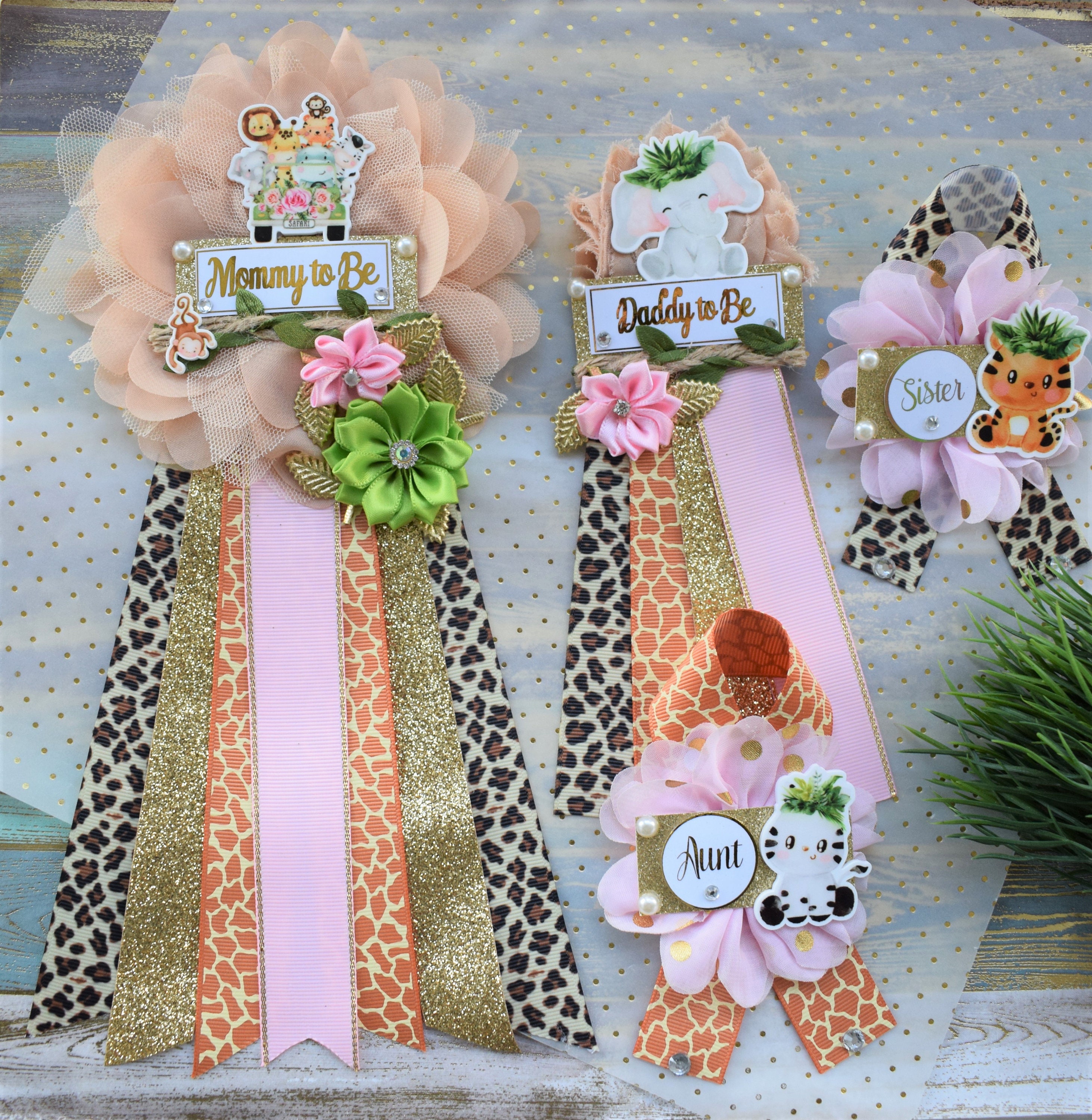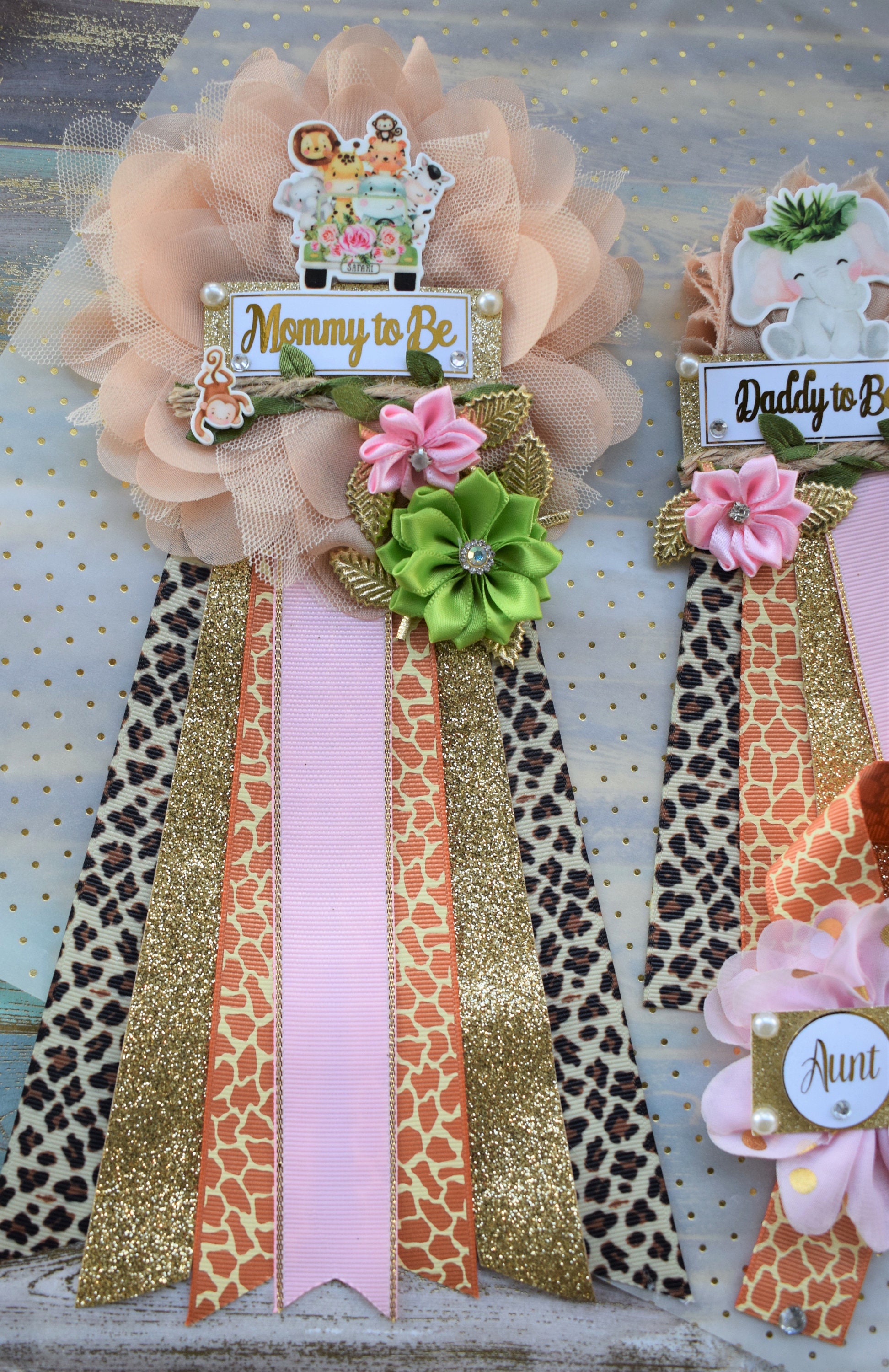 Girl Safari Jungle Maternity Sash, Pink Safari Maternity Sash, Animal Mommy To Be Ribbon, Daddy To Be Pin, Baby Shower Gift, Custom