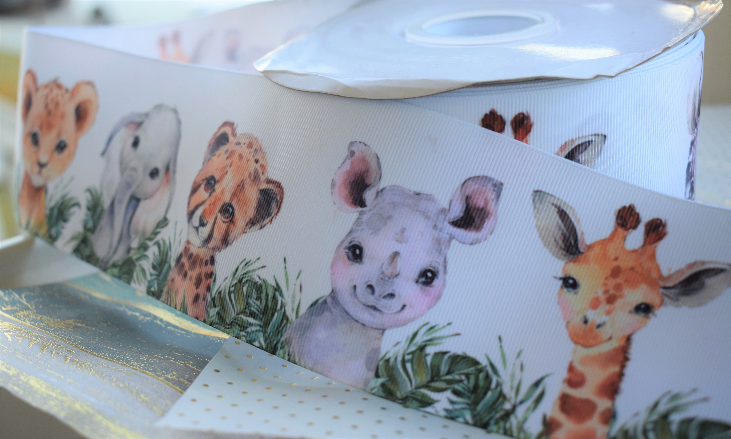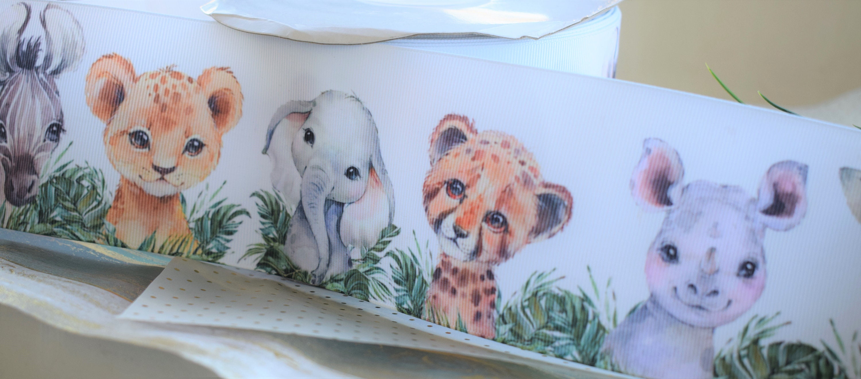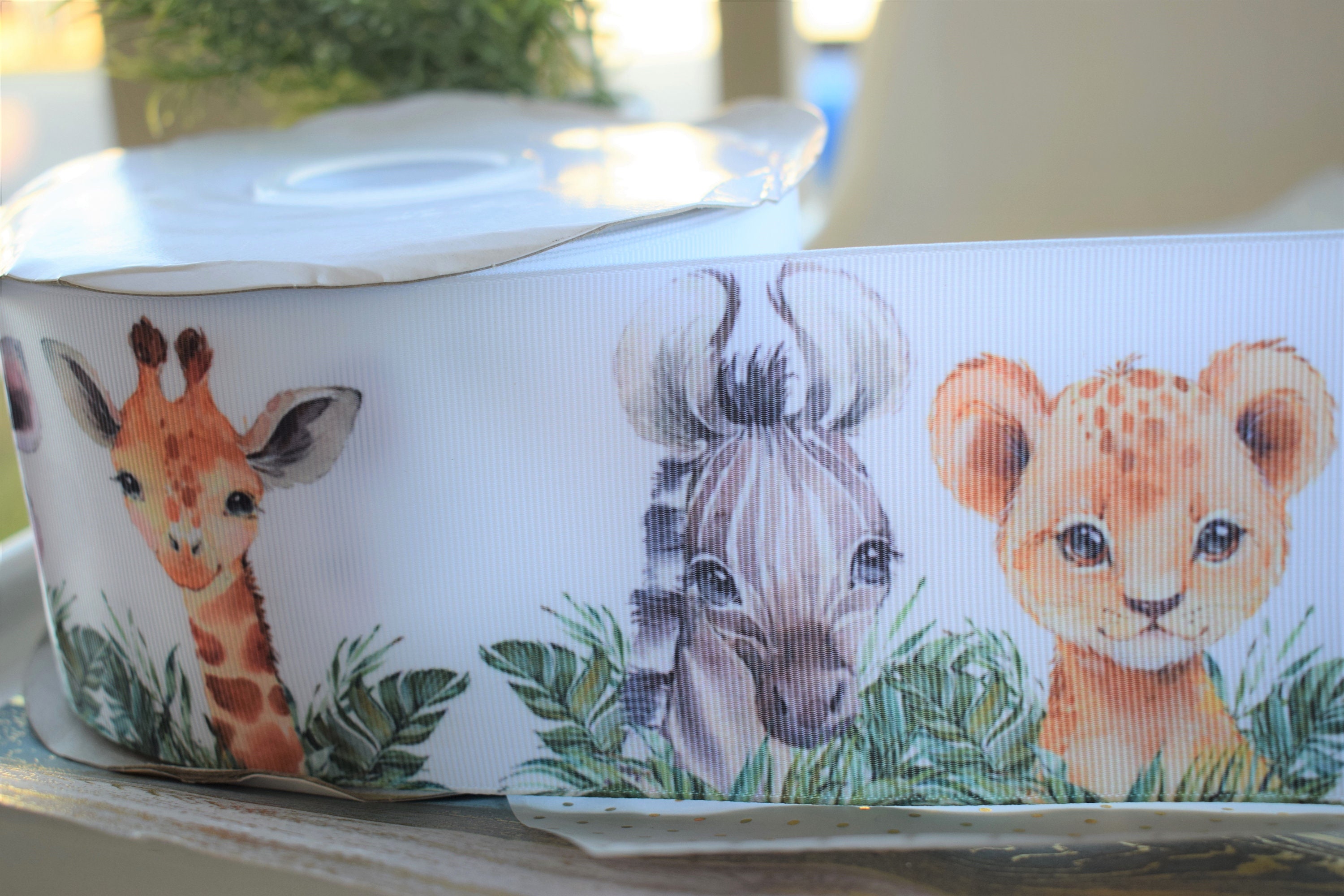 Animal Safari Ribbon, Diaper Cake Ribbon, Boy Baby Safari Ribbon, Safari Jungle Monkey Giraffe Grosgrain, Safari Baby Shower, 2" (50mm)