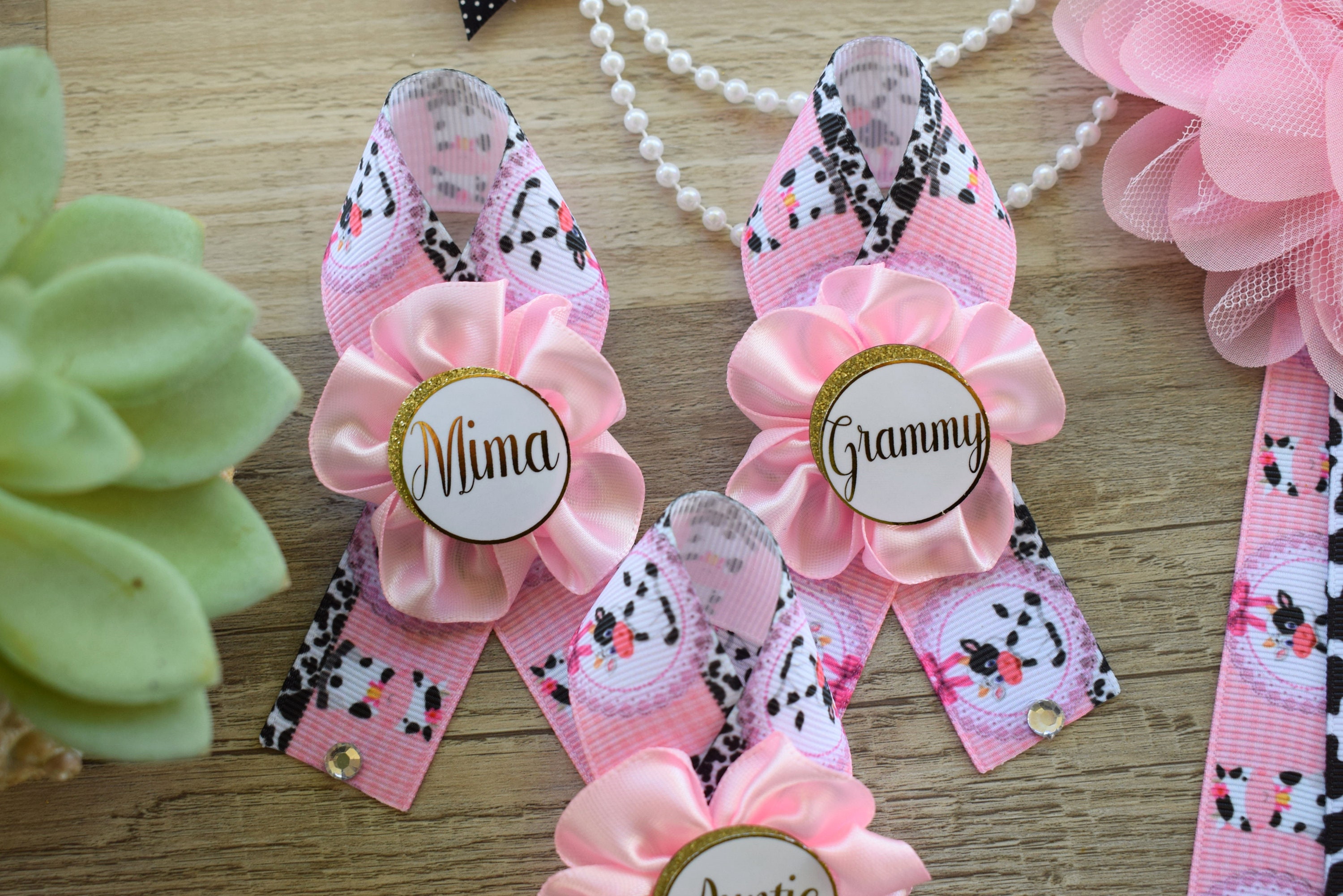 Pink Cow Baby Shower, Girl Cow Maternity Sash, Farm Cow Mommy To Be Ribbon, Daddy To Be Ribbon Pin, Pink Black White, Baby Shower Gift