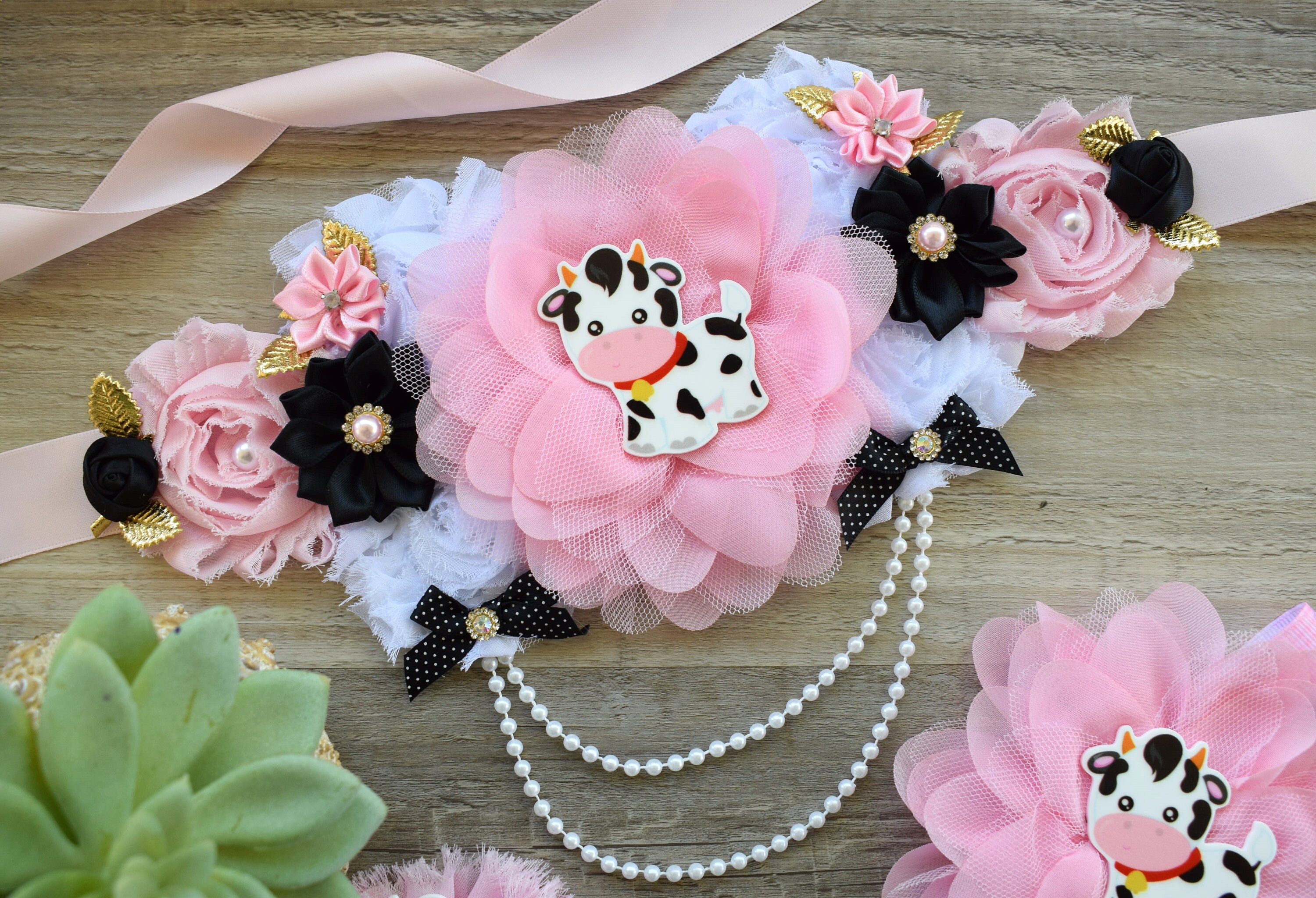 This Girl Cow Baby Shower Theme Sash & Pin Set were made especially for a Baby Shower or a Photo Prop.