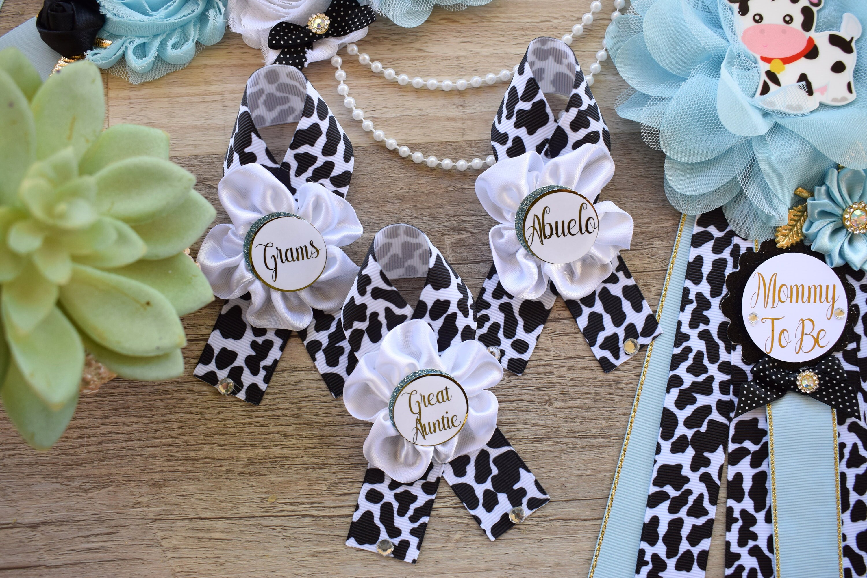This Boy Cow Baby Shower Theme Sash & Pin Set were made especially for a Baby Shower or a Photo Prop.