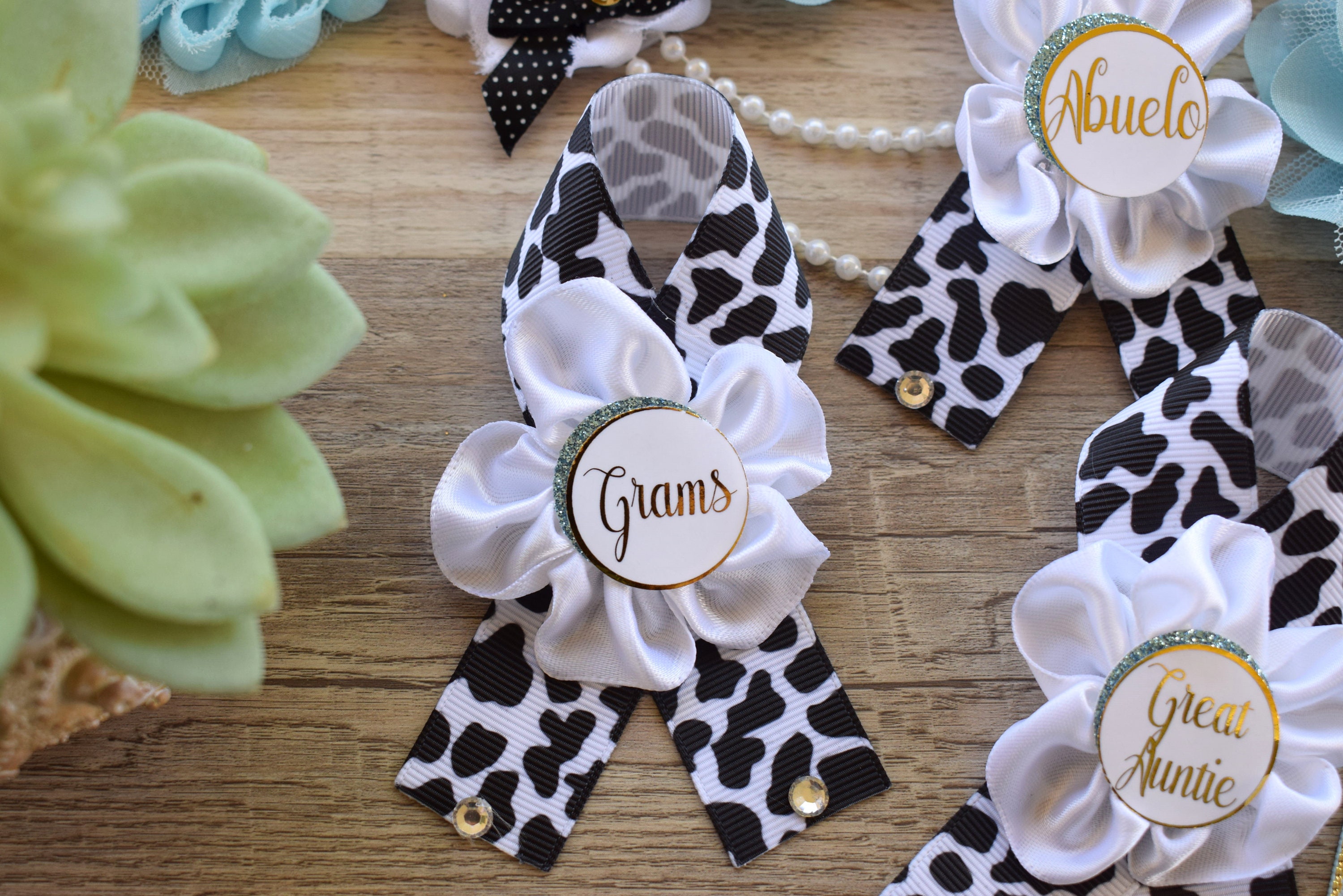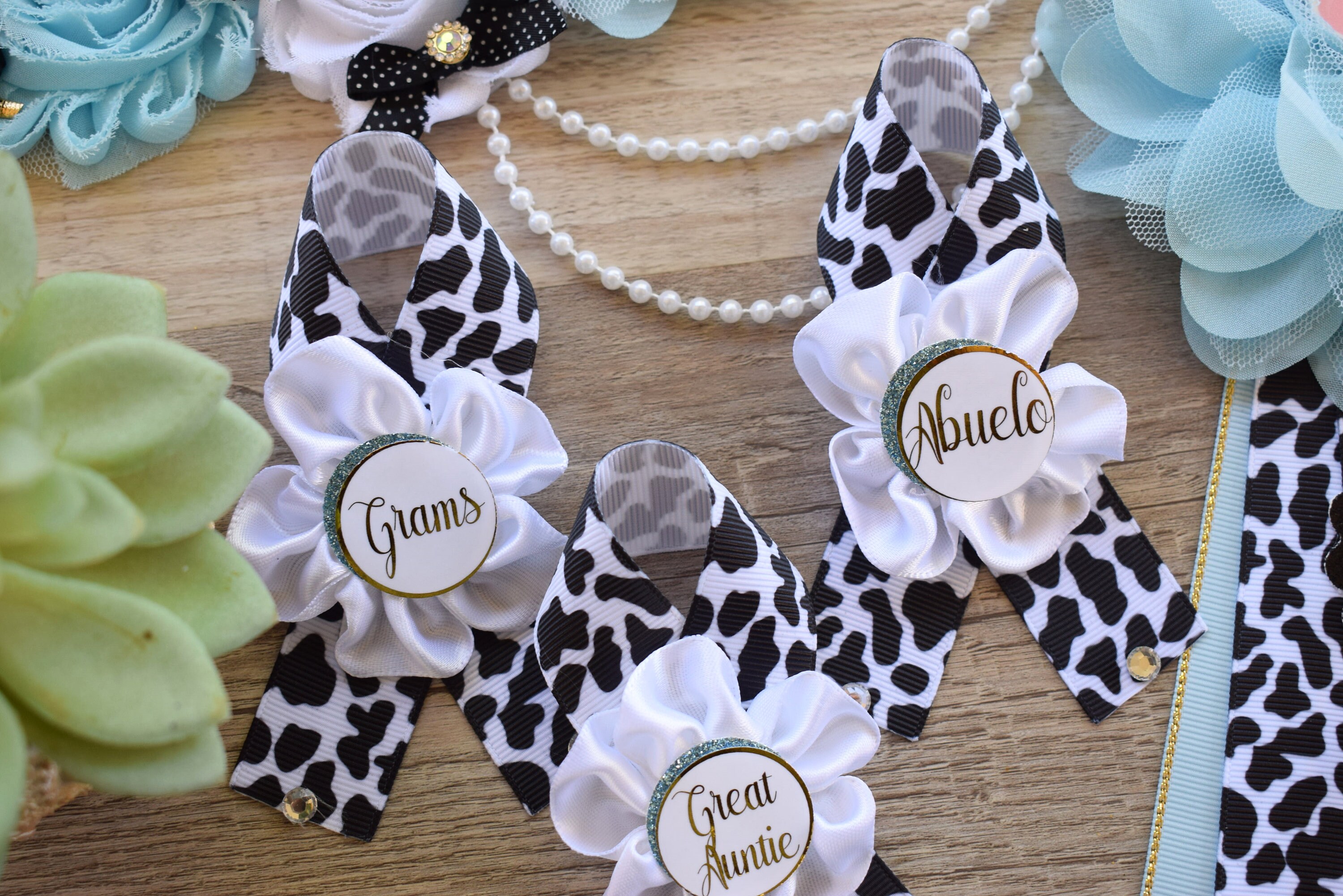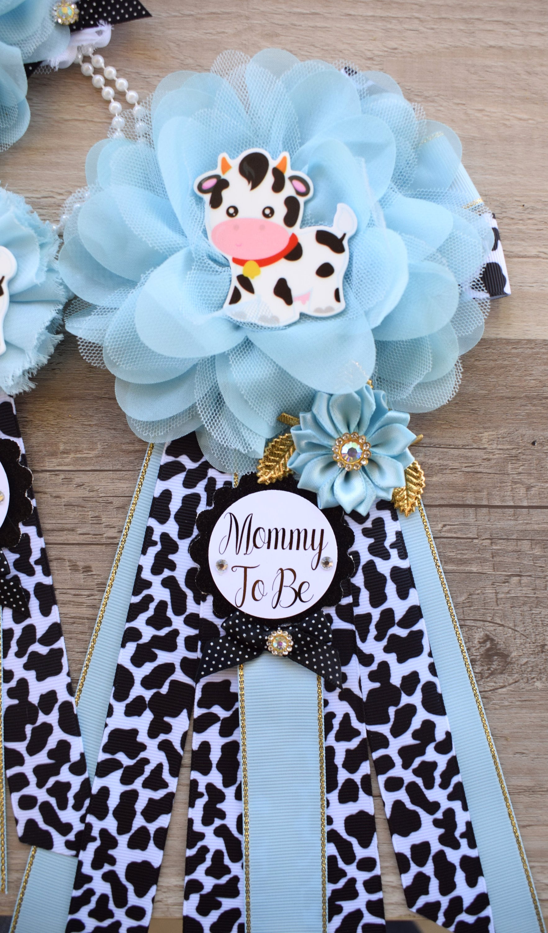 This Boy Cow Baby Shower Theme Sash & Pin Set were made especially for a Baby Shower or a Photo Prop.