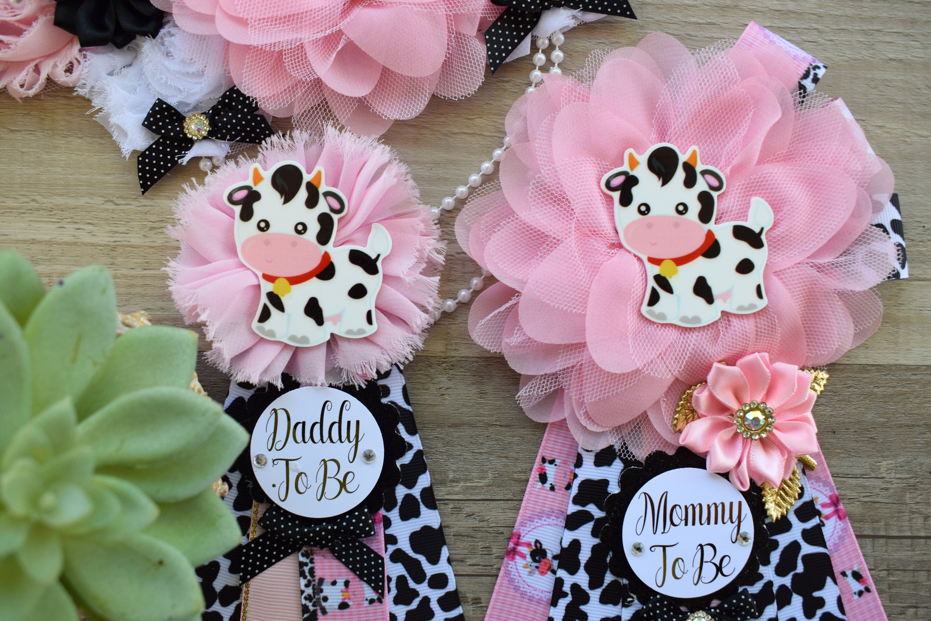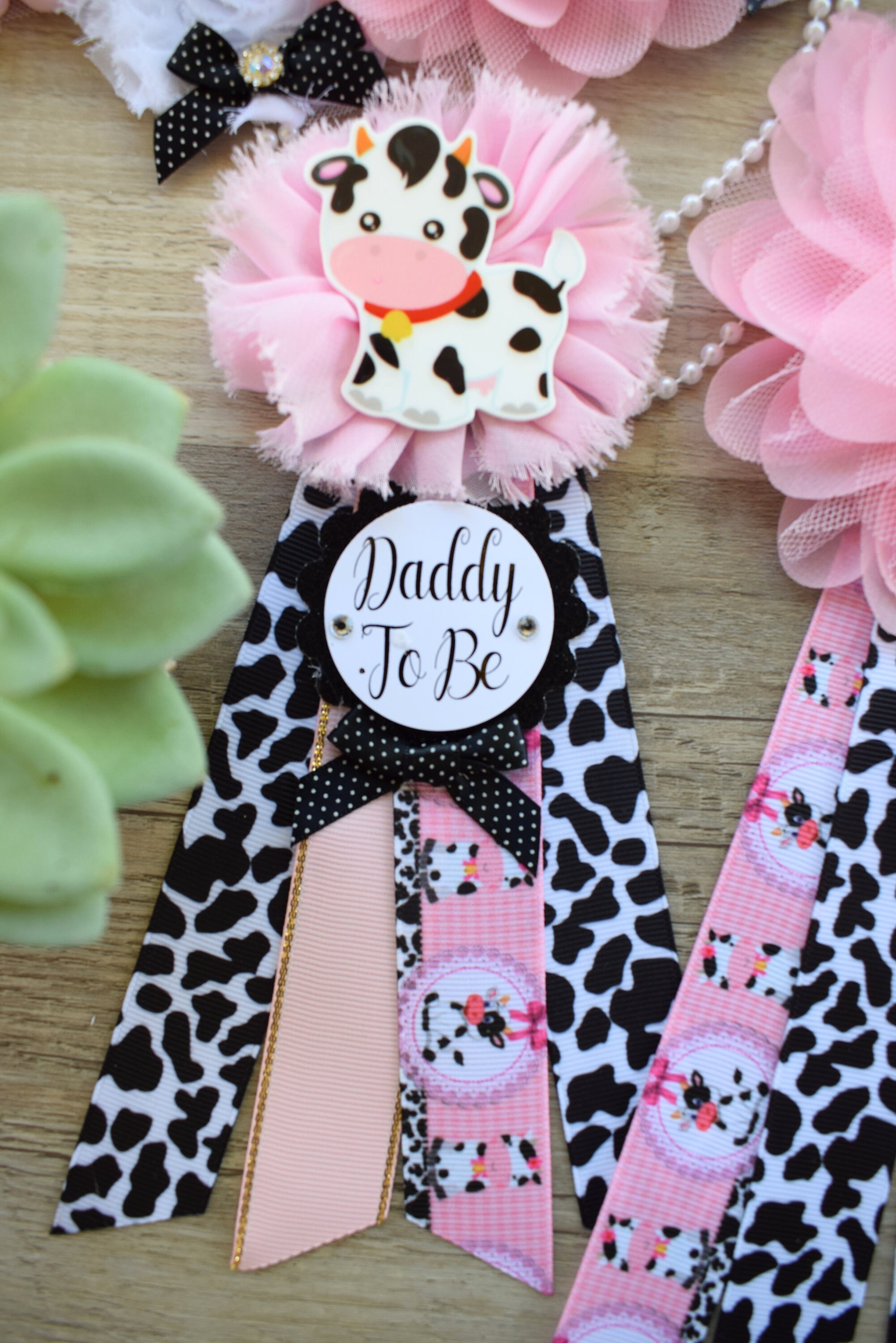 Pink Cow Baby Shower, Girl Cow Maternity Sash, Farm Cow Mommy To Be Ribbon, Daddy To Be Ribbon Pin, Pink Black White, Baby Shower Gift