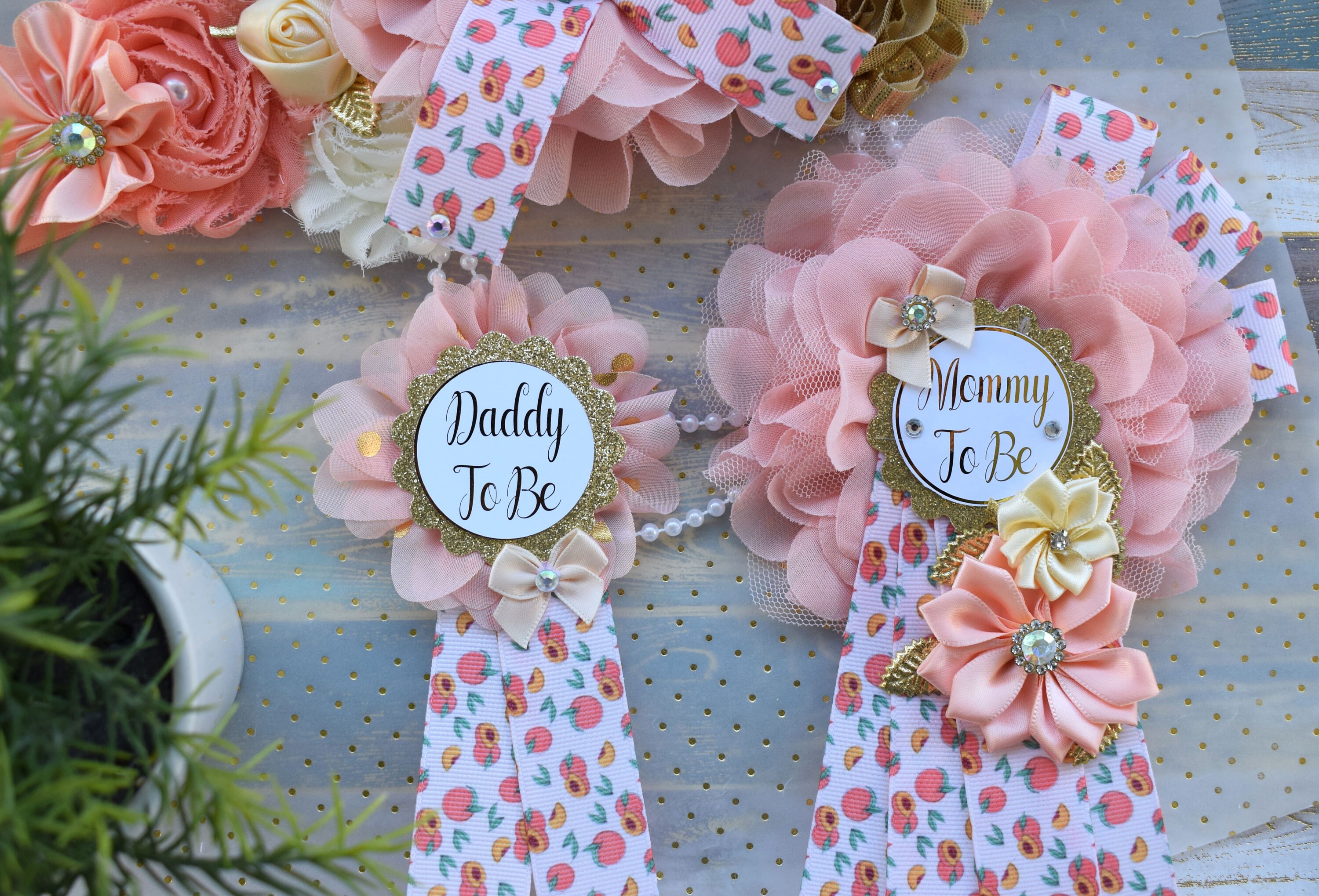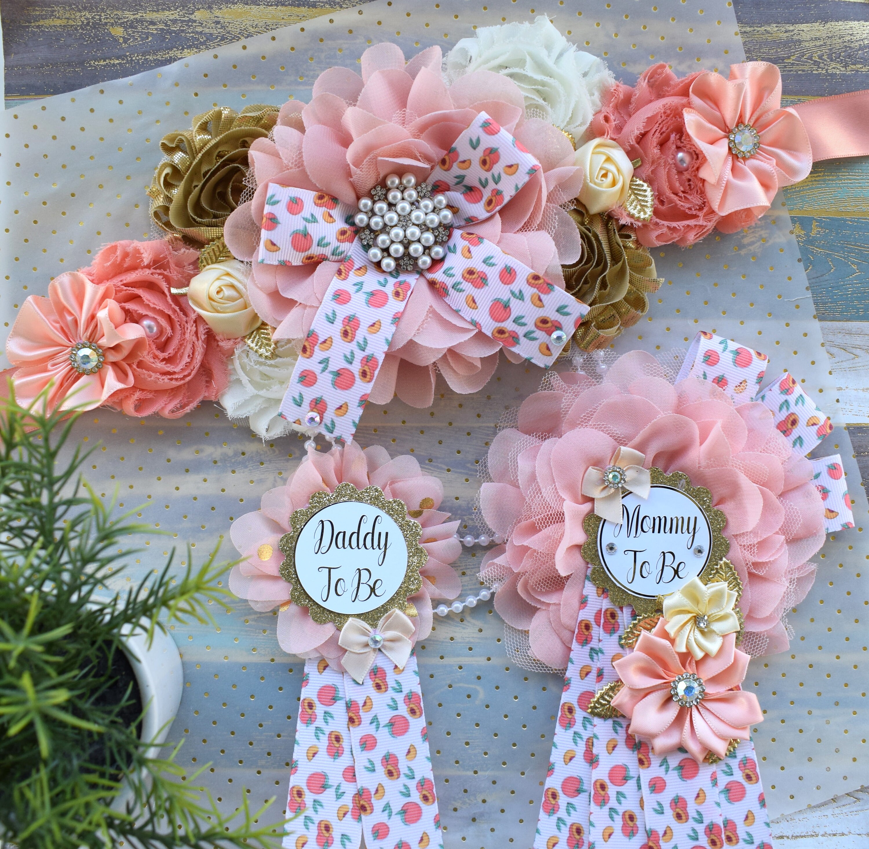 A Little Peach Baby Shower, Peach Flower Sash, Fruit Peach Maternity Sash, A Little Cutie Coral Pregnant, Gold Coral Ivory Flower Sash