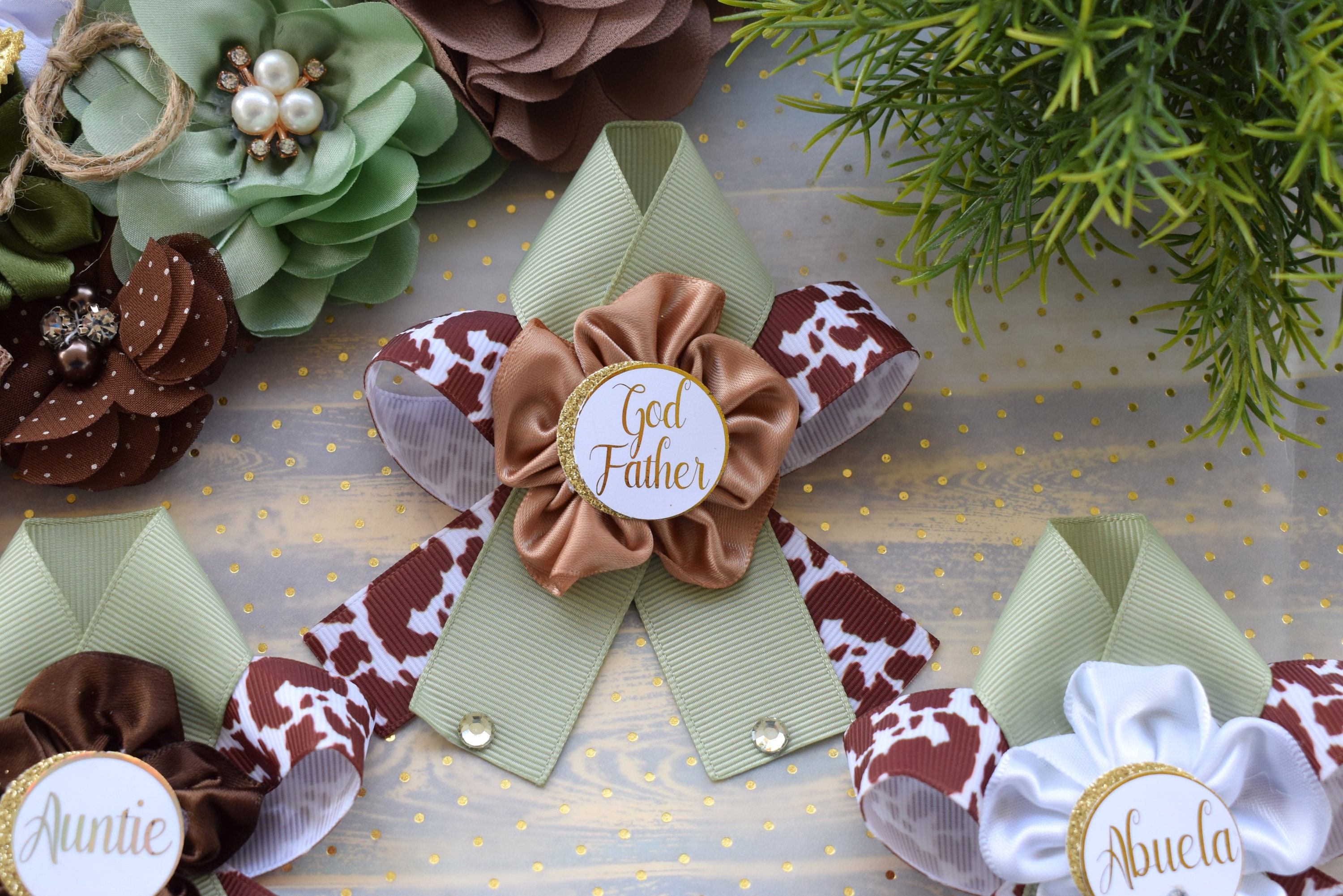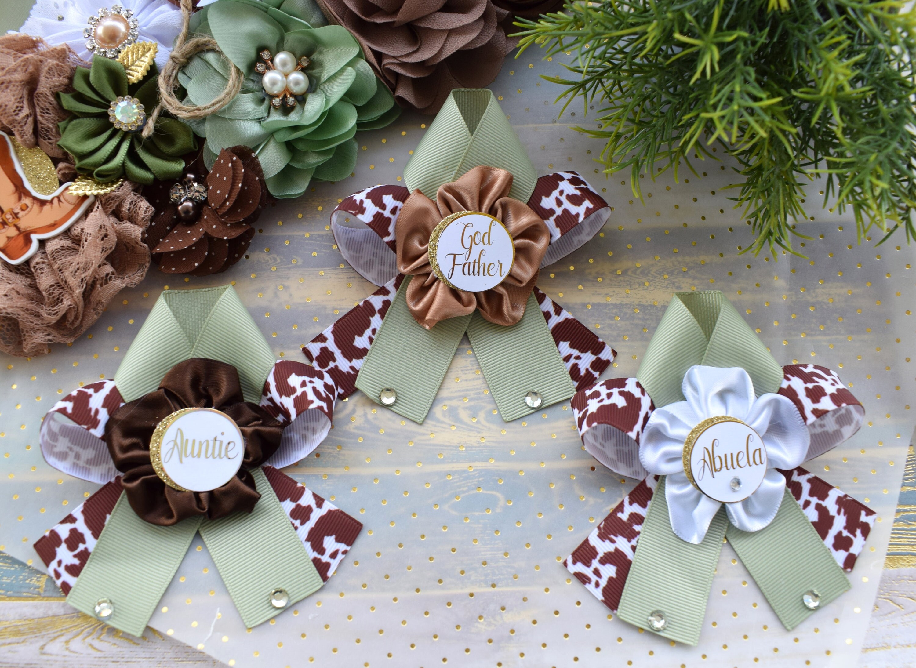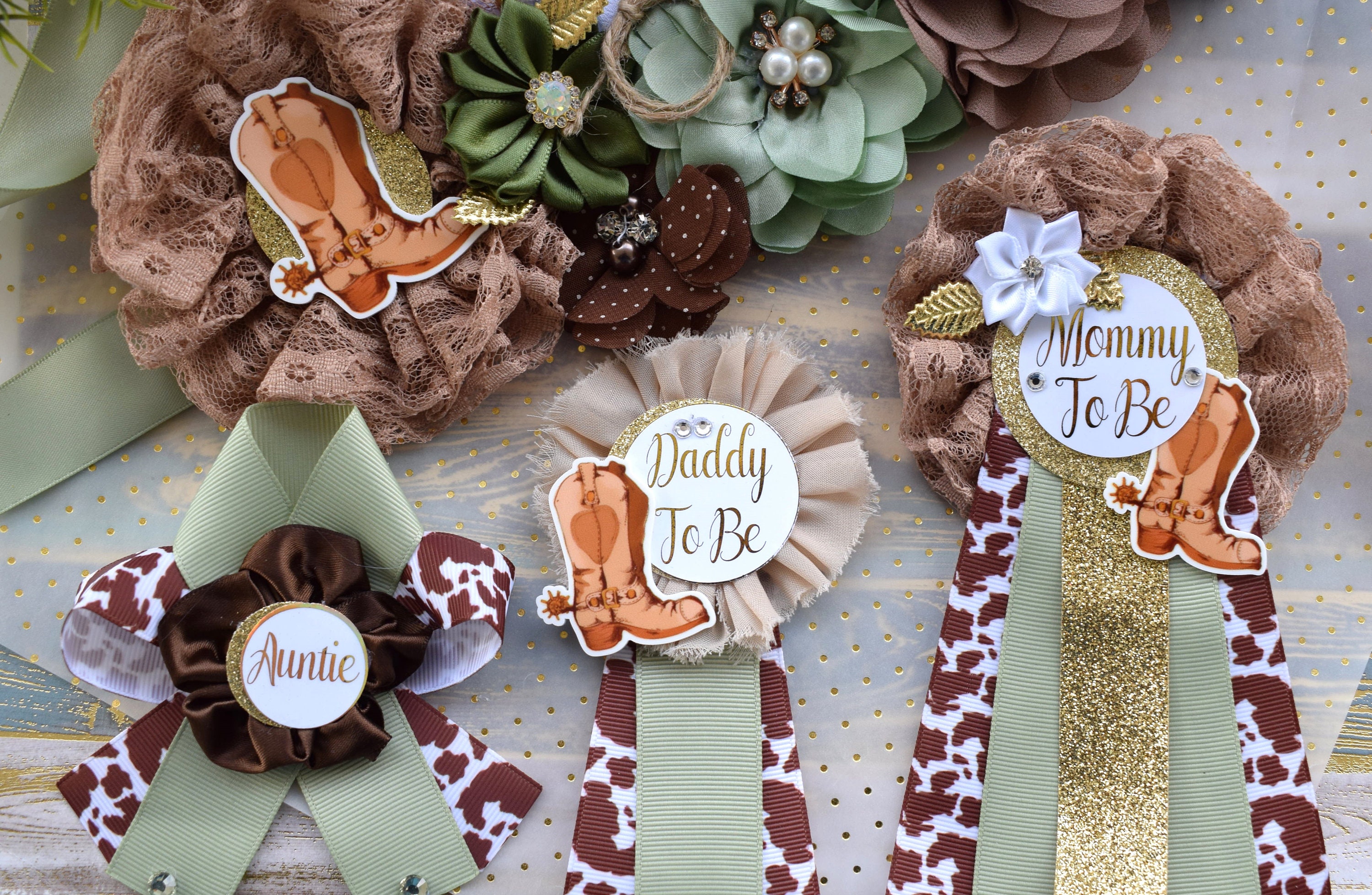 Sage Cowboy Baby Shower, Sage Cowboy Maternity Sash, Boy Cowboy Mommy and Daddy To Be Pin, Sage Brown Flower Sash, Sage Boot Hat Corsage Pin