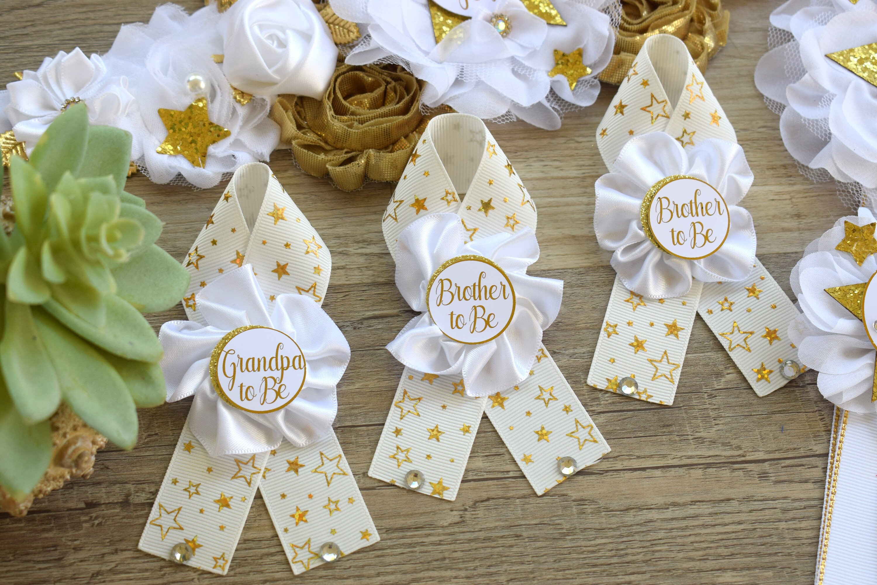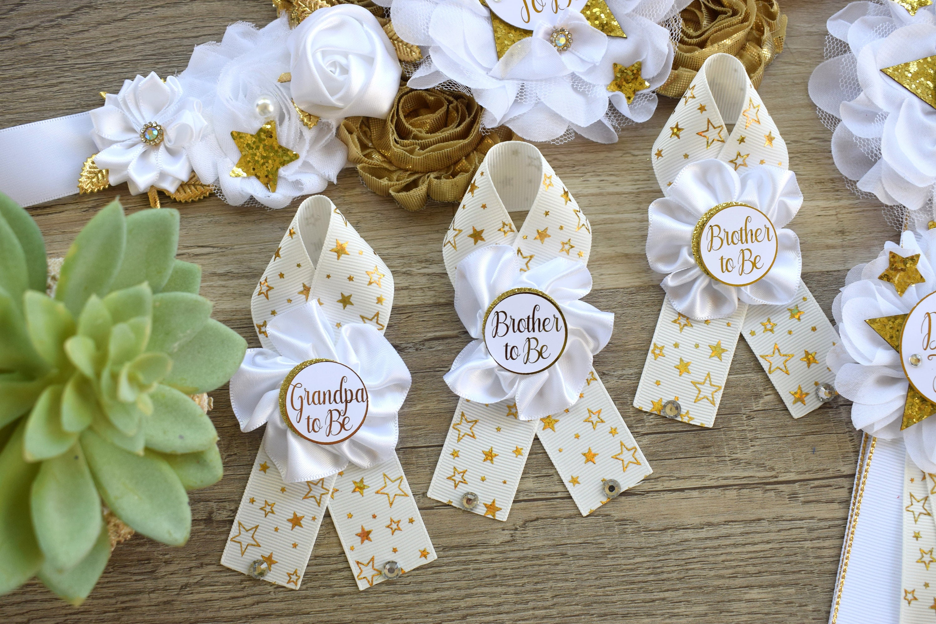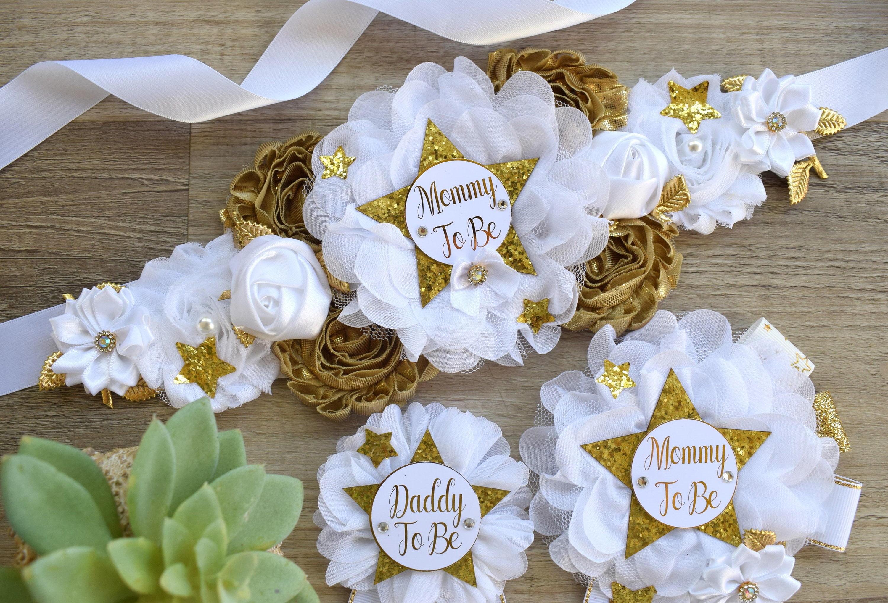 White Twinkle Twinkle Little Star Baby Shower, White Gold Maternity Sash, Twinkle Gender Reveal Gold, Mommy To Be Pin, Daddy To Be Pin