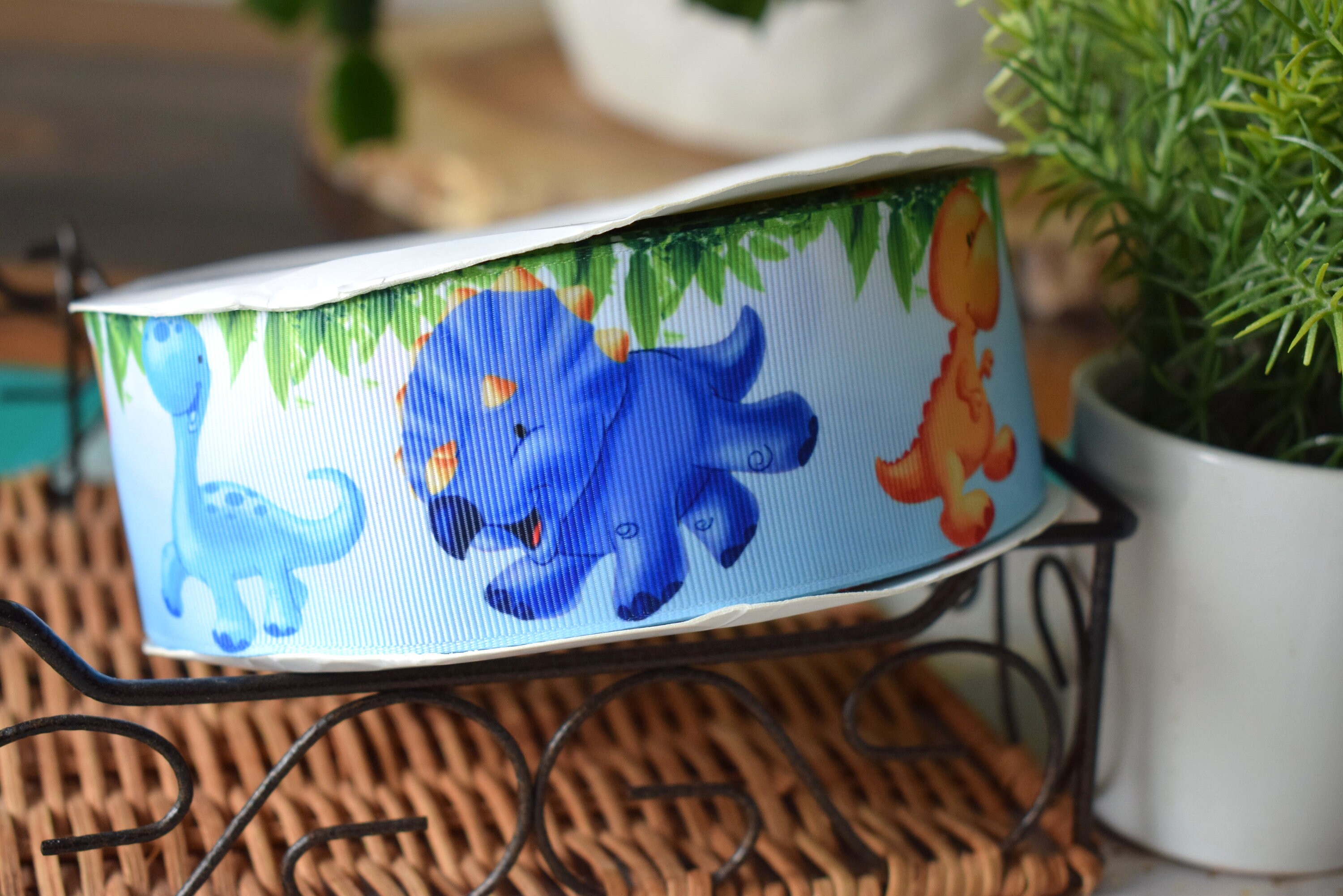 Dinosaurs Grosgrain Ribbon, Boy Baby Dinosaurs Ribbon, Dinosaurs Blue, Grosgrain Ribbon, Headband Bow Decor, DIY Craft Supplies, 1" (25mm)