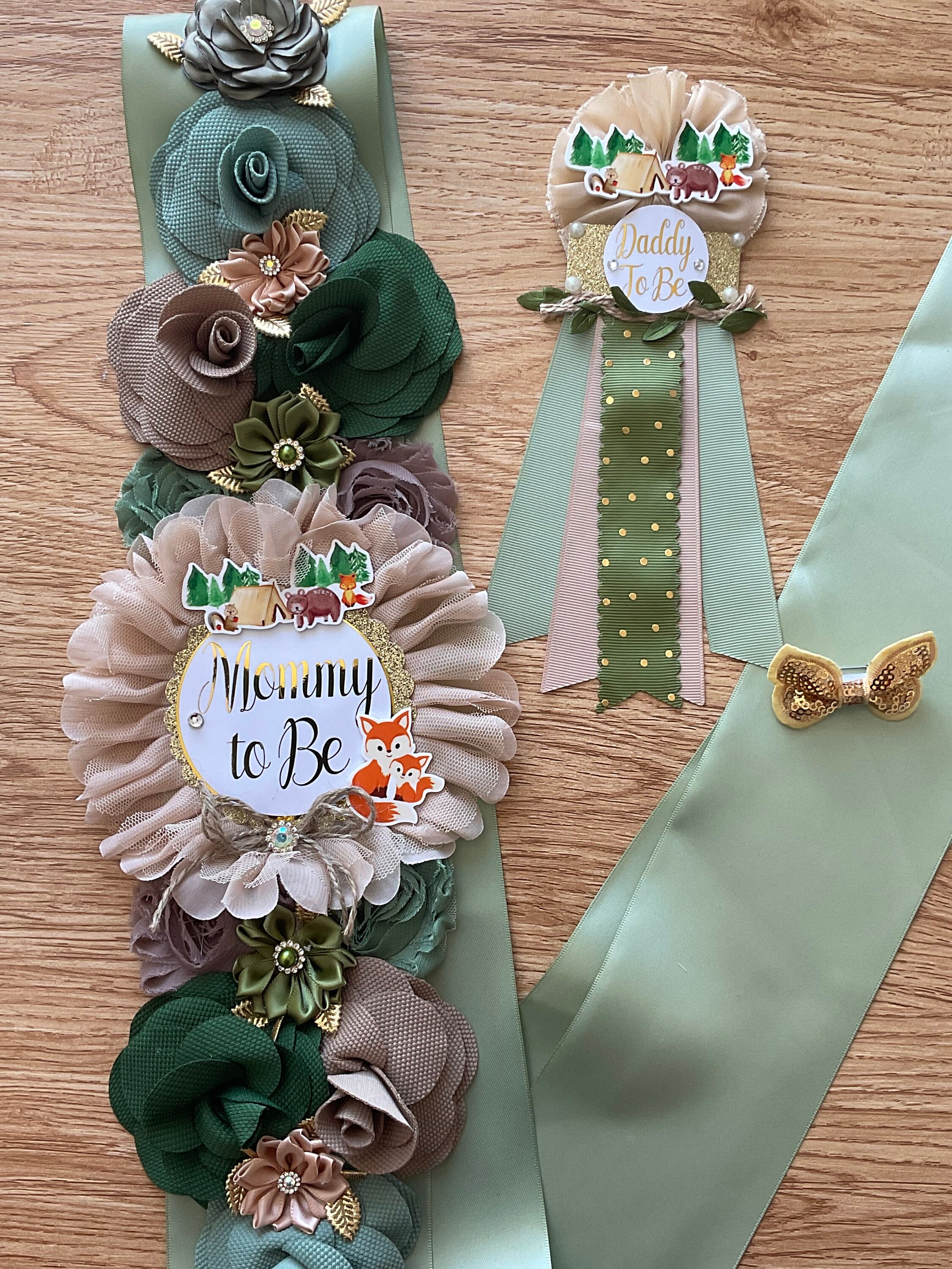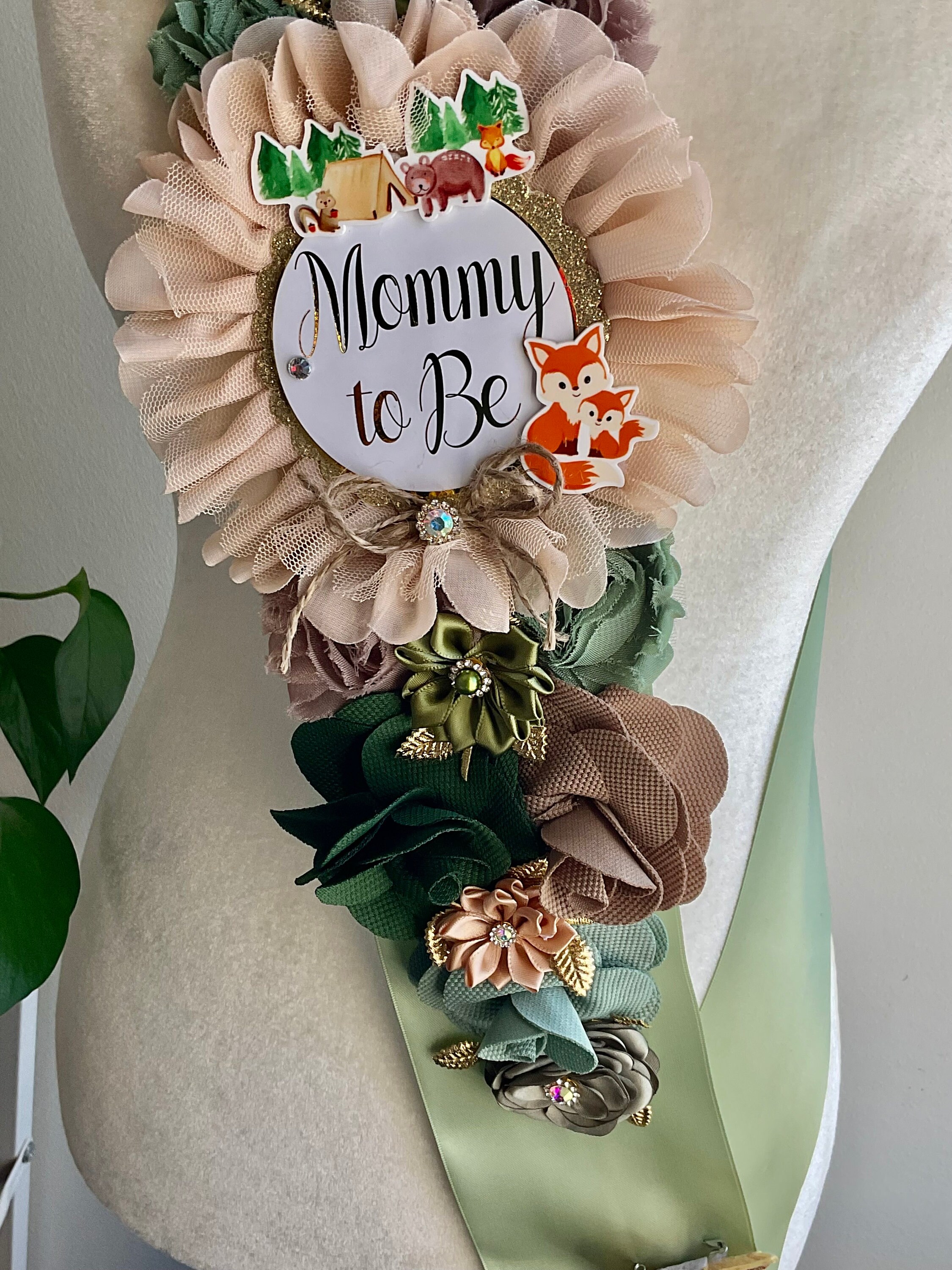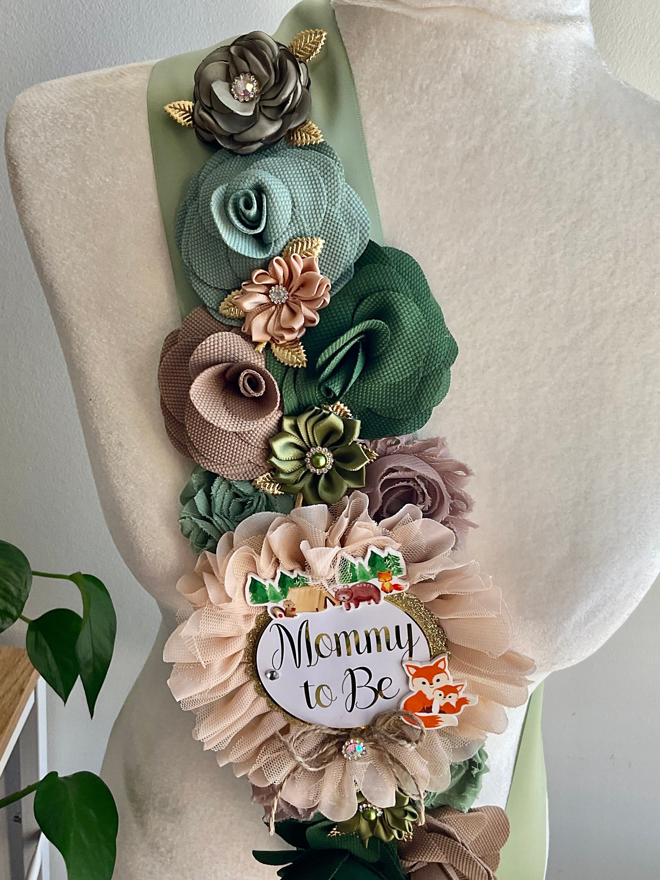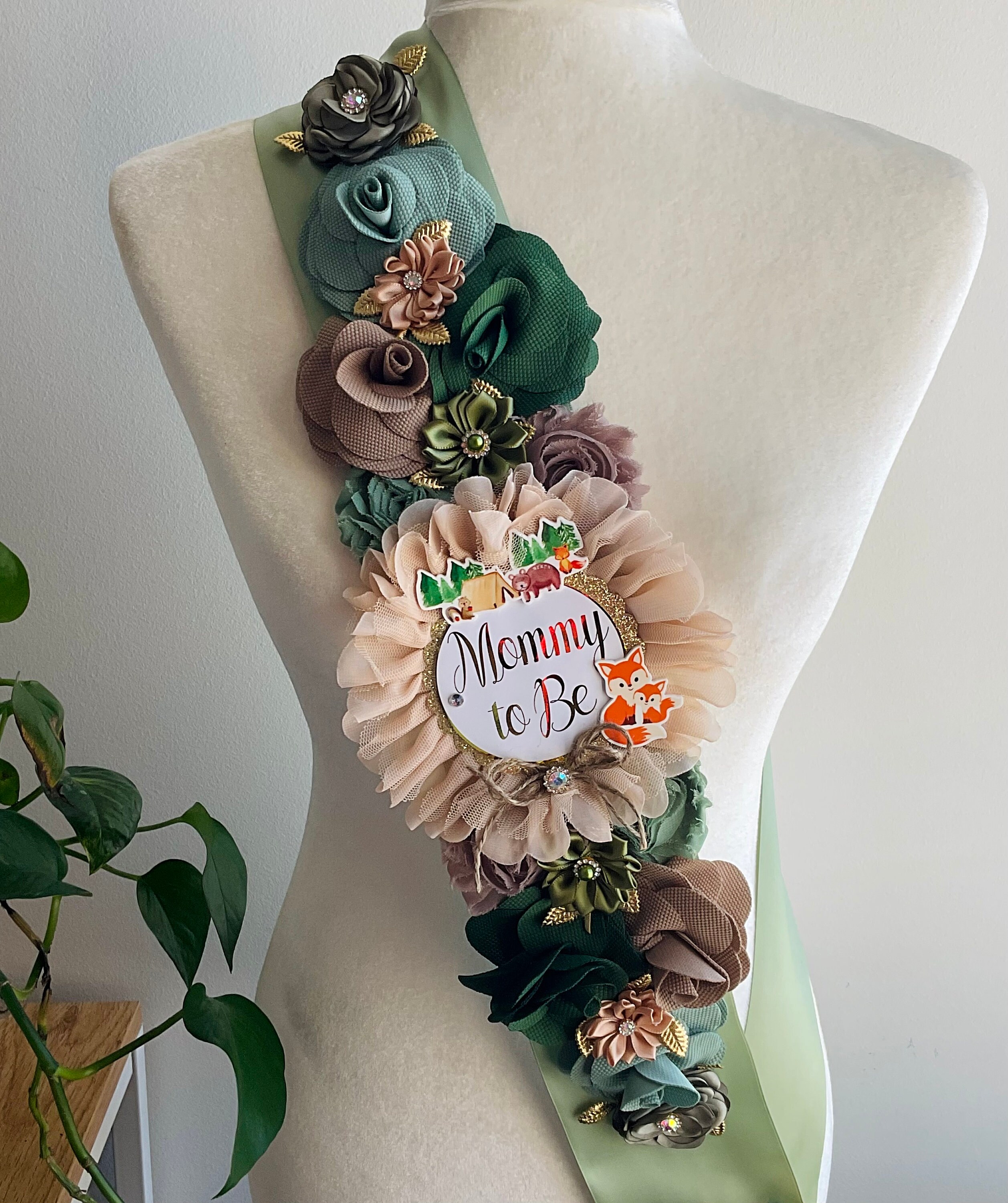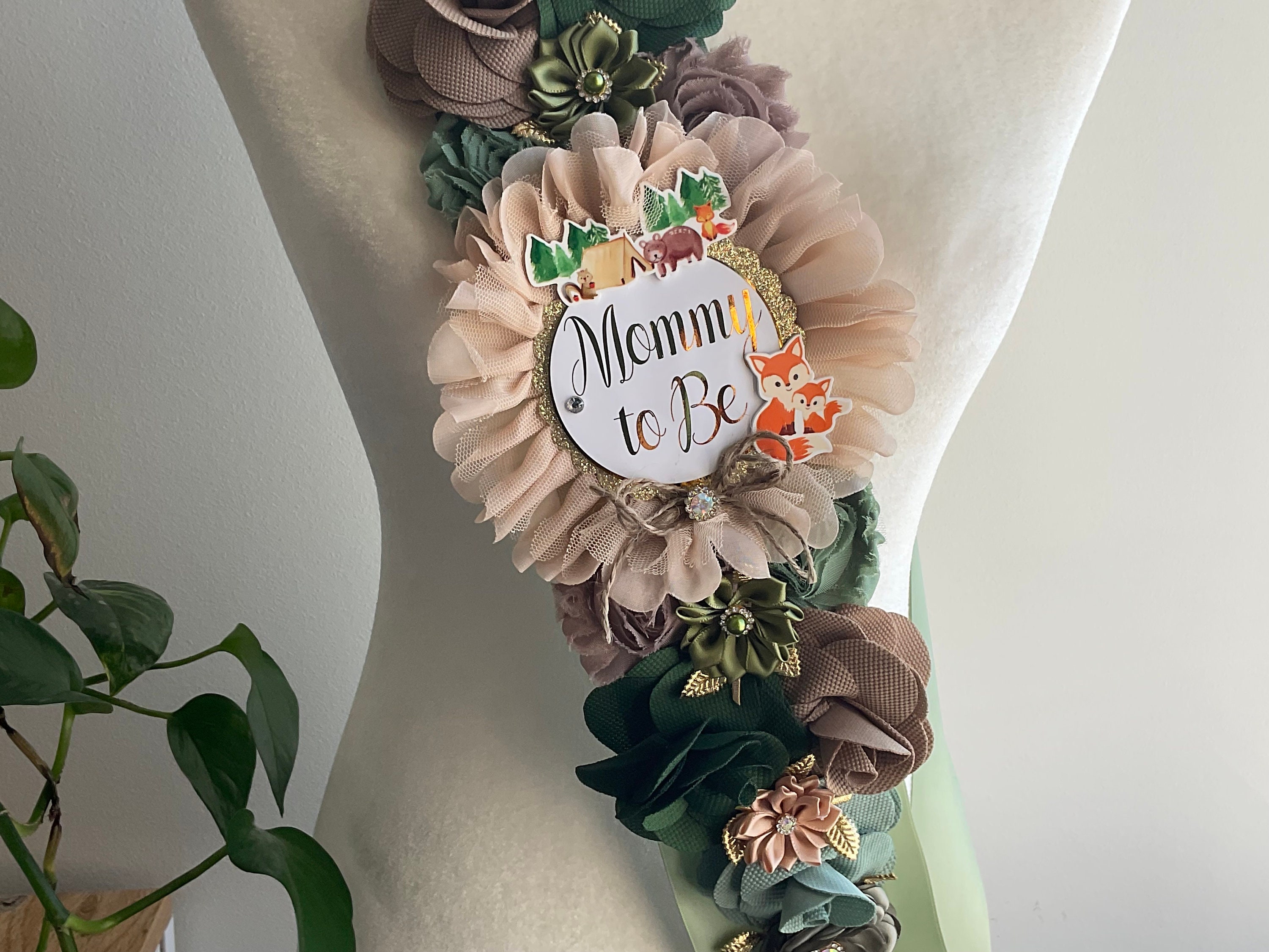 This Gorgeous Woodland Shoulder Sash was made especially for a Baby Shower. Details: