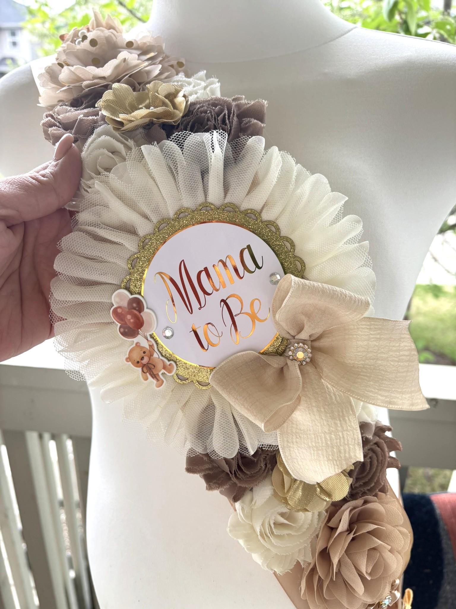 This Gorgeous Teddy Bear Flower Sash is made especially for a Baby Shower or a Photo Prop.