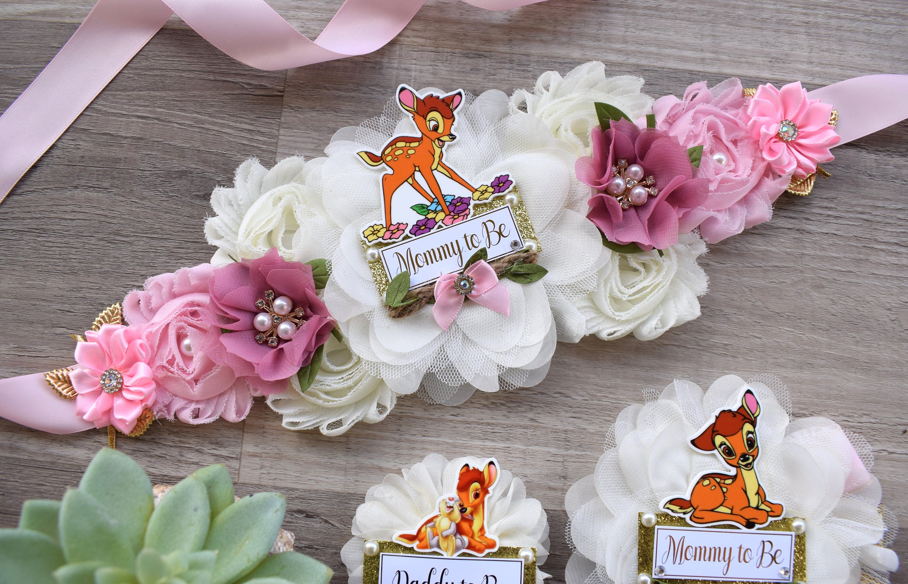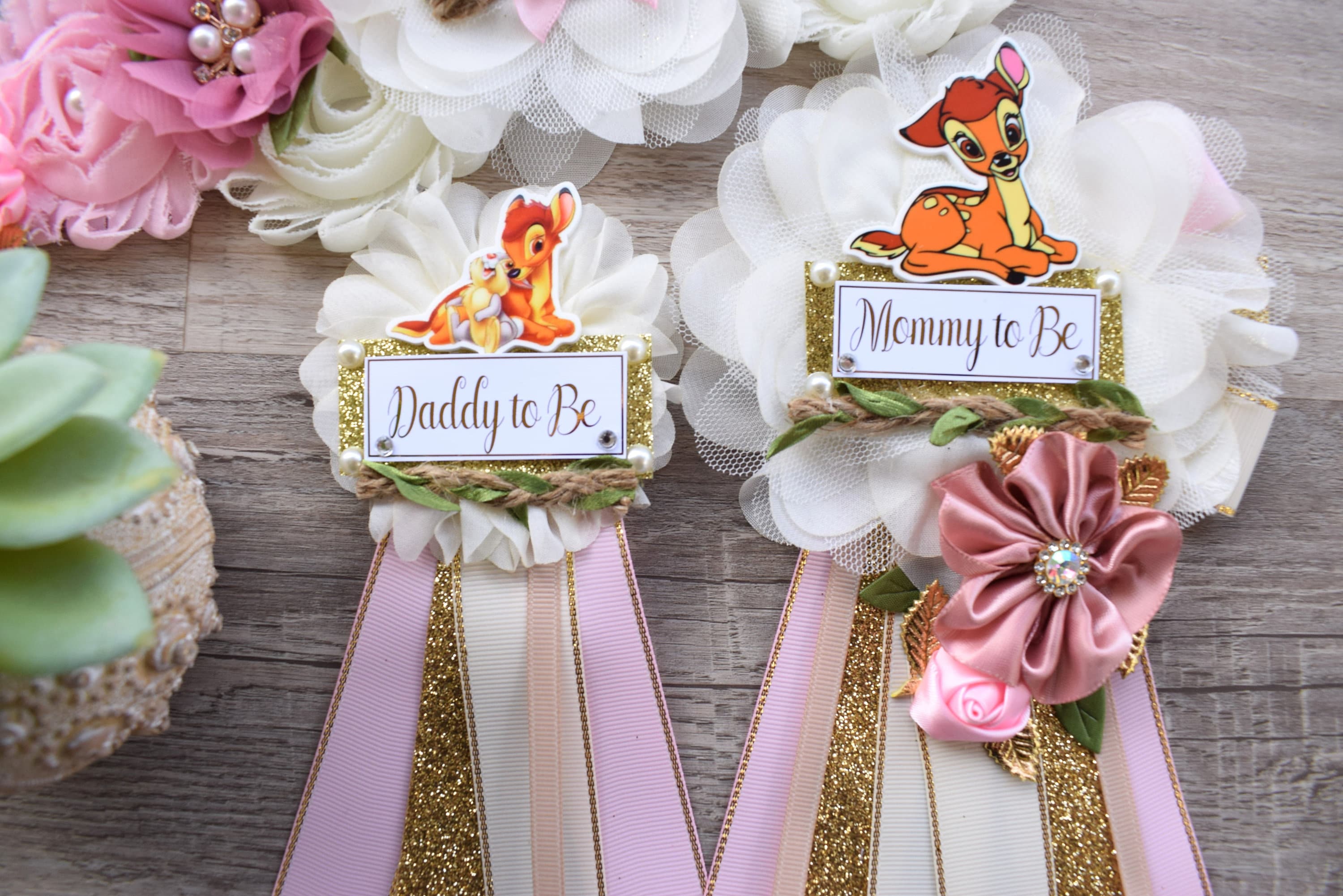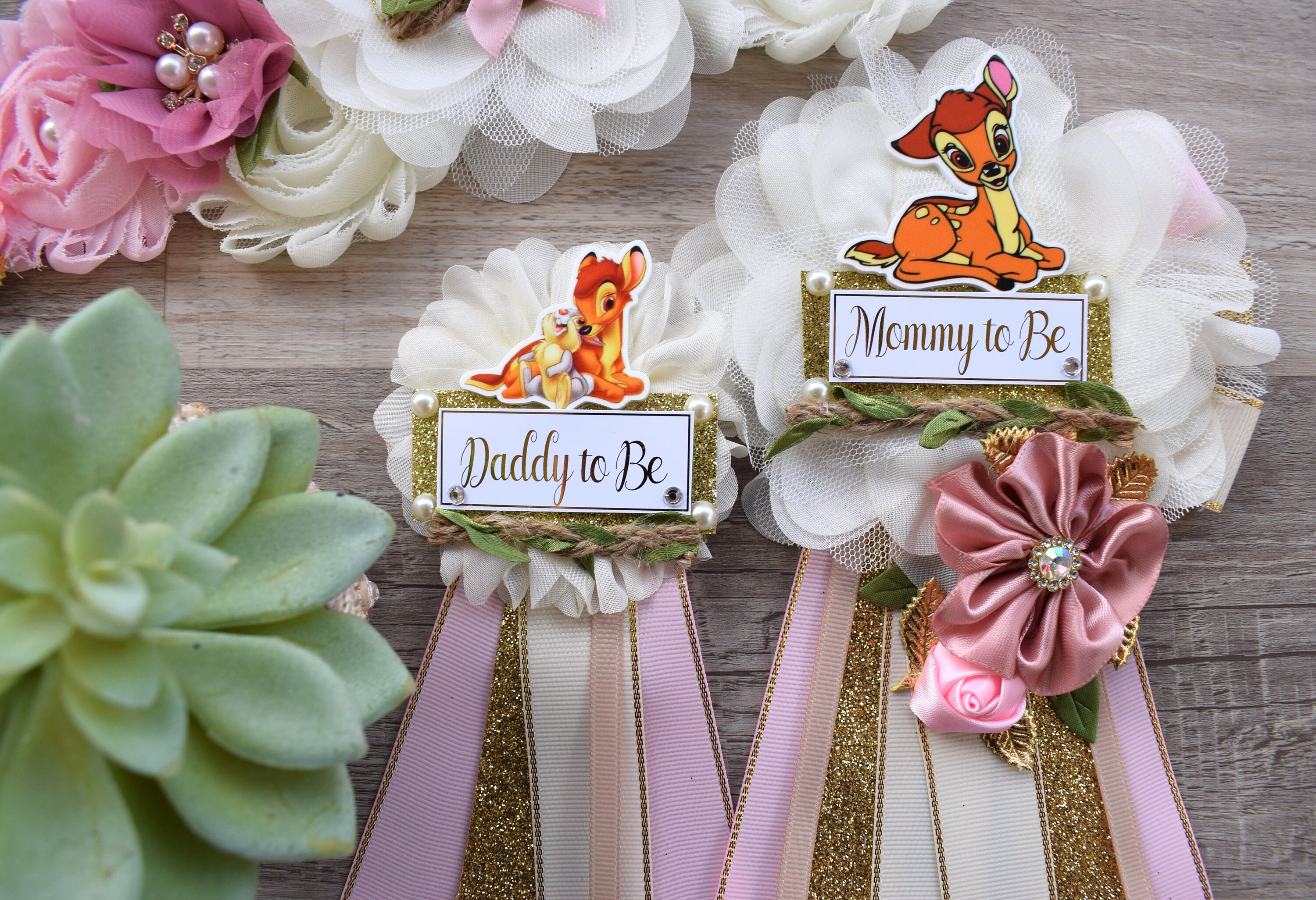 Pink Deer Baby Shower, Pink Deer Mommy To Be Maternity Sash, Deer Daddy To Be Corsage Pins, Pink Tan Gold Girl Beer, Custom