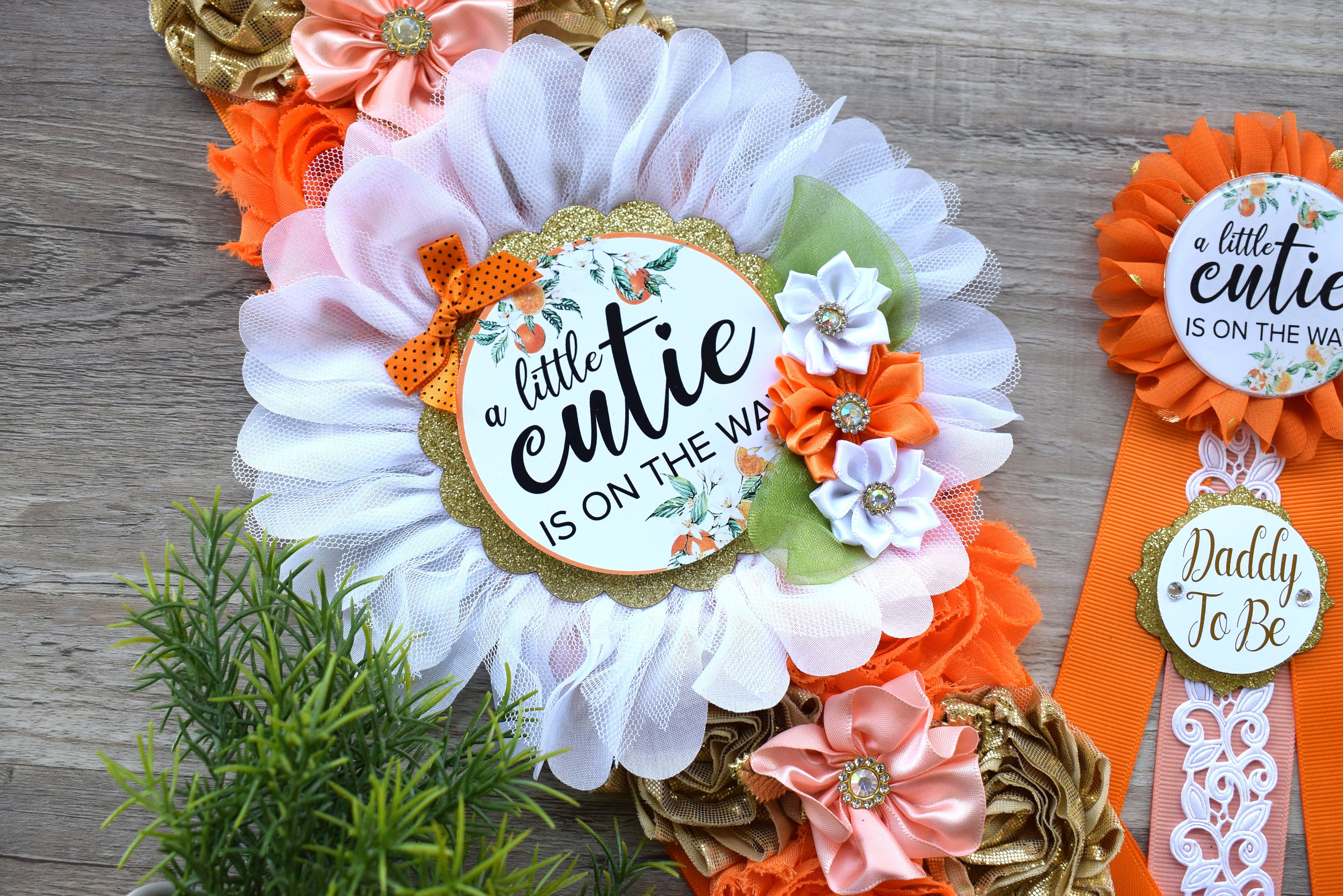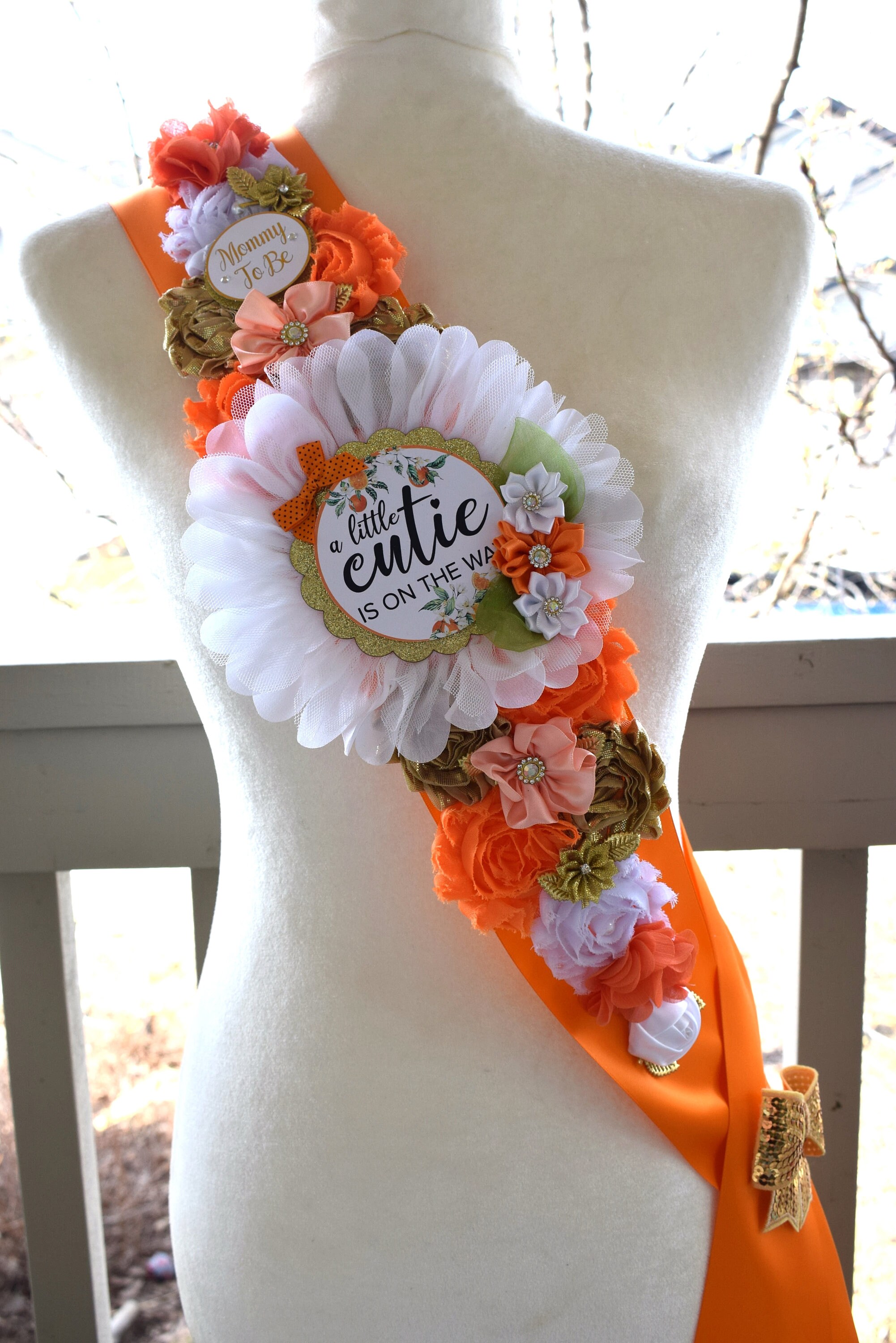 Orange Shoulder Sash, A Little Cutie Is On The Way Baby Shower Maternity Sash, A Little Cutie Orange Pregnant, Orange Coral Flower Sash