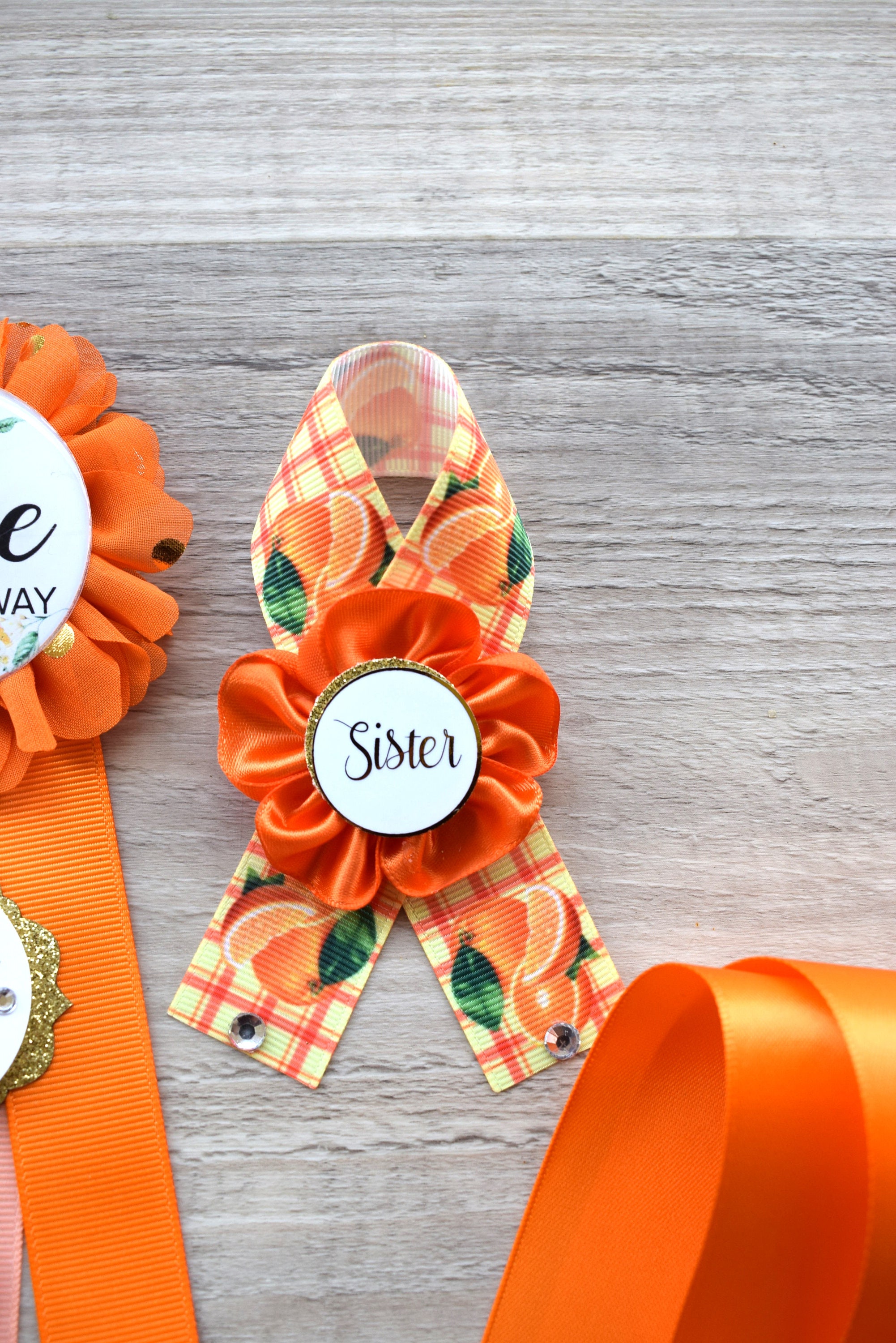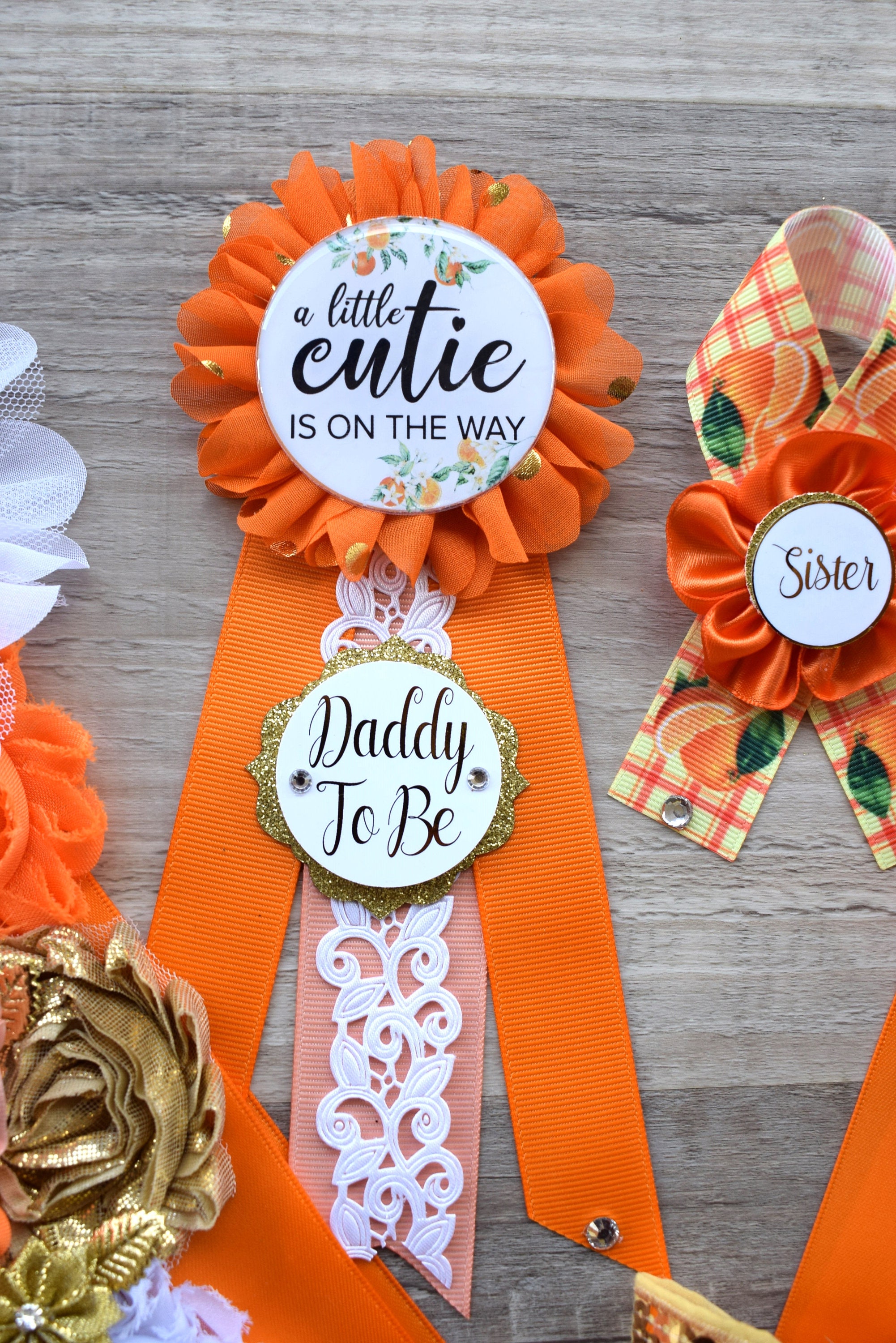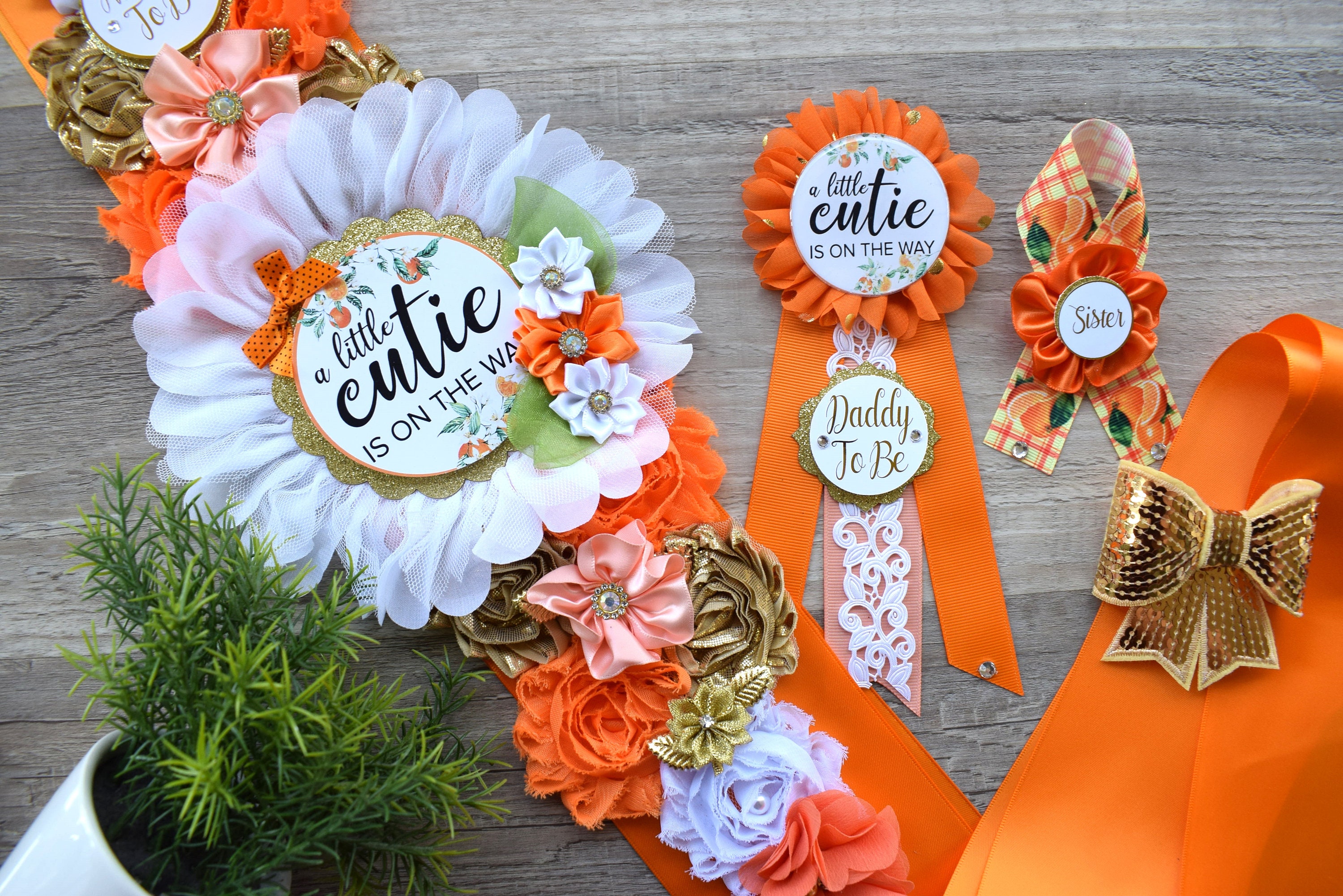 These A Little Cutie Orange Baby Shower Set was made especially for a Baby Shower or a Photo Prop.