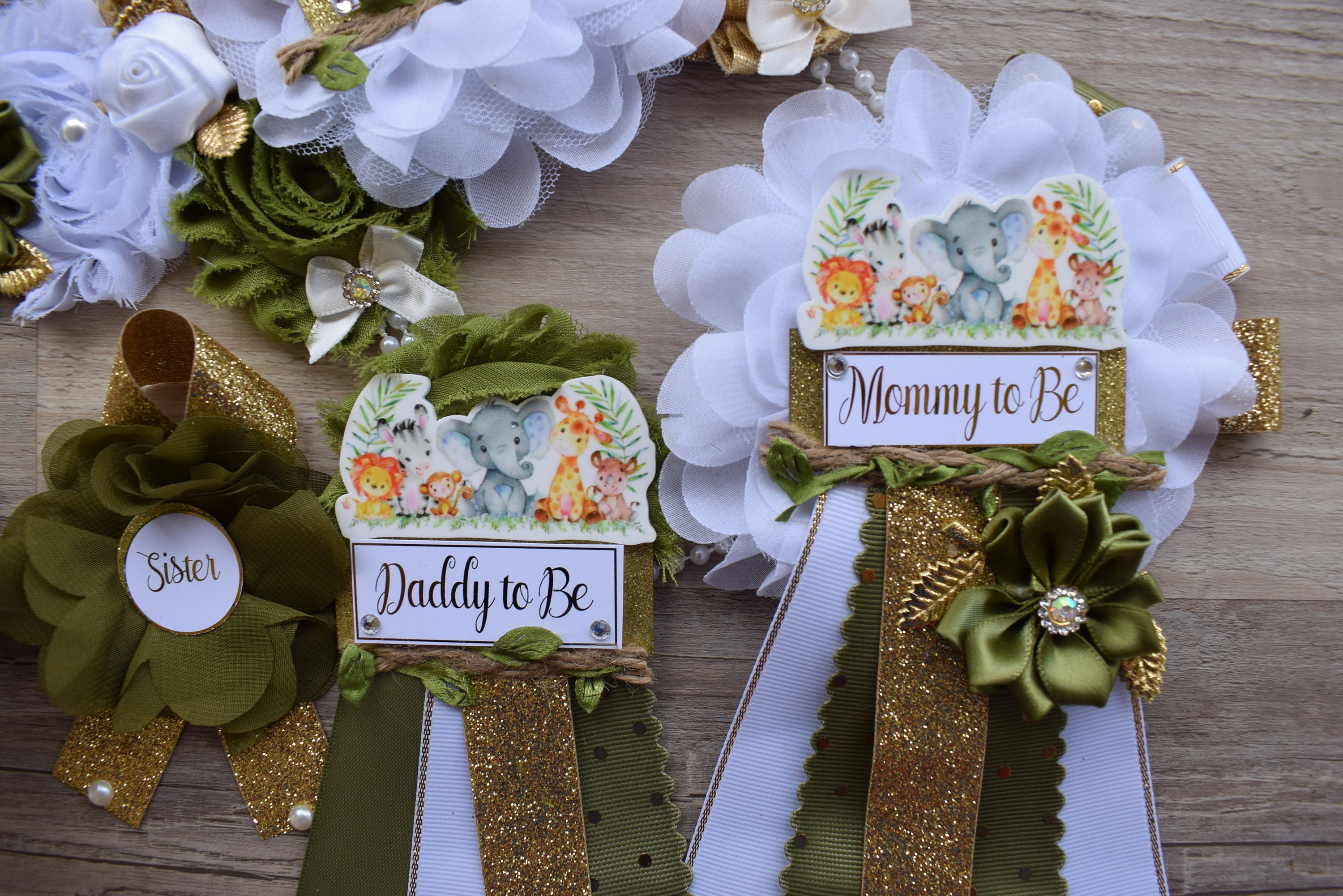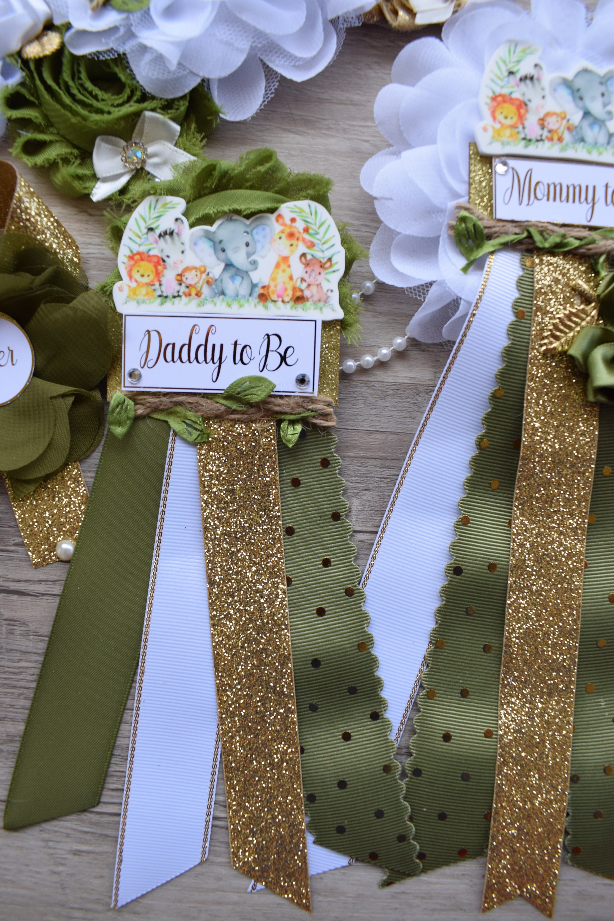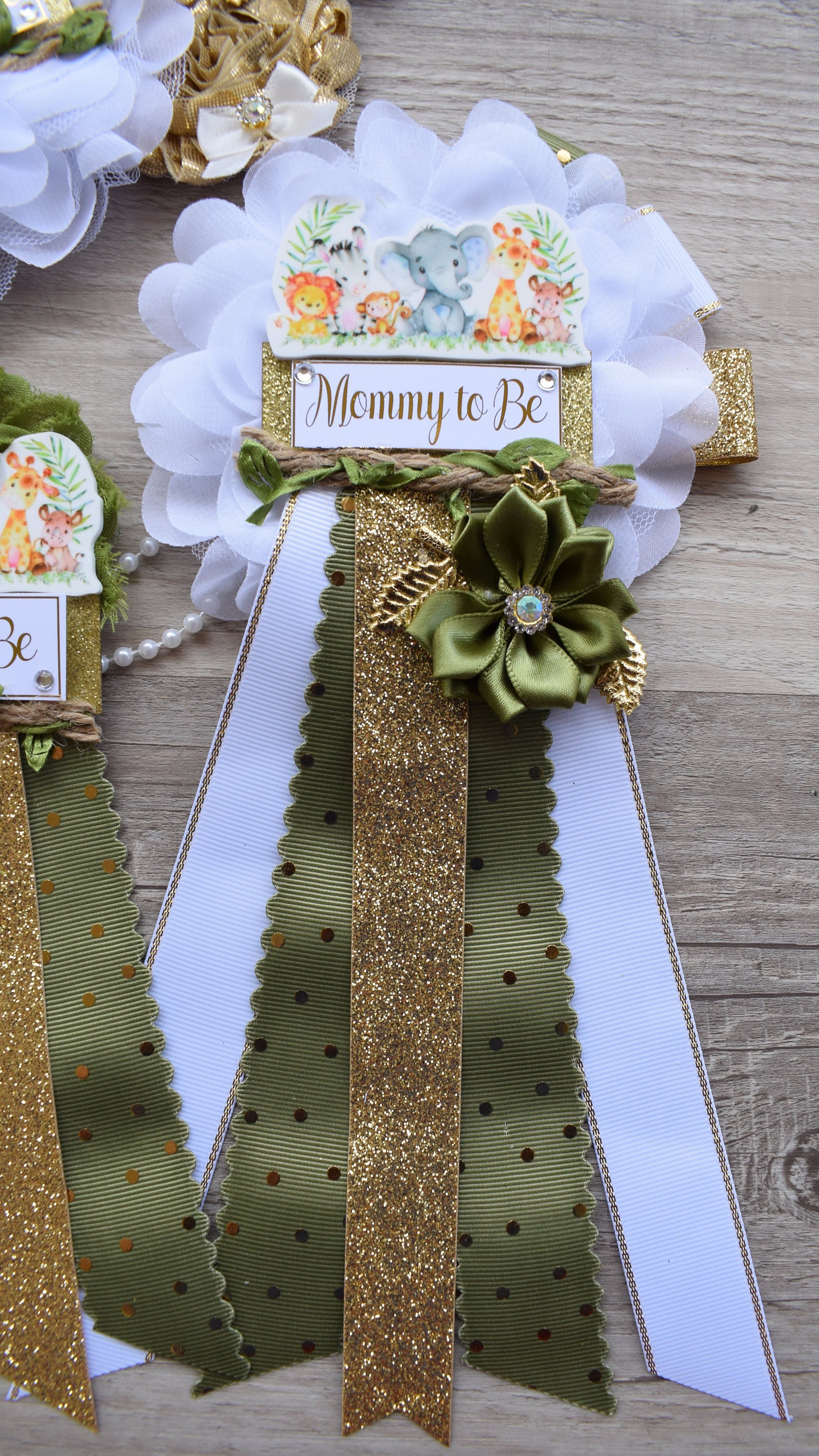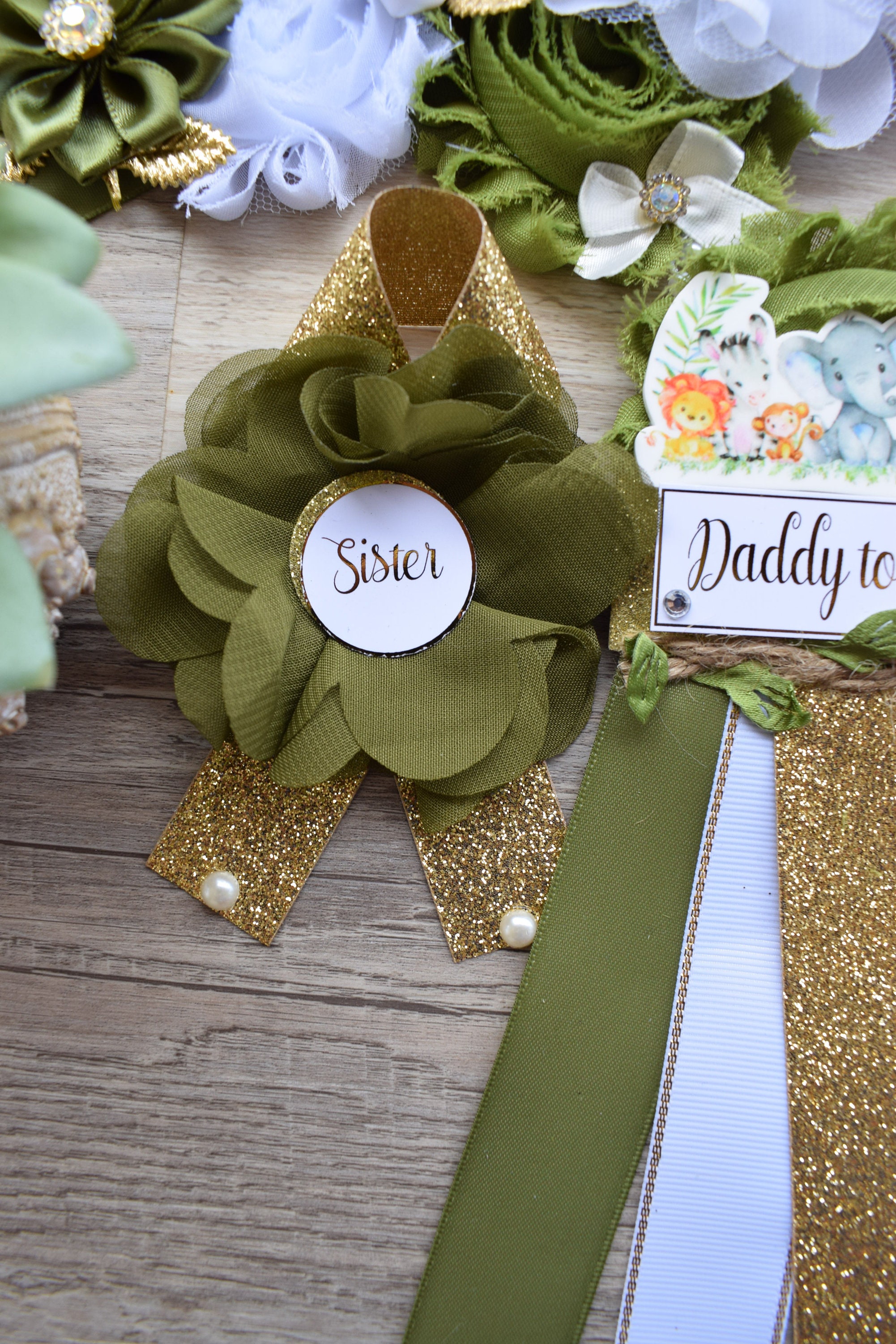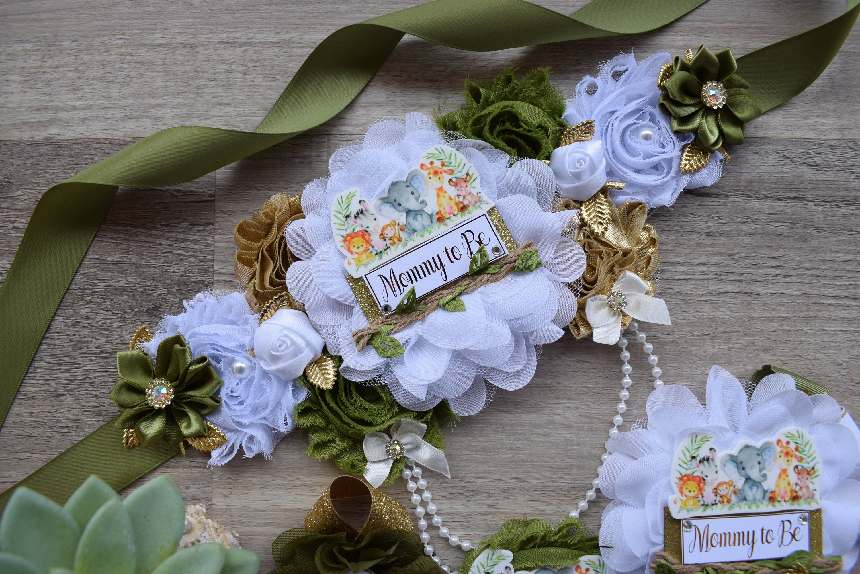 Olive Safari Baby Shower, Olive Maternity Sash, Olive Gold Baby Shower, Teddy Safari Green White Gold Belly Sash, Greenery Flower Sash