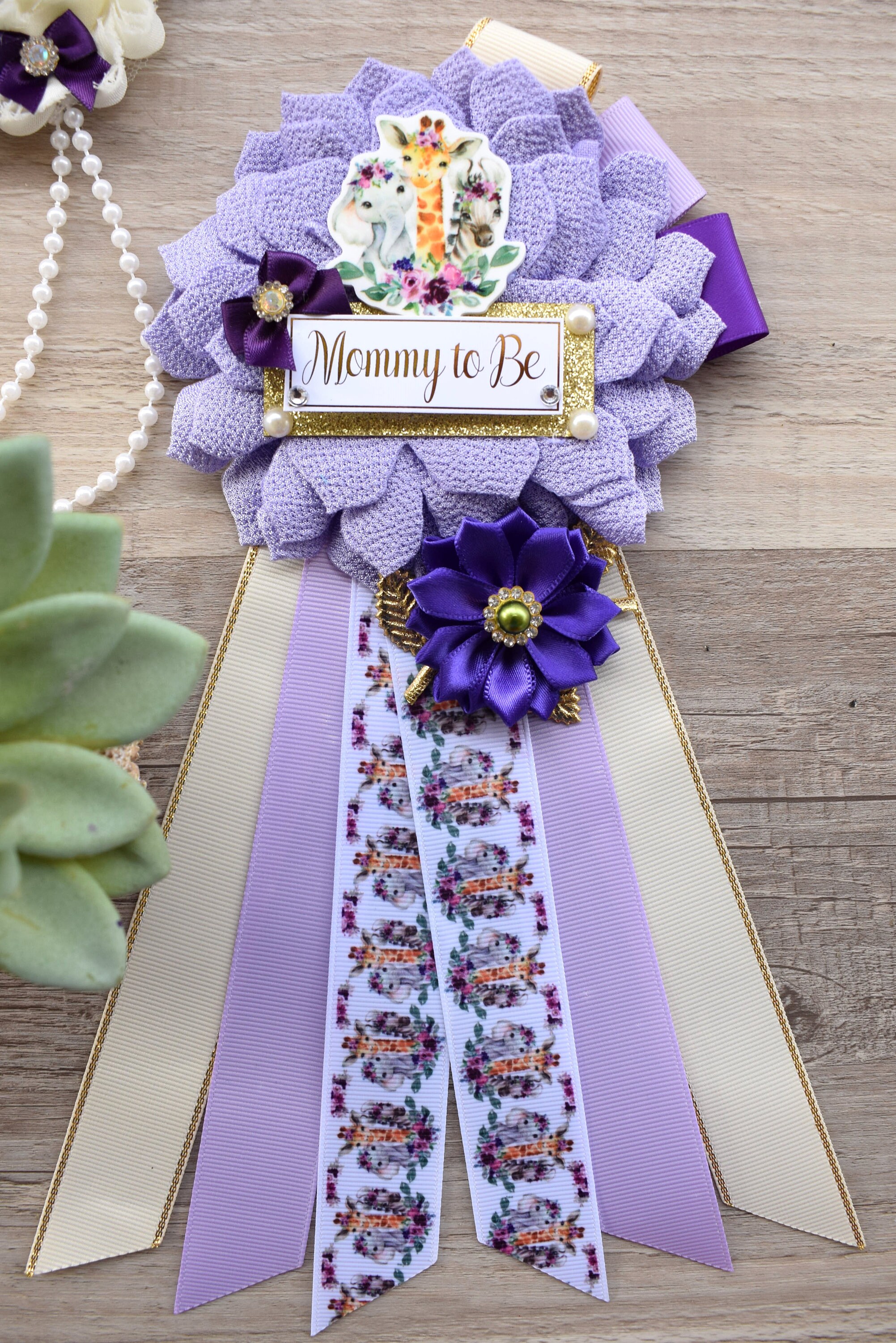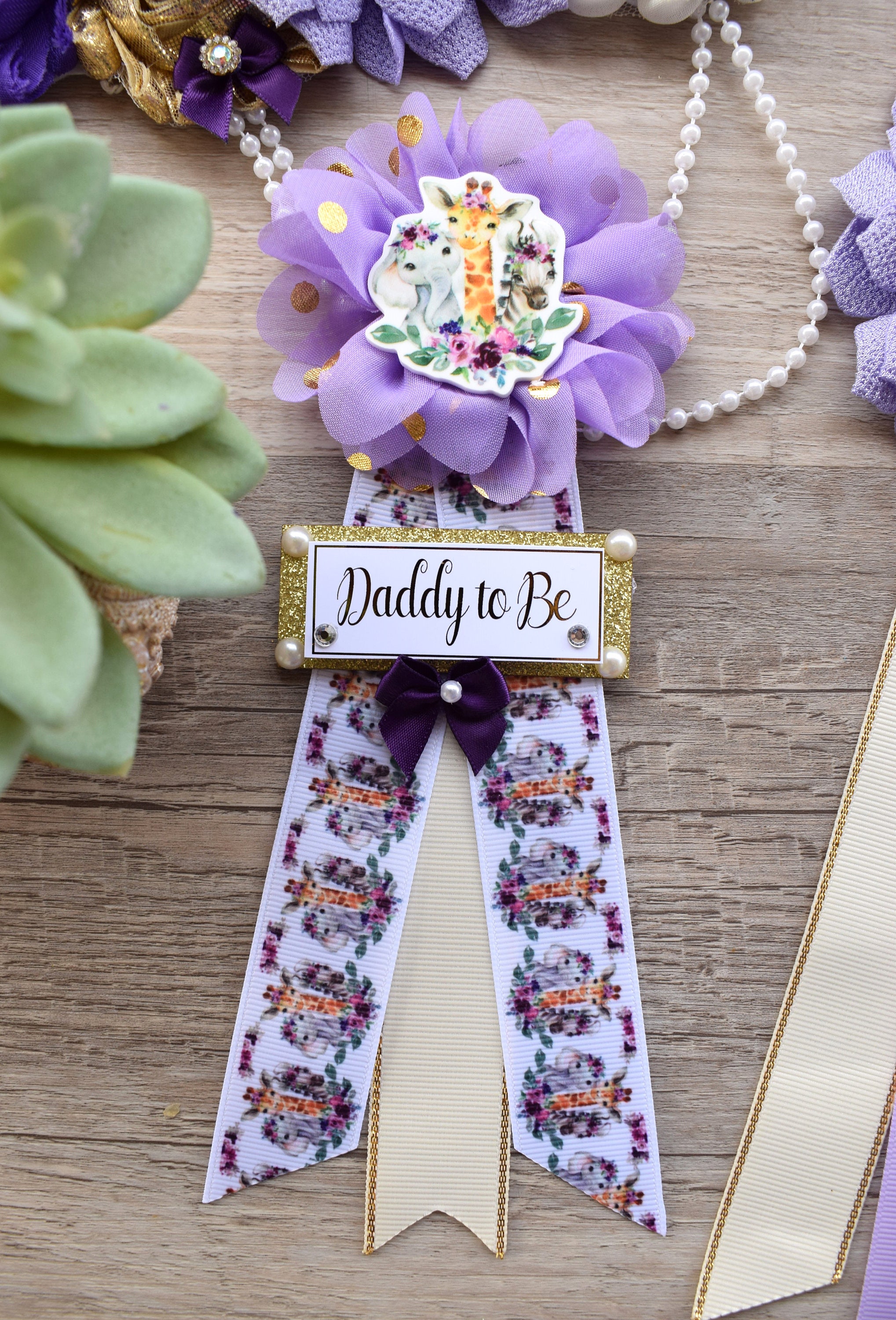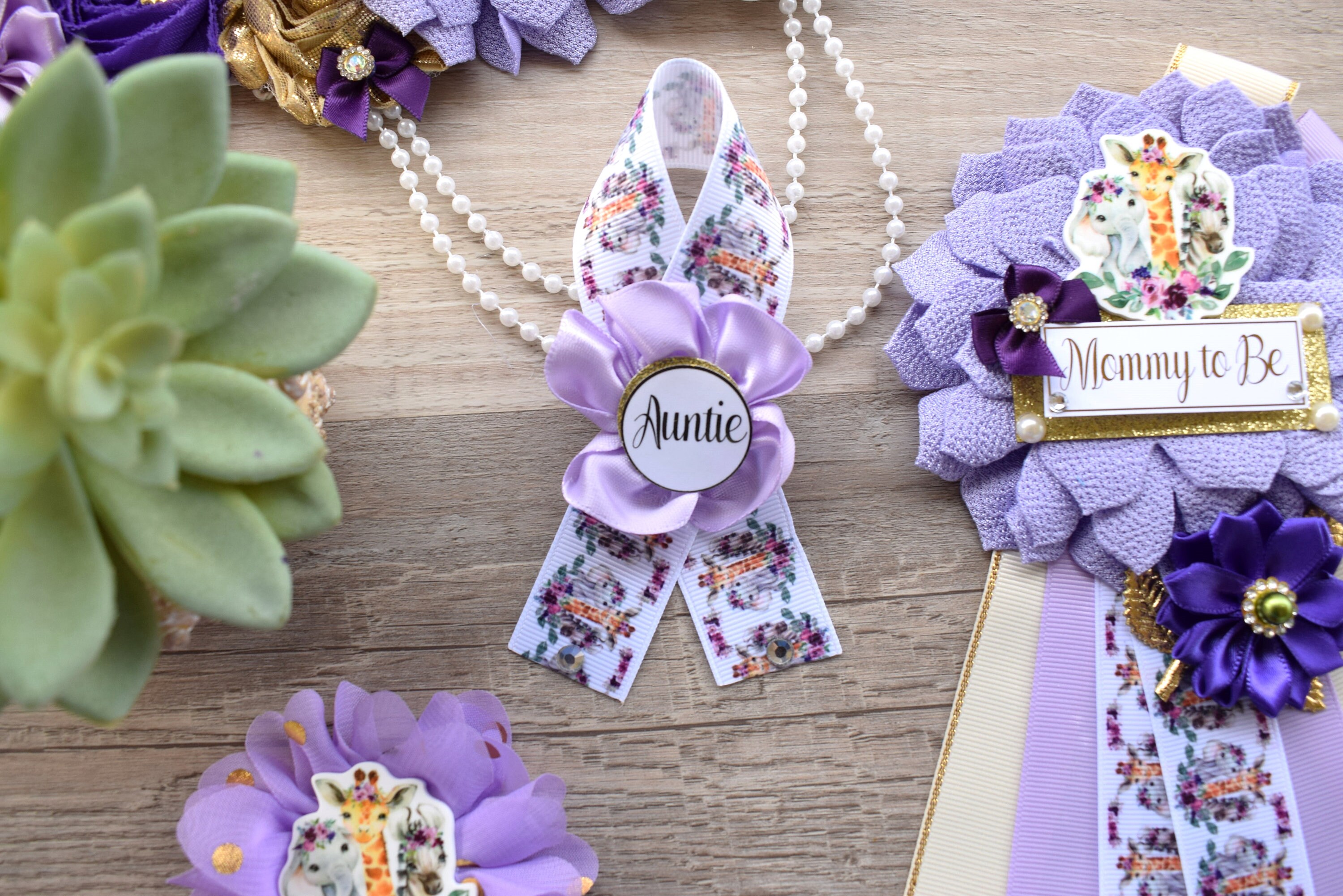 This Girl Purple Jungle Safari Sash & Pin Set were made especially for a Baby Shower or a Photo Prop. Details: