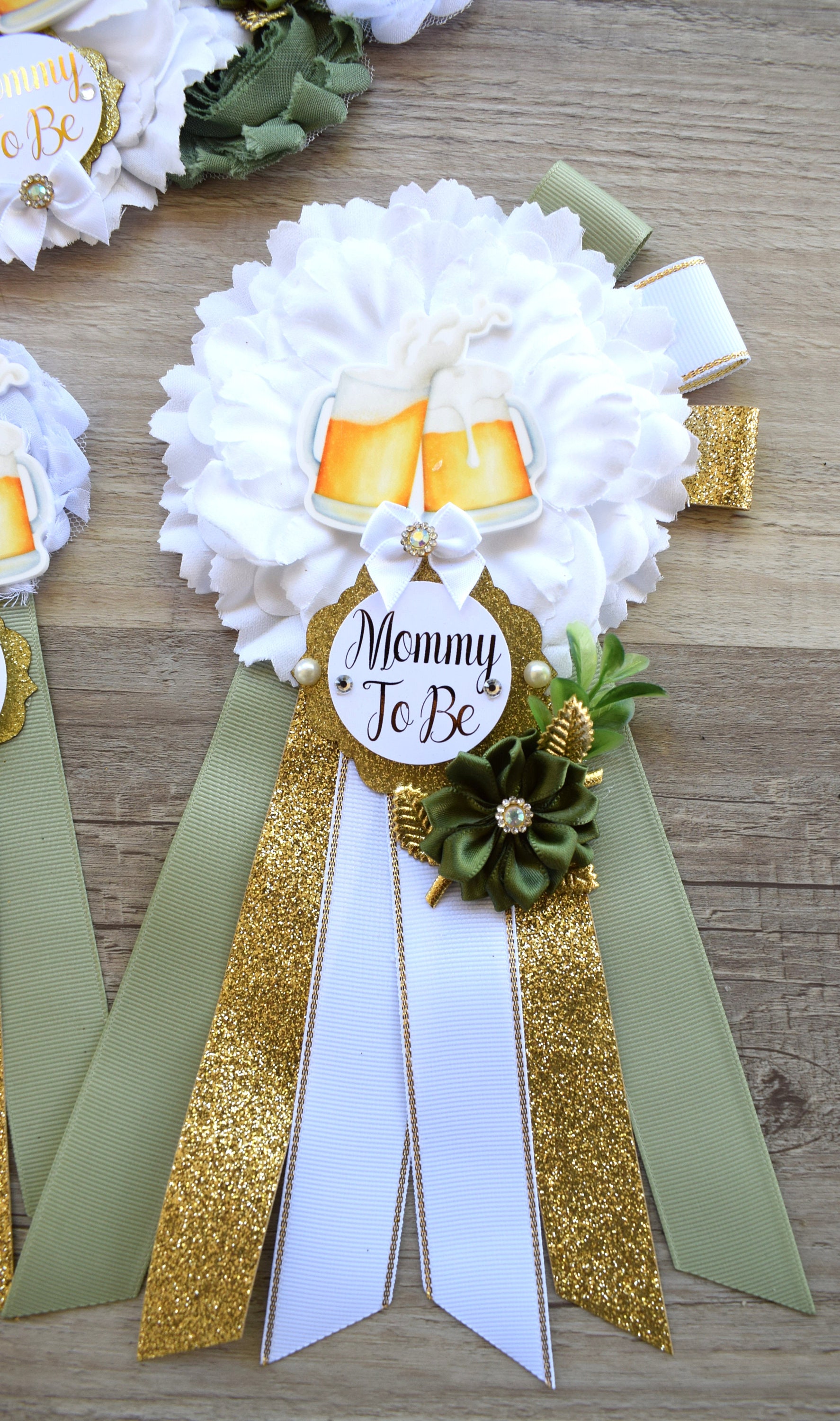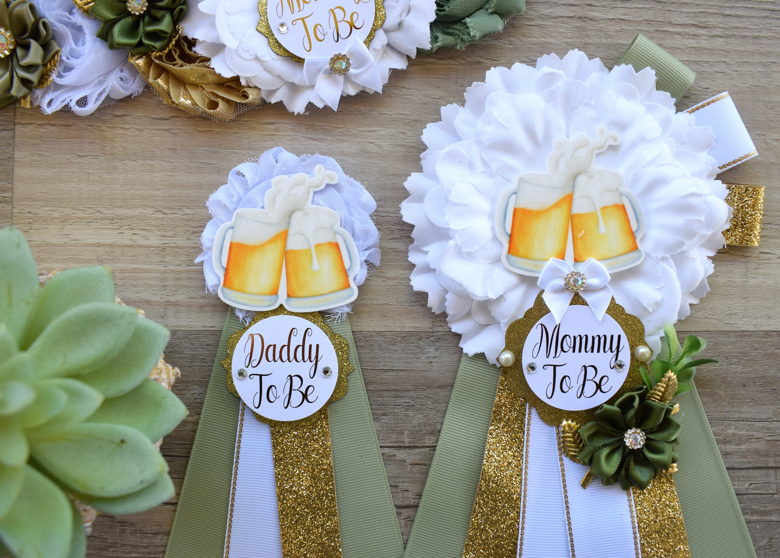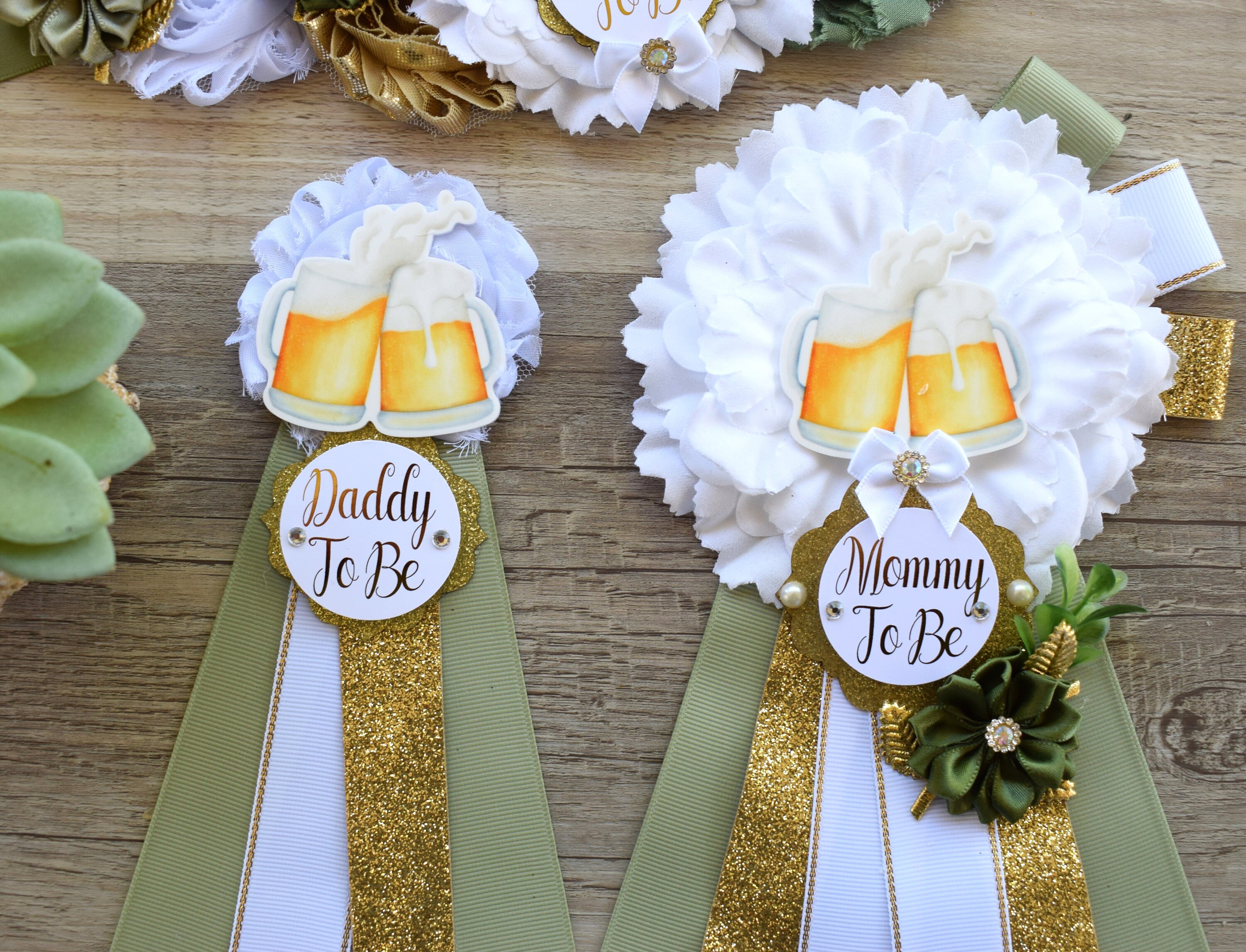 A Baby Is Brewing Baby Shower, Greenery White Gold Maternity Sash, Beer Mommy To Be Ribbon, Brewing Daddy To Be Pin, Gender Reveal Shower