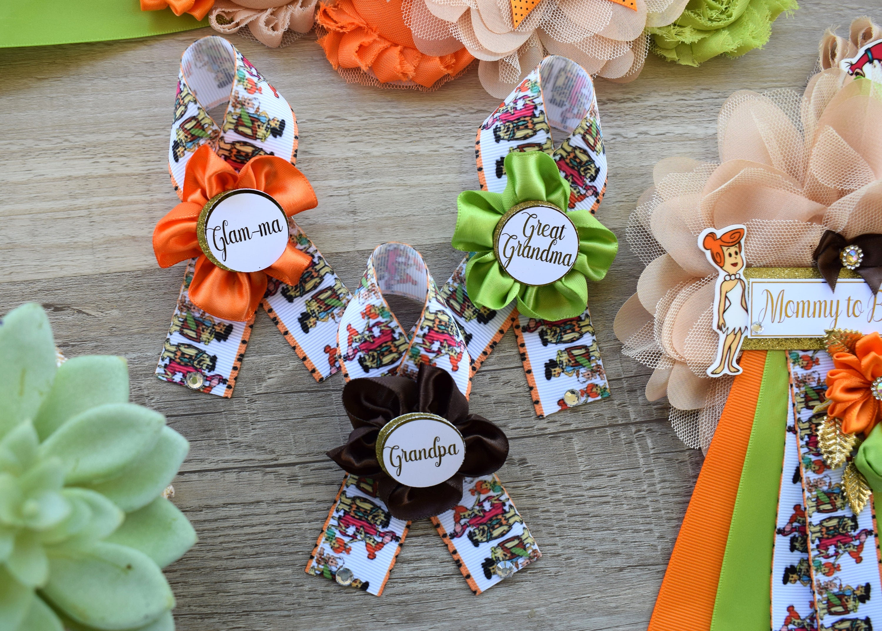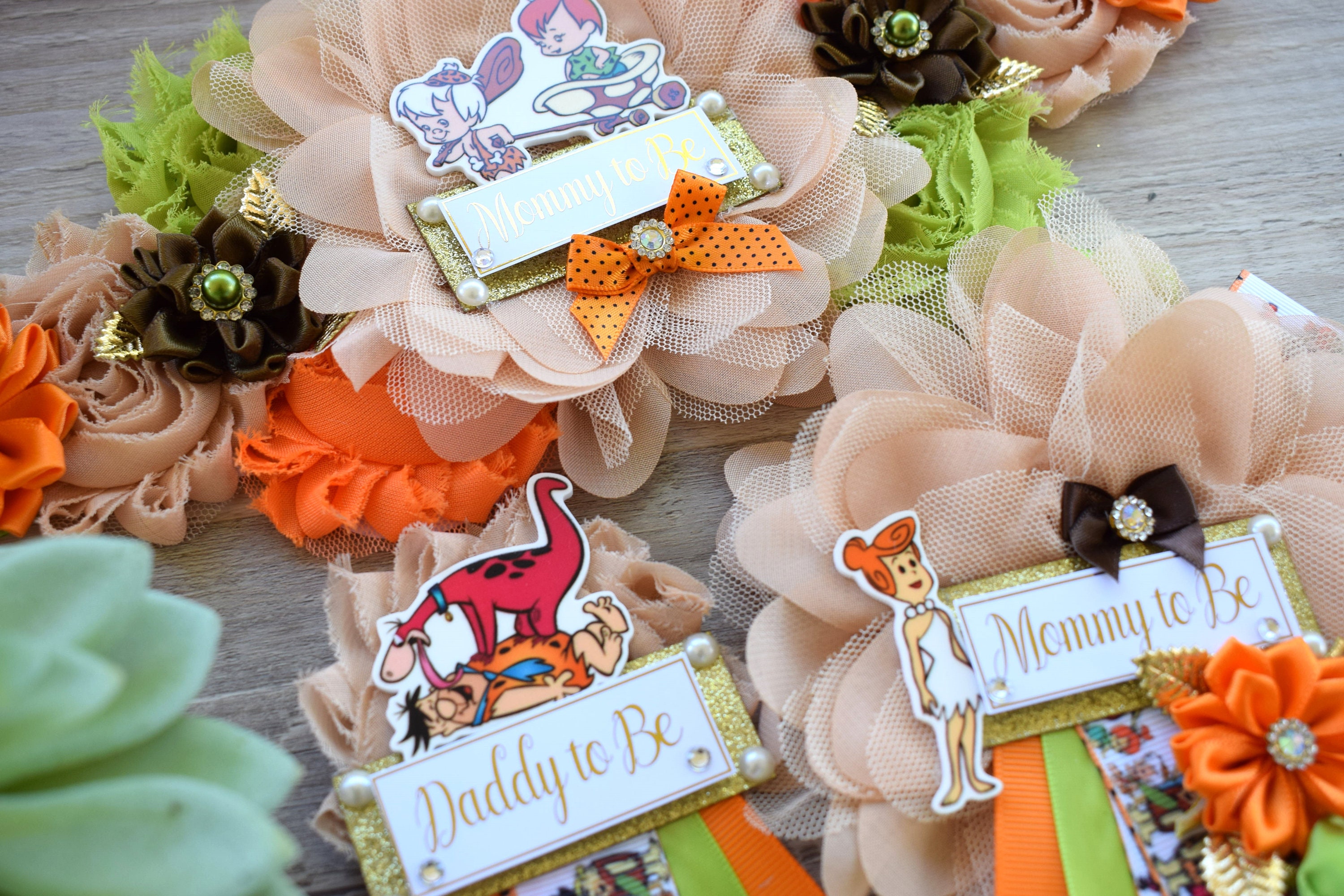 The Flintstones Baby Shower, Stone Age family Mommy To Be Ribbon Pin, Daddy To Be Ribbon, Pebbles Bam Bam Shower, Baby Shower Gift