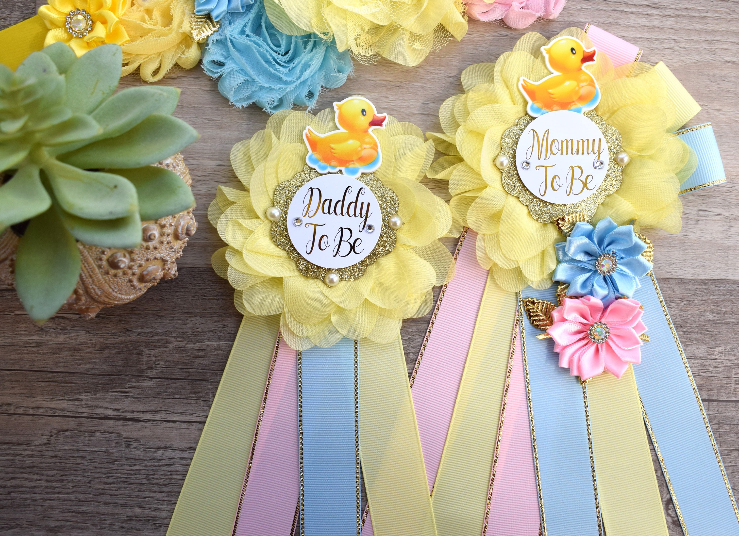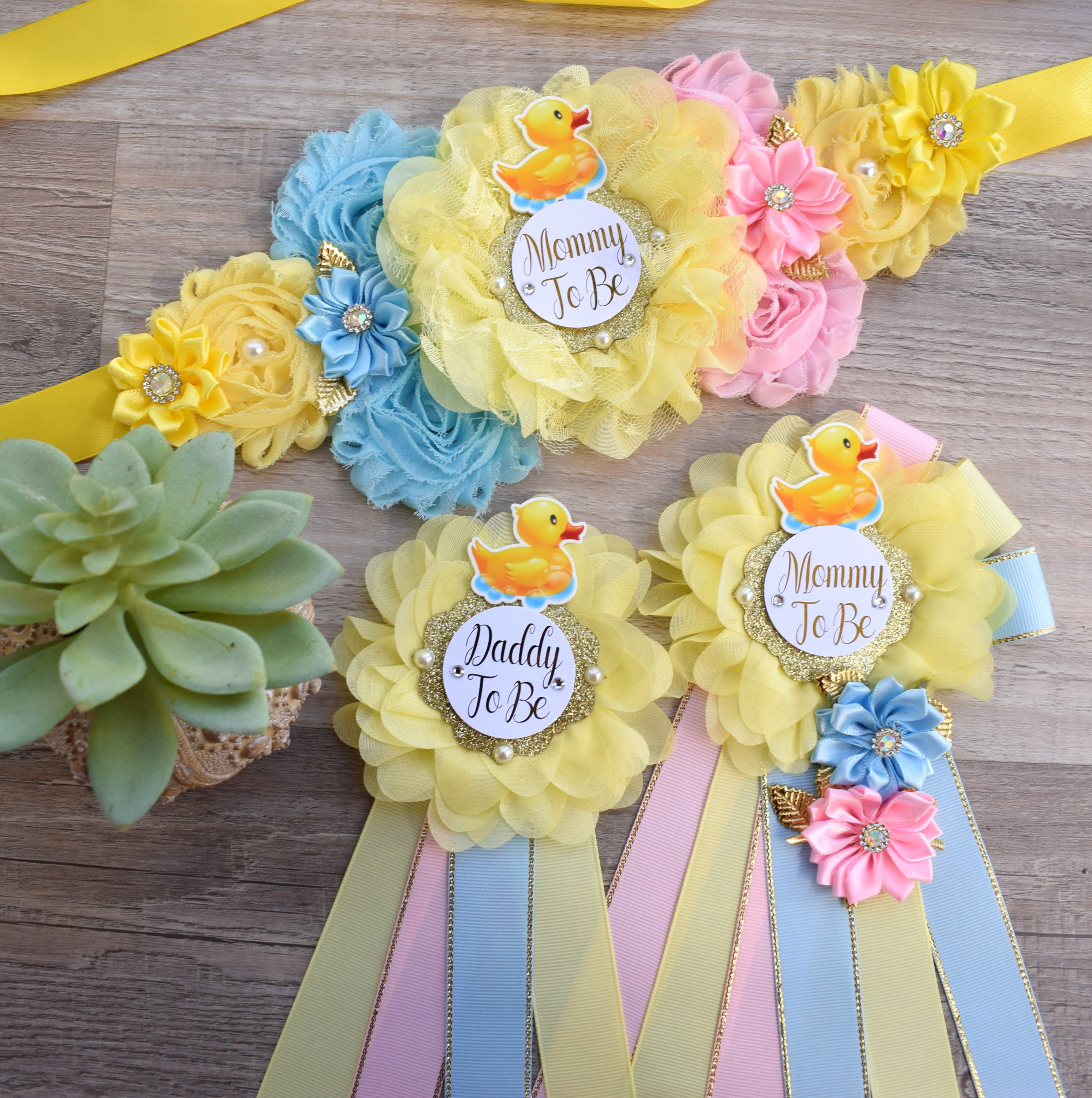 Gender Reveal Rubber Duck Baby Shower, Duck Sash, Mommy To Be Ribbon, Daddy To Be Pin, Yellow Blue Pink Rubber Duck Baby Shower Gift