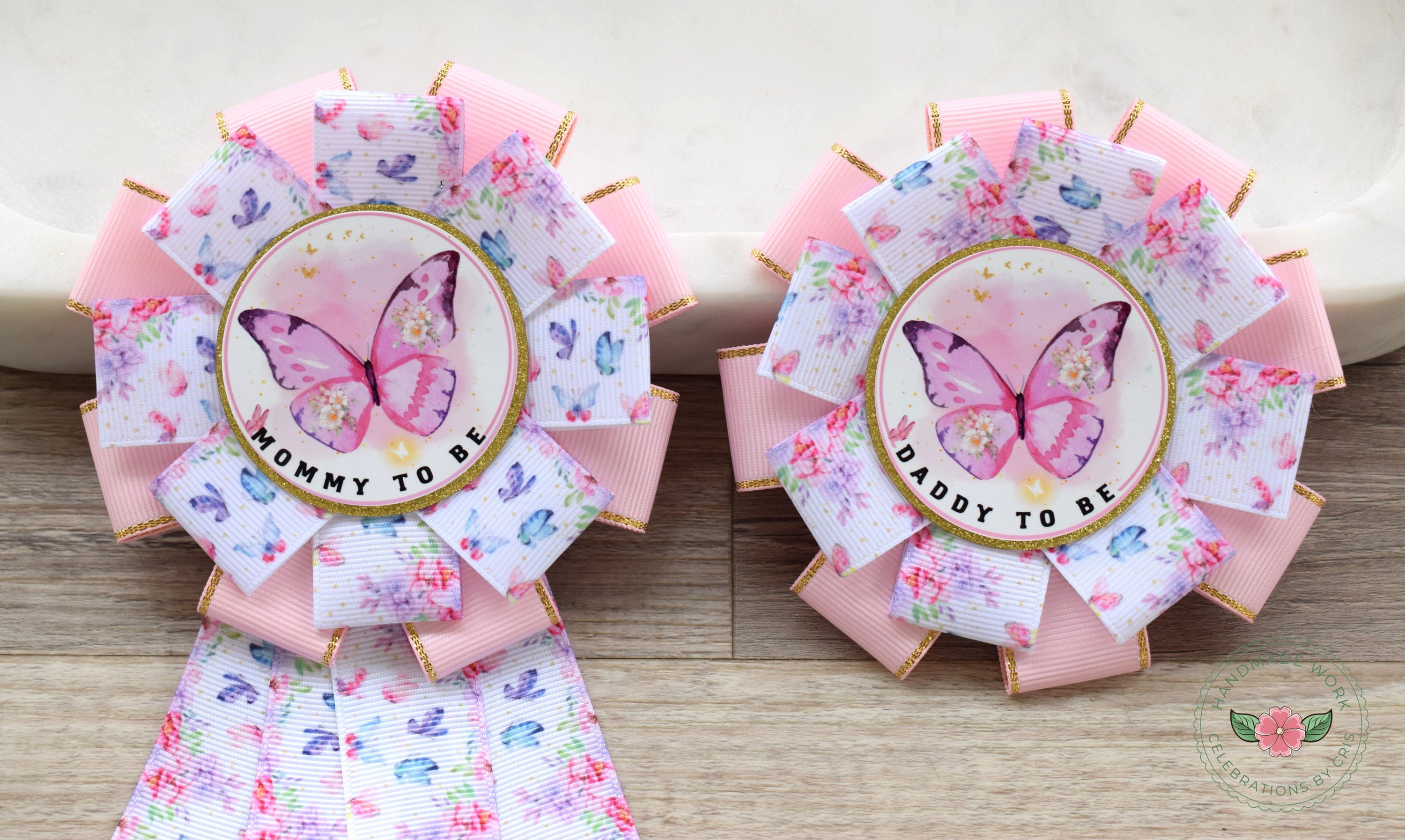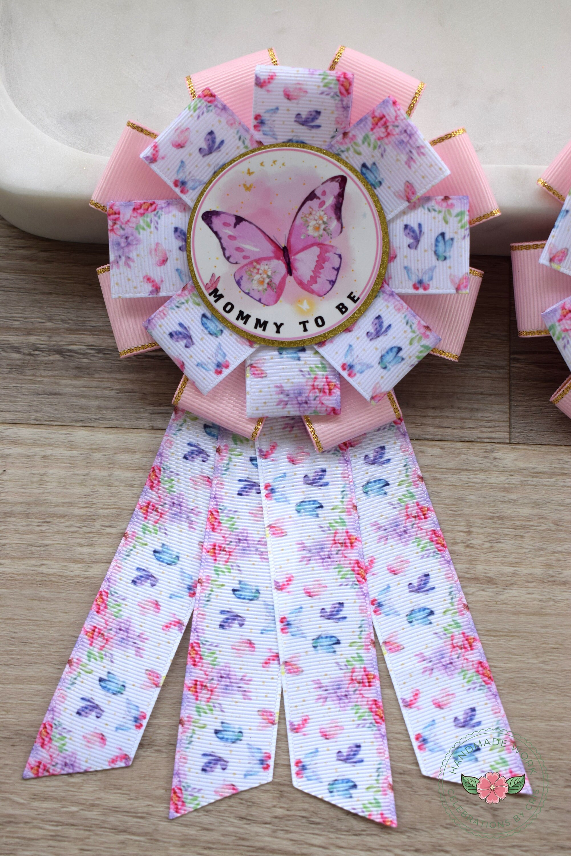 Butterfly Baby Shower, Butterfly Mommy To Be Ribbon Pin, Butterfly Daddy To Be Pin, Pink Lavender Gold Butterfly Big Sister, Big Brother