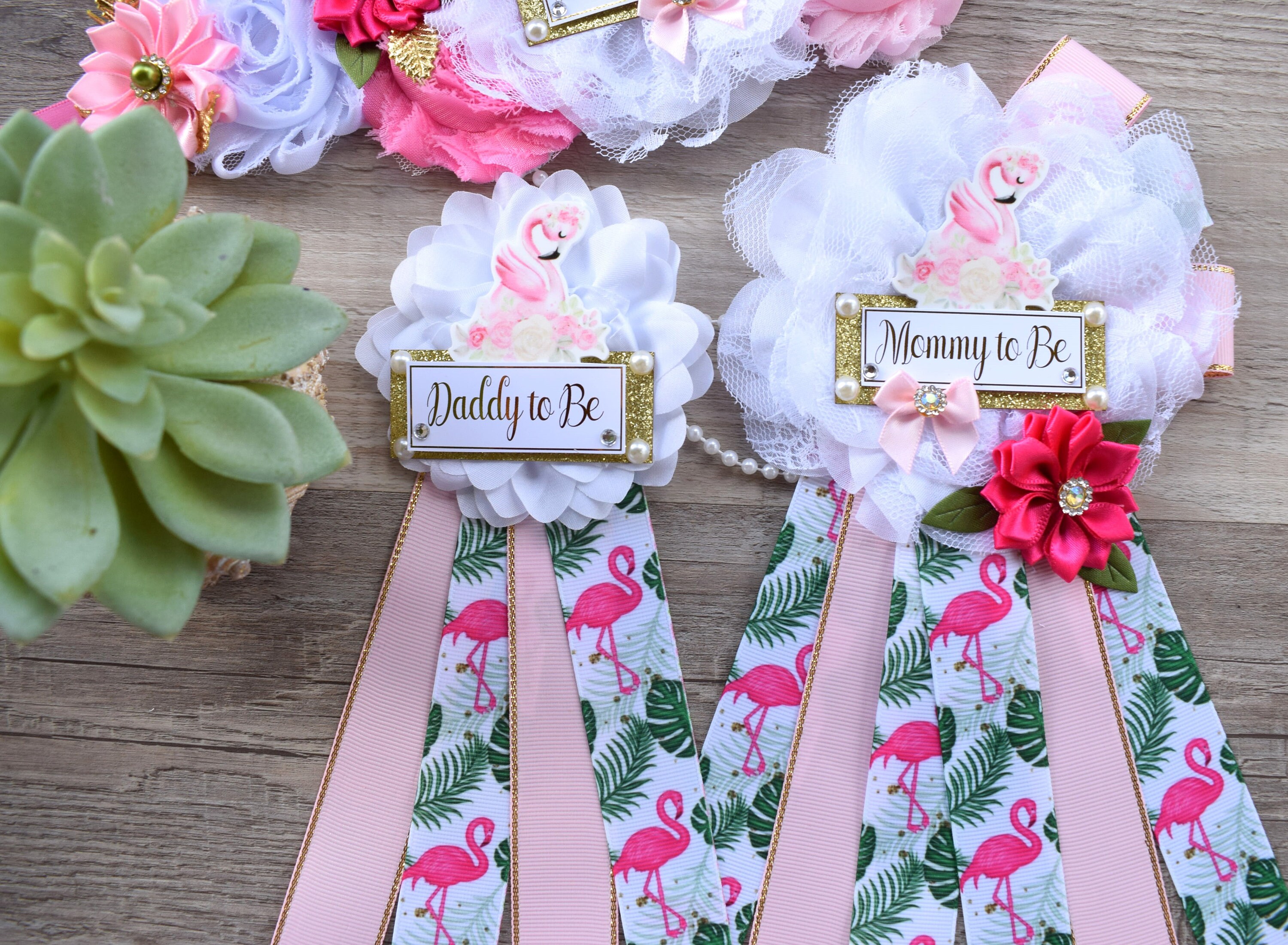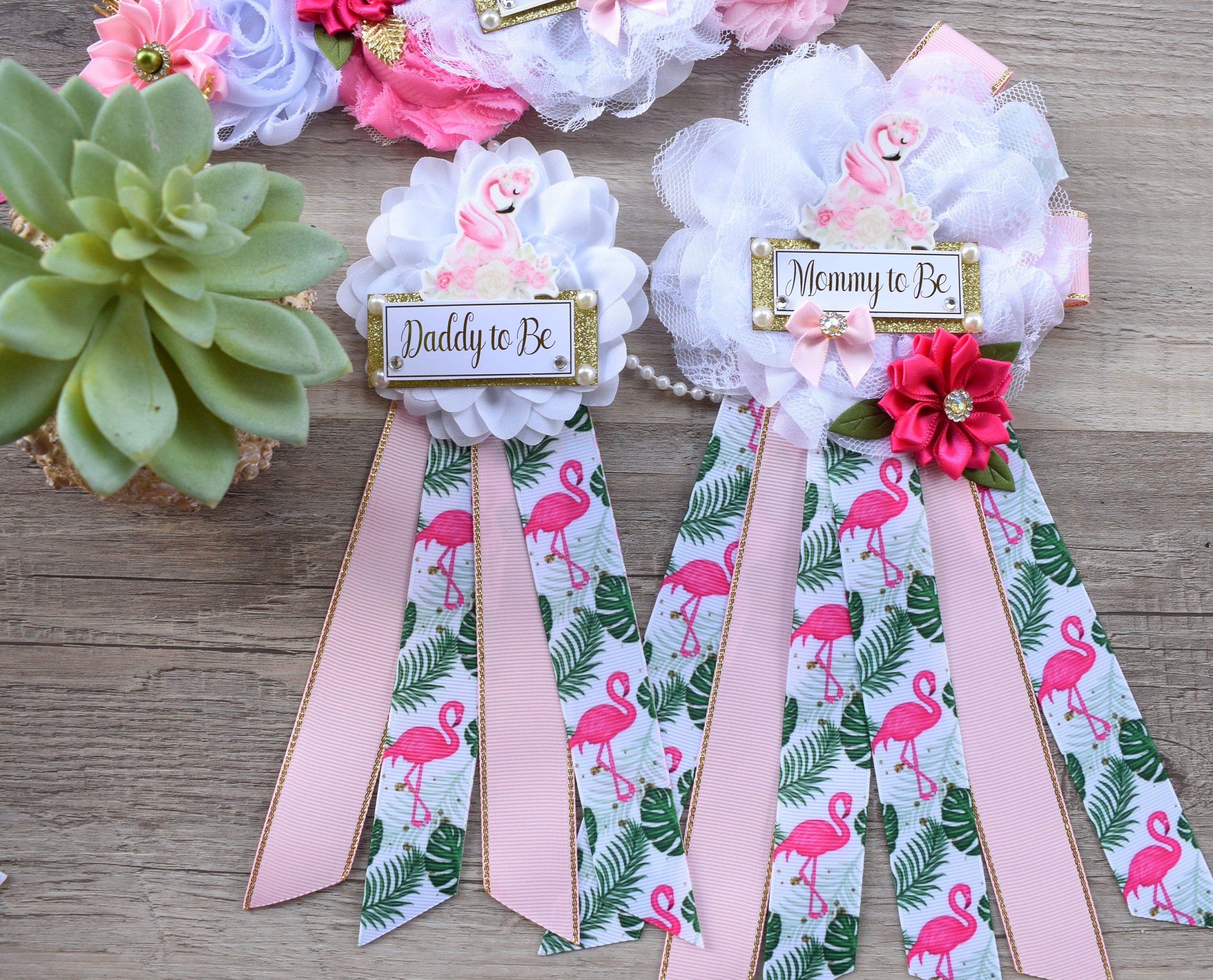 Flamingo Baby Shower, Flamingo Corsage Pin, Tropical Flamingo Baby Shower, Flamingo Mommy To Be Pin, Flamingo Daddy To Be Corsage