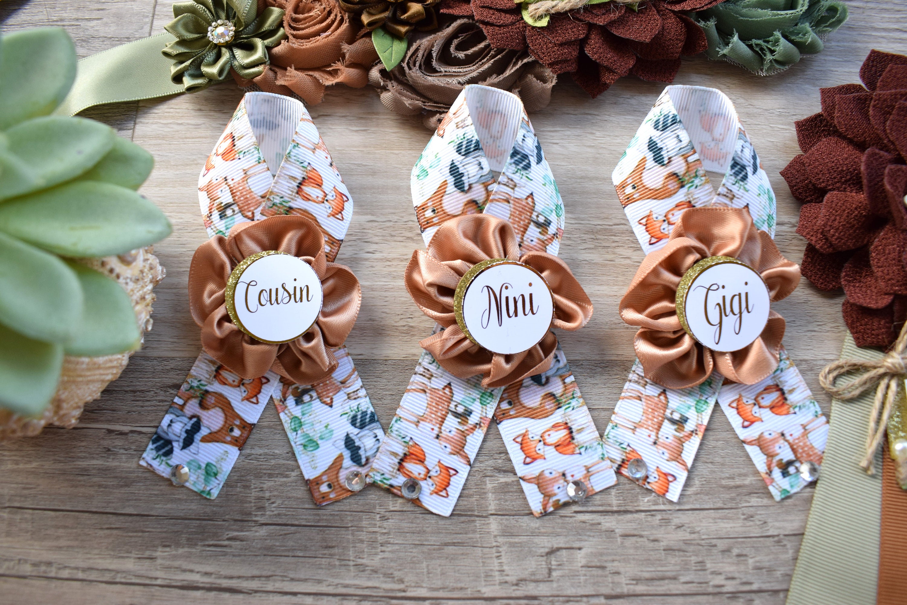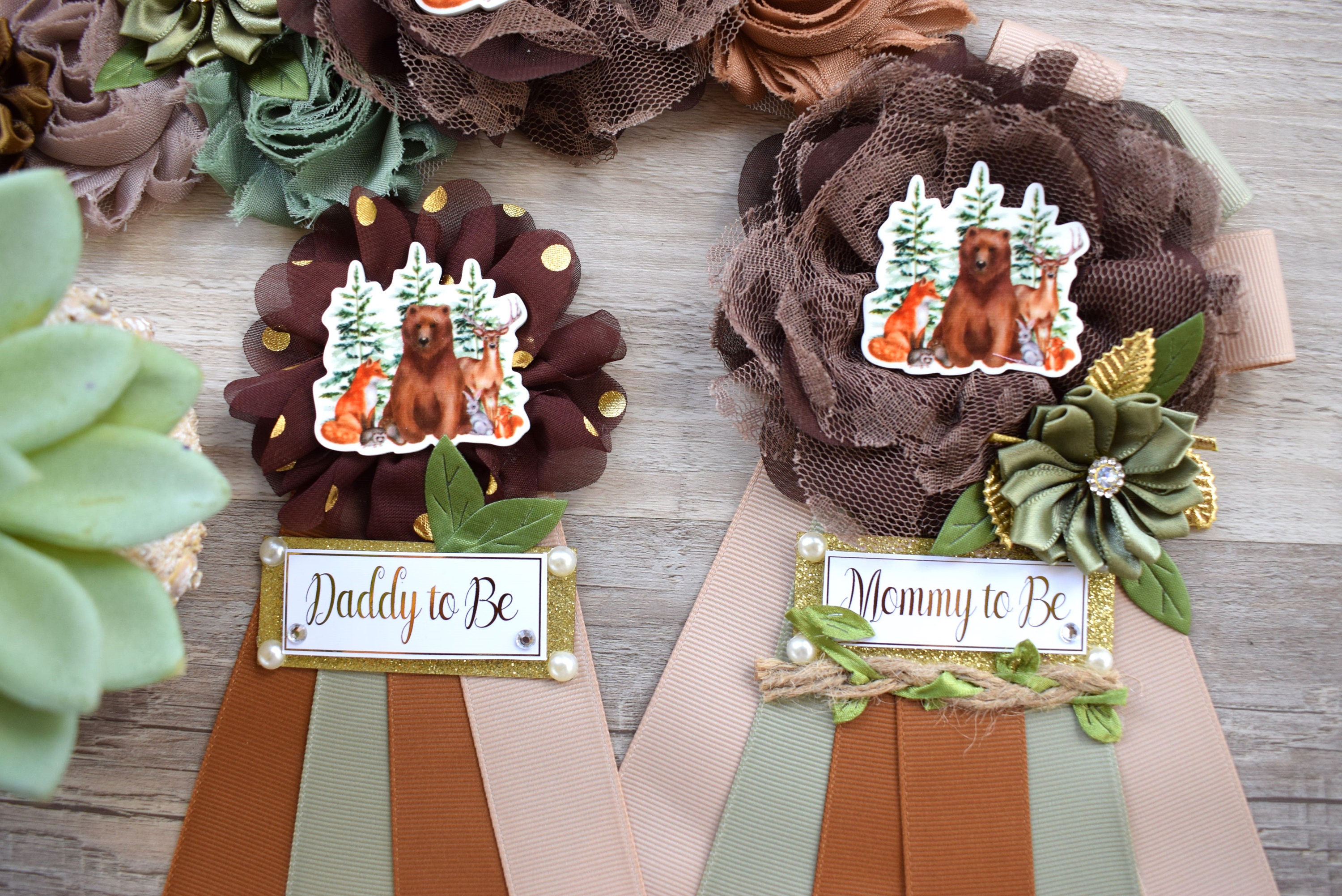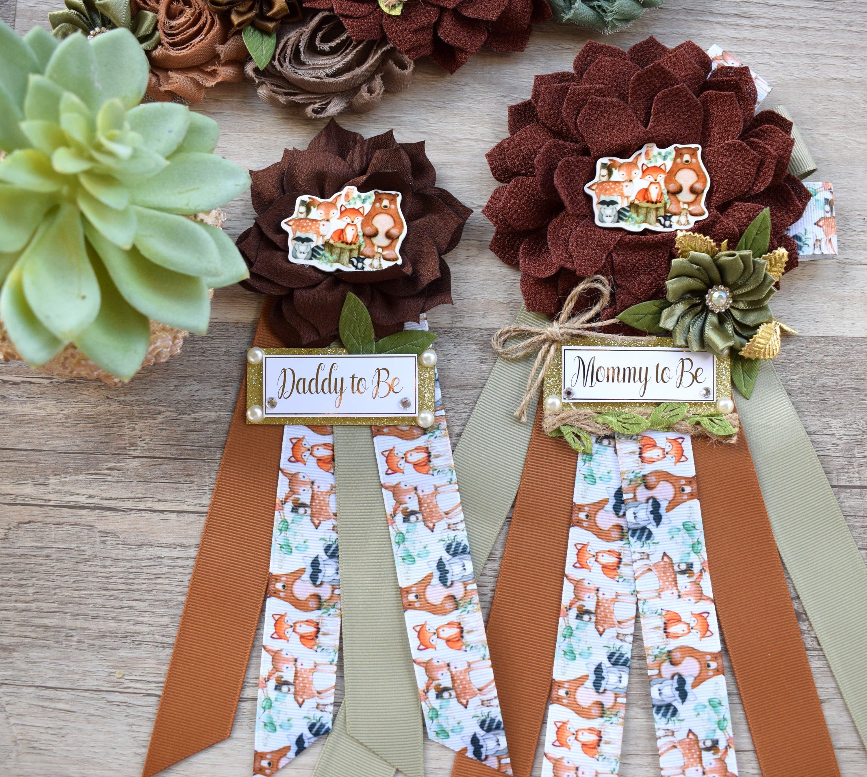 This Woodland Sash & Pin Set was made especially for a Baby Shower or a Photo Prop.