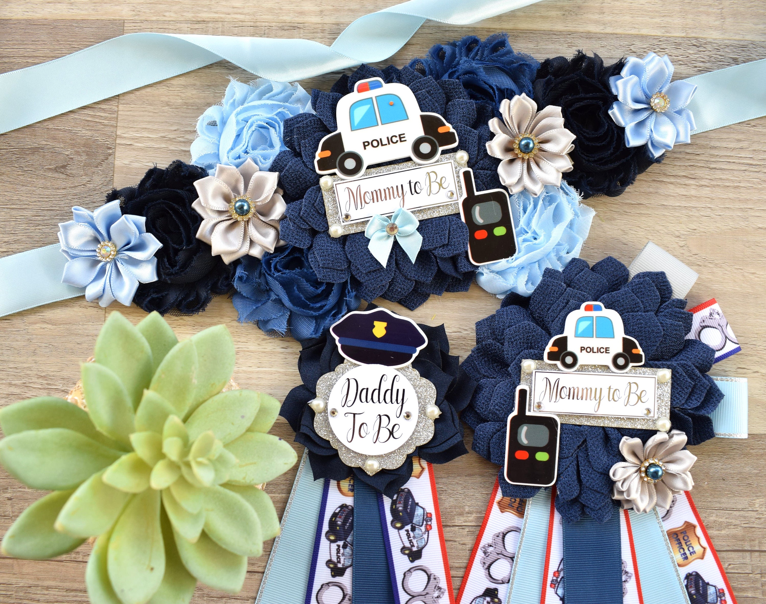 Police Baby Shower, Navy Blue Grey Maternity Sash, Police Mommy To Be Ribbon, Cop Baby Shower Sash, Policeman Daddy To Be Pin, Custom