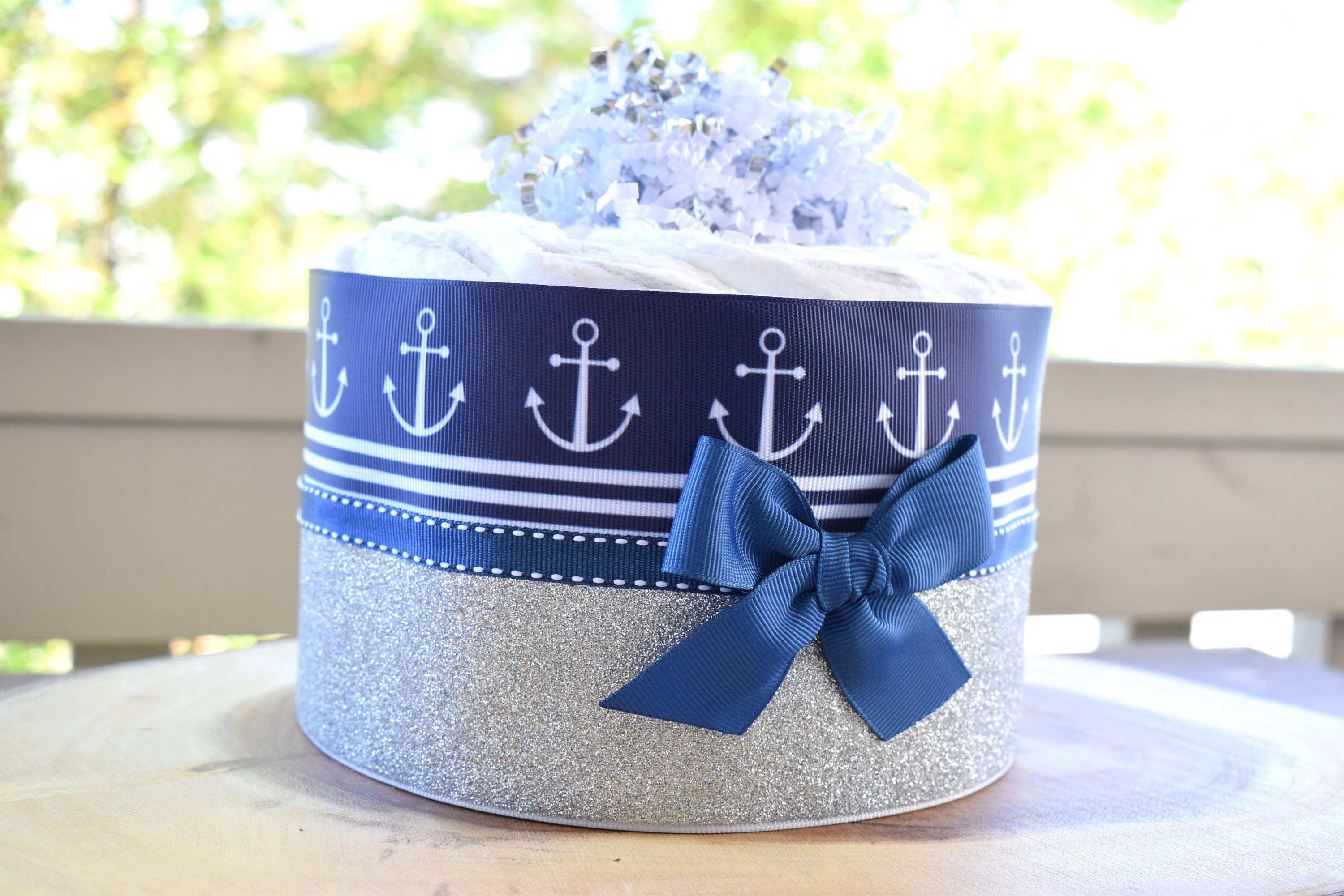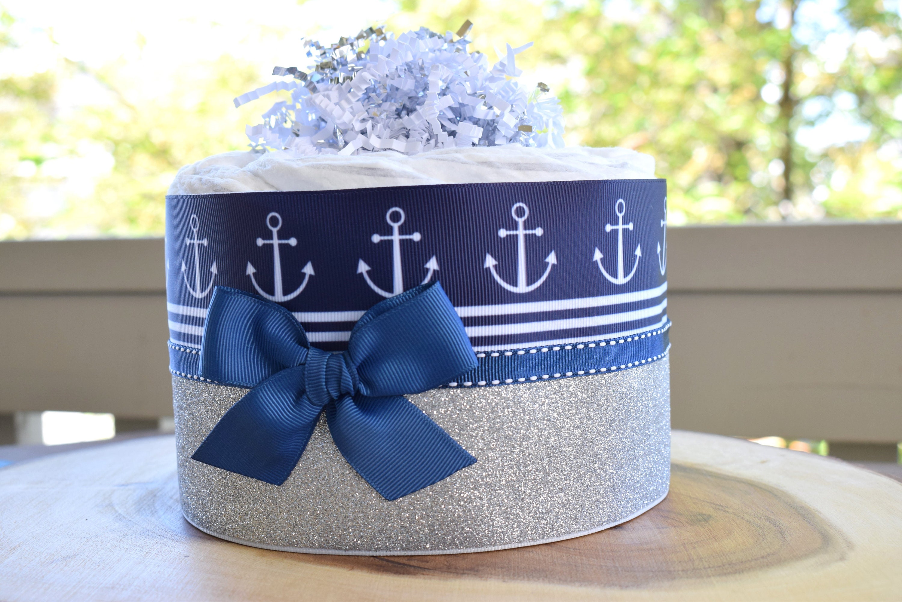 Nautical Anchor Mini Diaper Cake Baby Shower, Baby Shower Centerpieces Decorations, Girls Room Nursery Decor, New Mom Gift, Baby Shower Gift