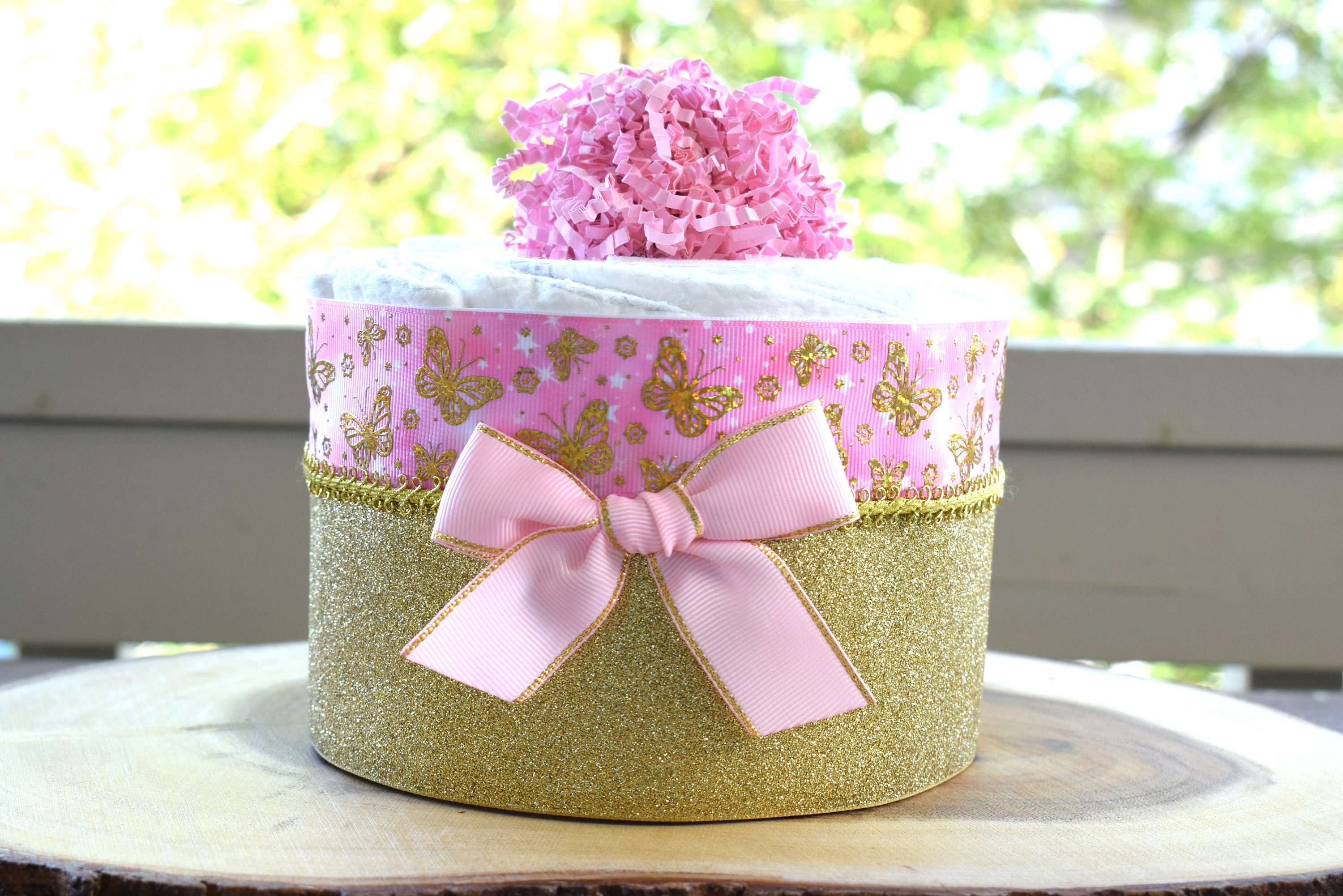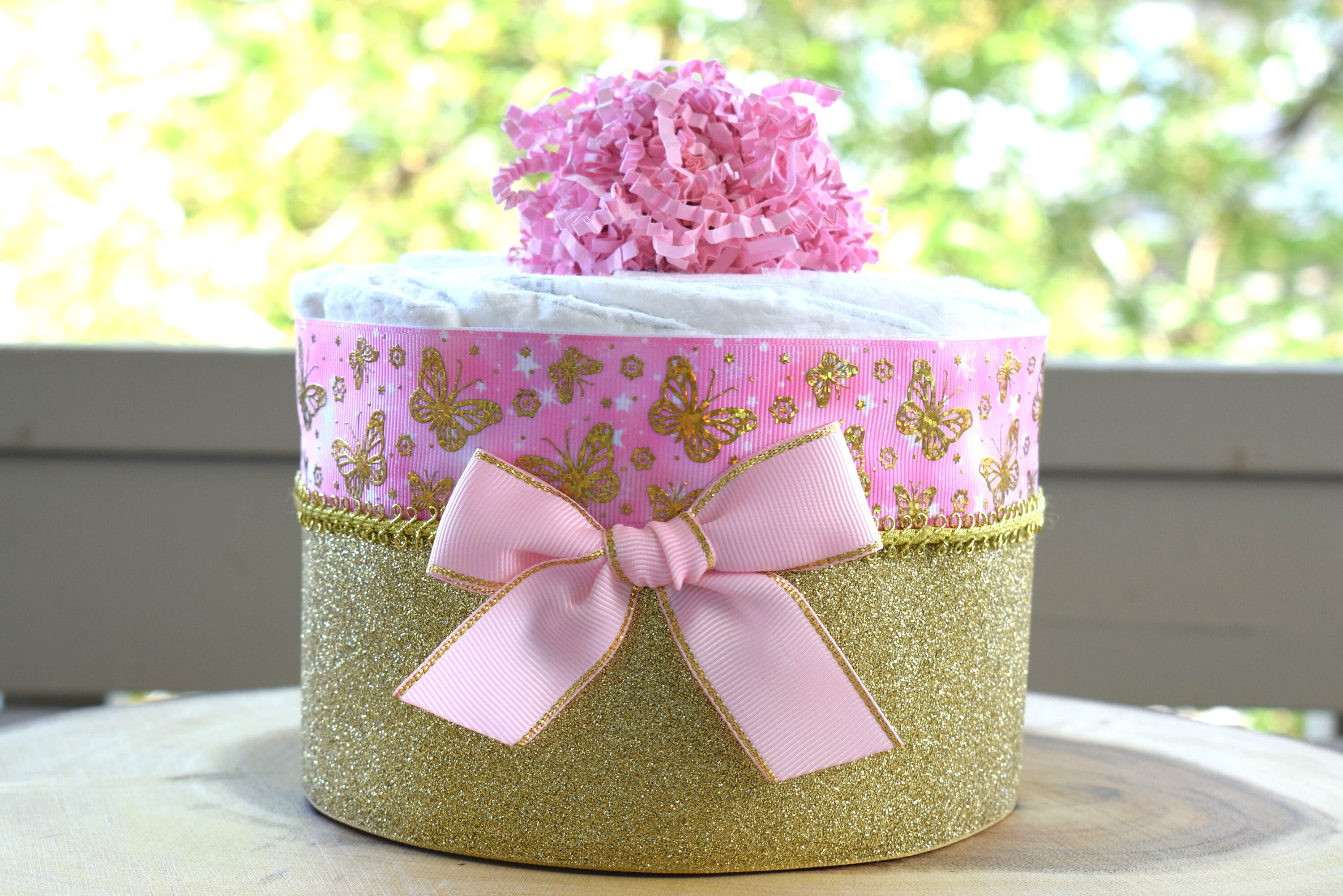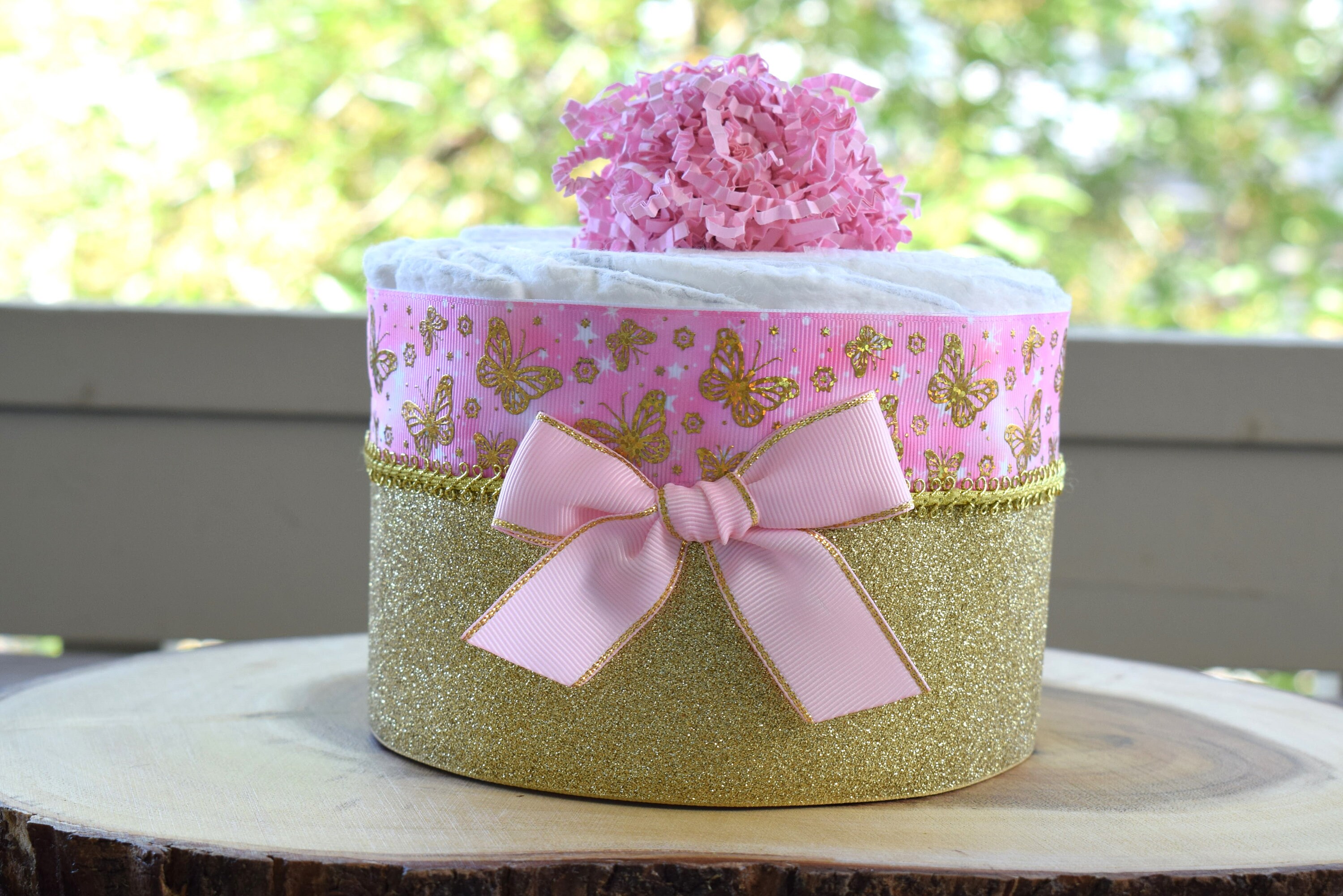 Pink Butterfly Mini Diaper Cake Baby Shower, Baby Shower Centerpieces Decorations, Girls Room Nursery Decor, New Mom Gifts, Baby Shower Gift