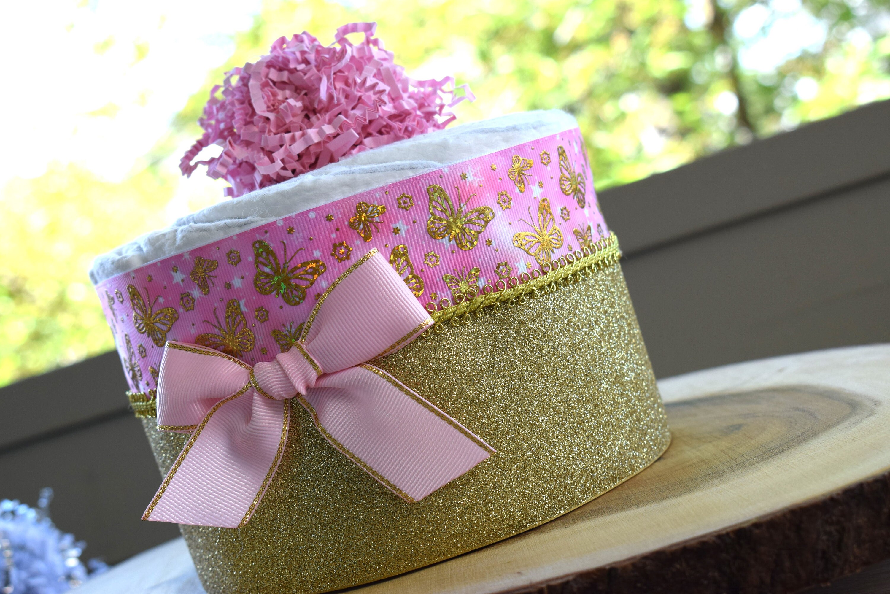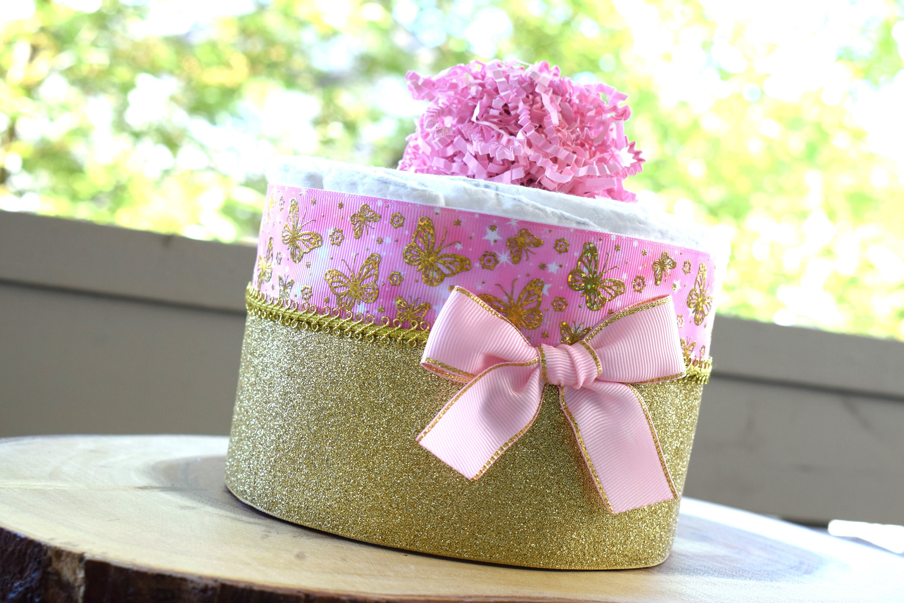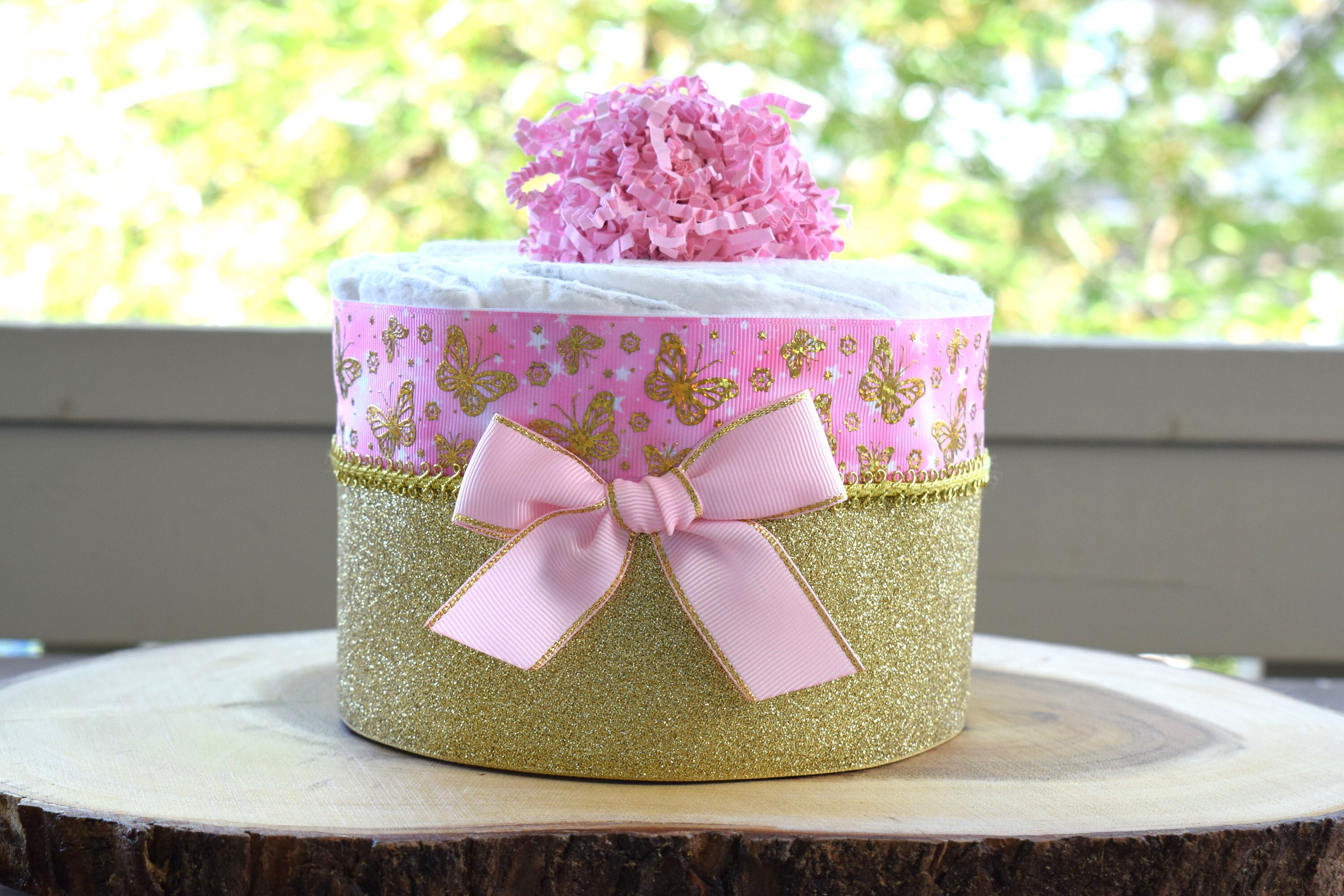 Pink Butterfly Mini Diaper Cake Baby Shower, Baby Shower Centerpieces Decorations, Girls Room Nursery Decor, New Mom Gifts, Baby Shower Gift