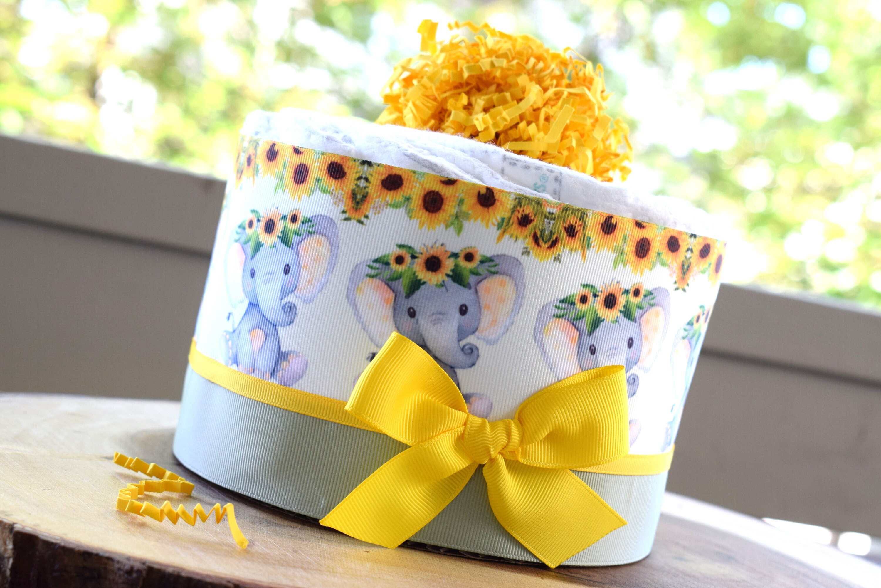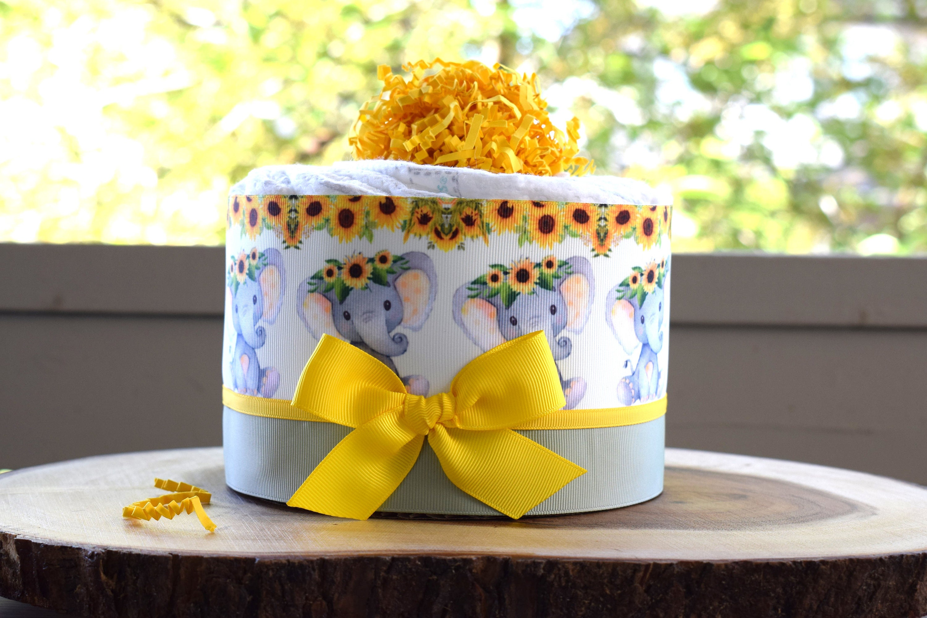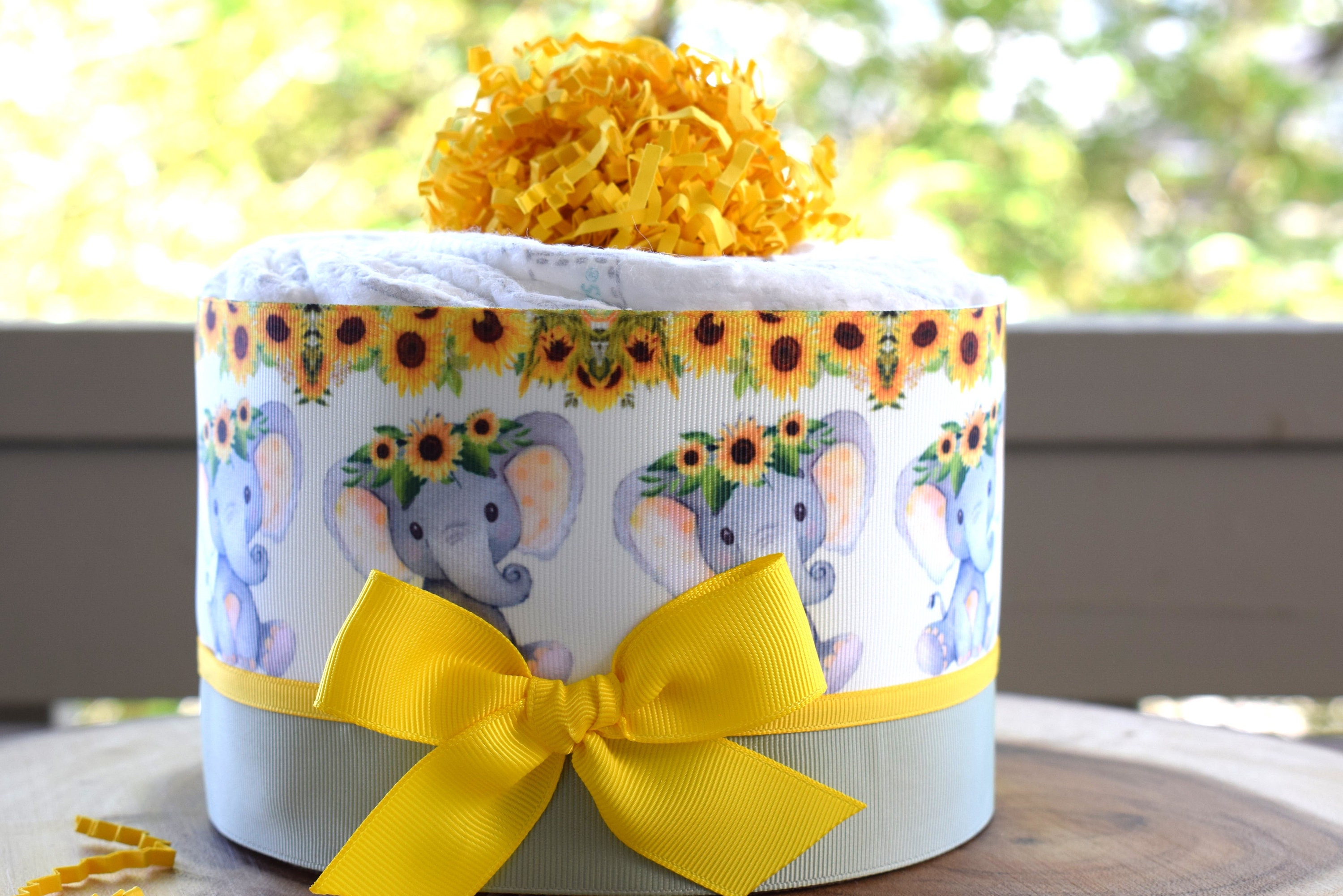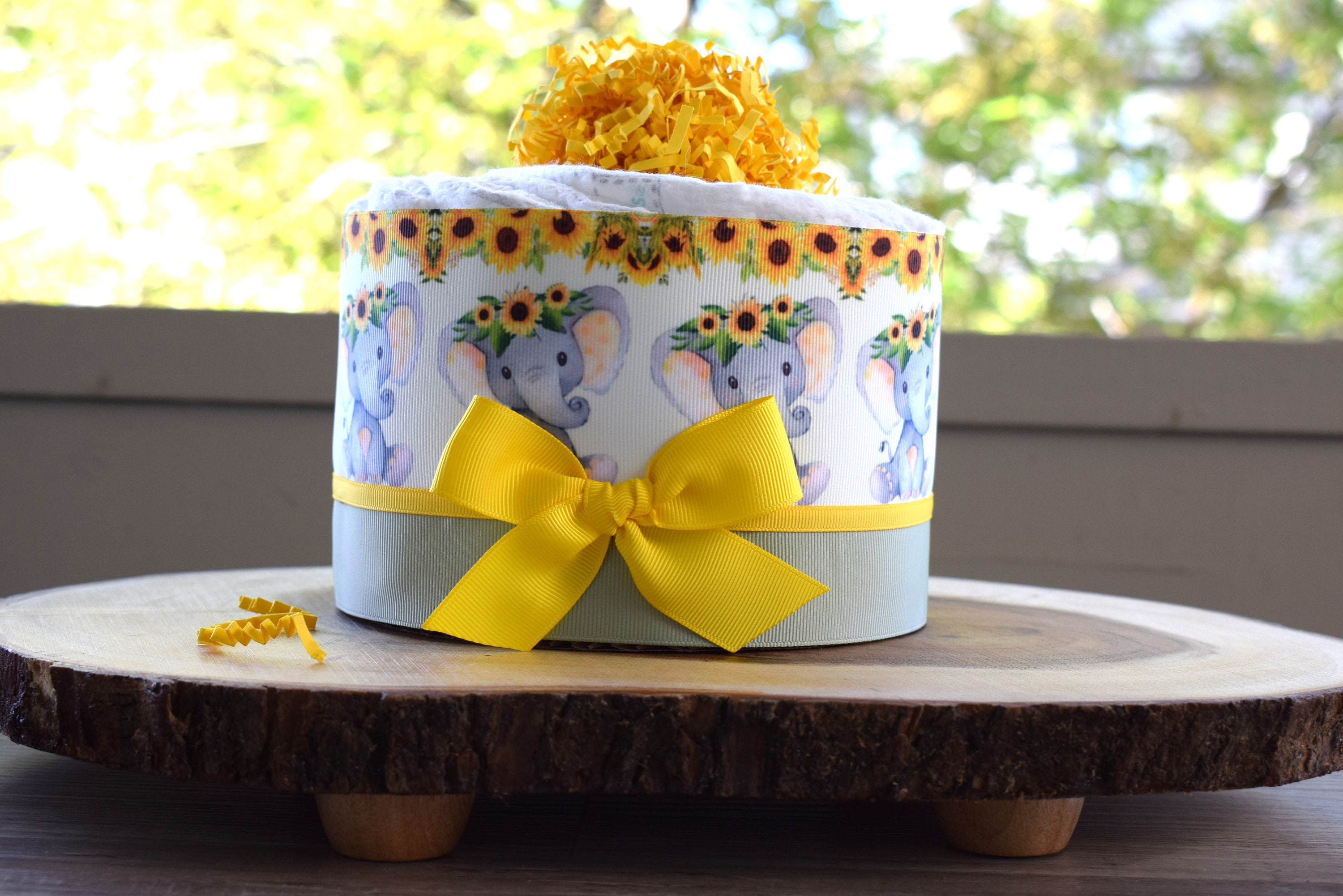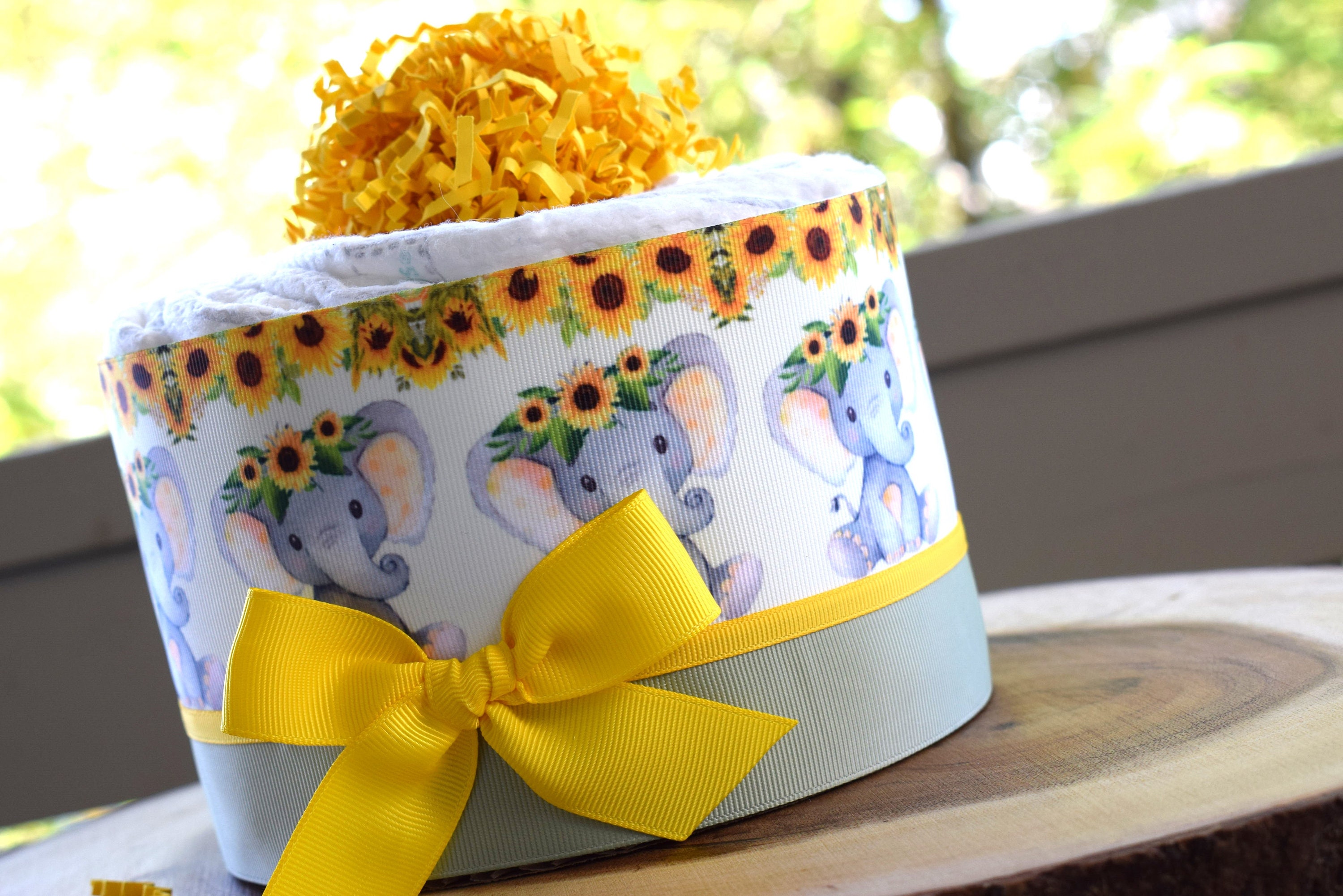 Elephant Sunflower Mini Diaper Cake Baby Shower, Baby Shower Centerpieces Decorations, Girls Room Nursery Decor, New Mom Baby Shower Gift