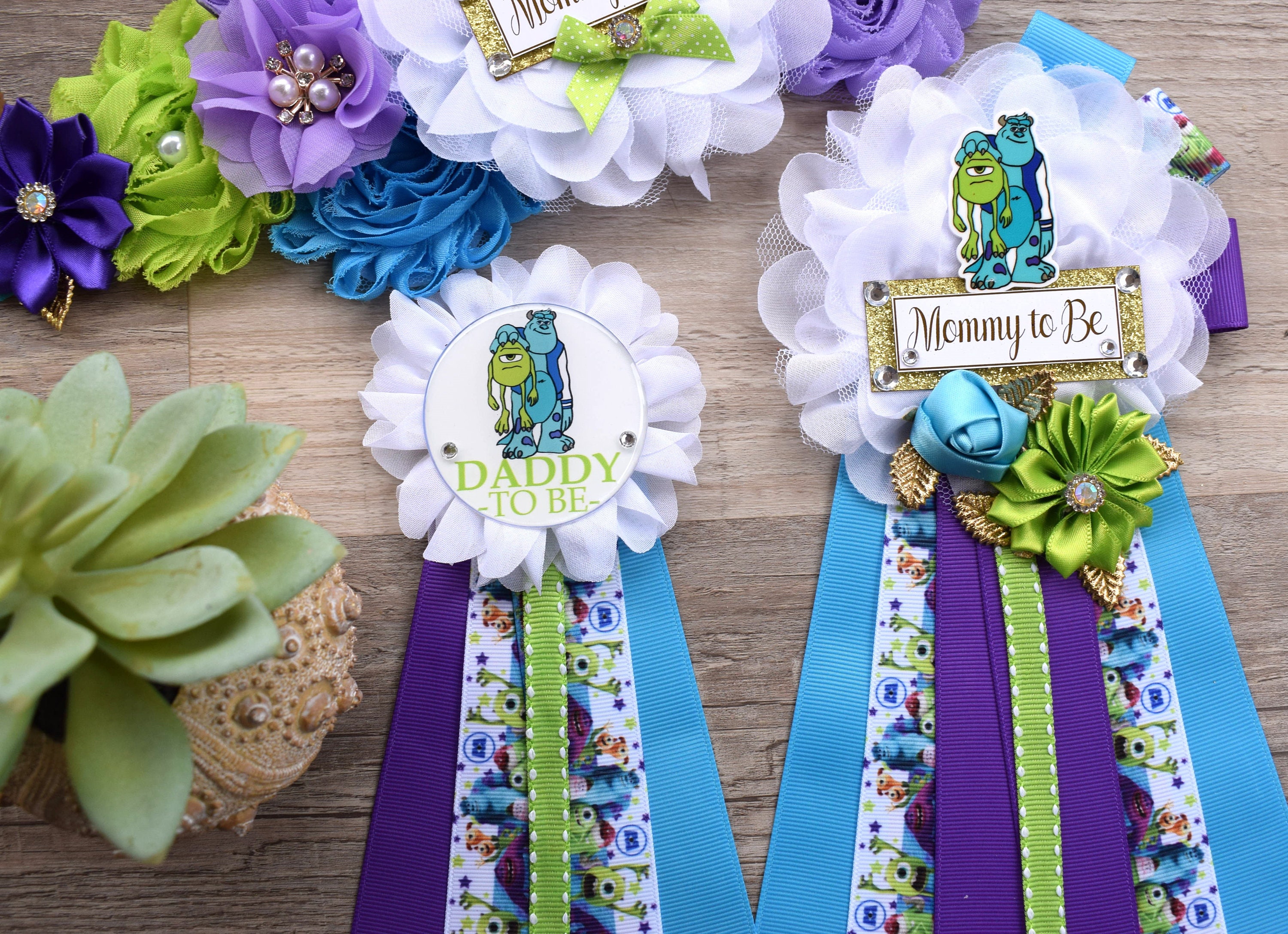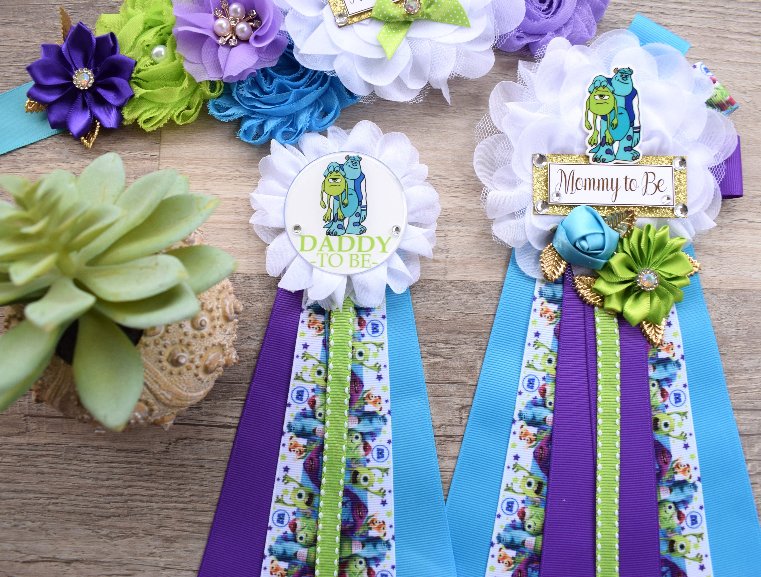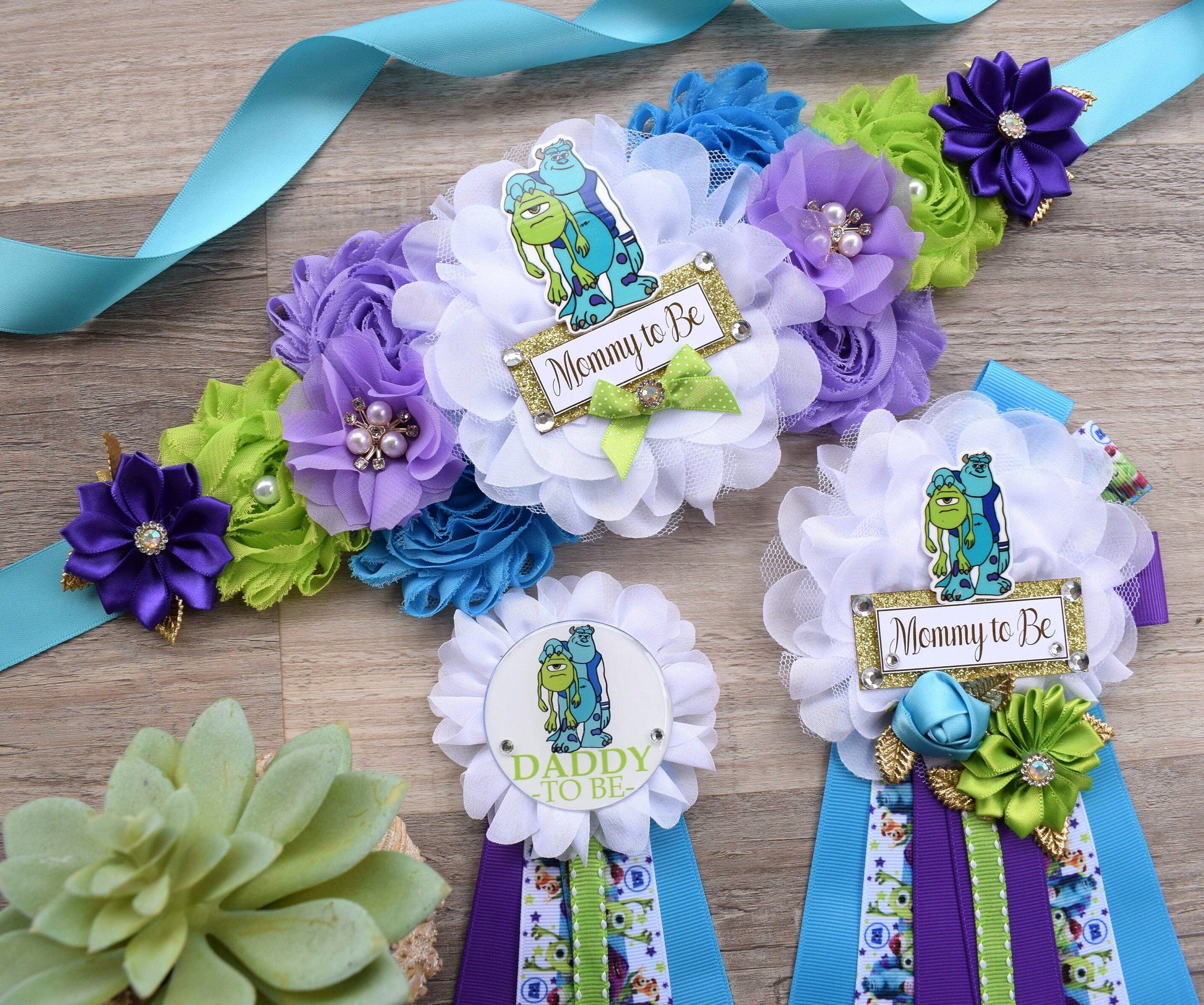 Little Monster Baby Shower, Purple Green Blue Monster Maternity Sash, Mommy To Be Pin Ribbon, Daddy To Be Pin, Baby Shower Gift, Custom
