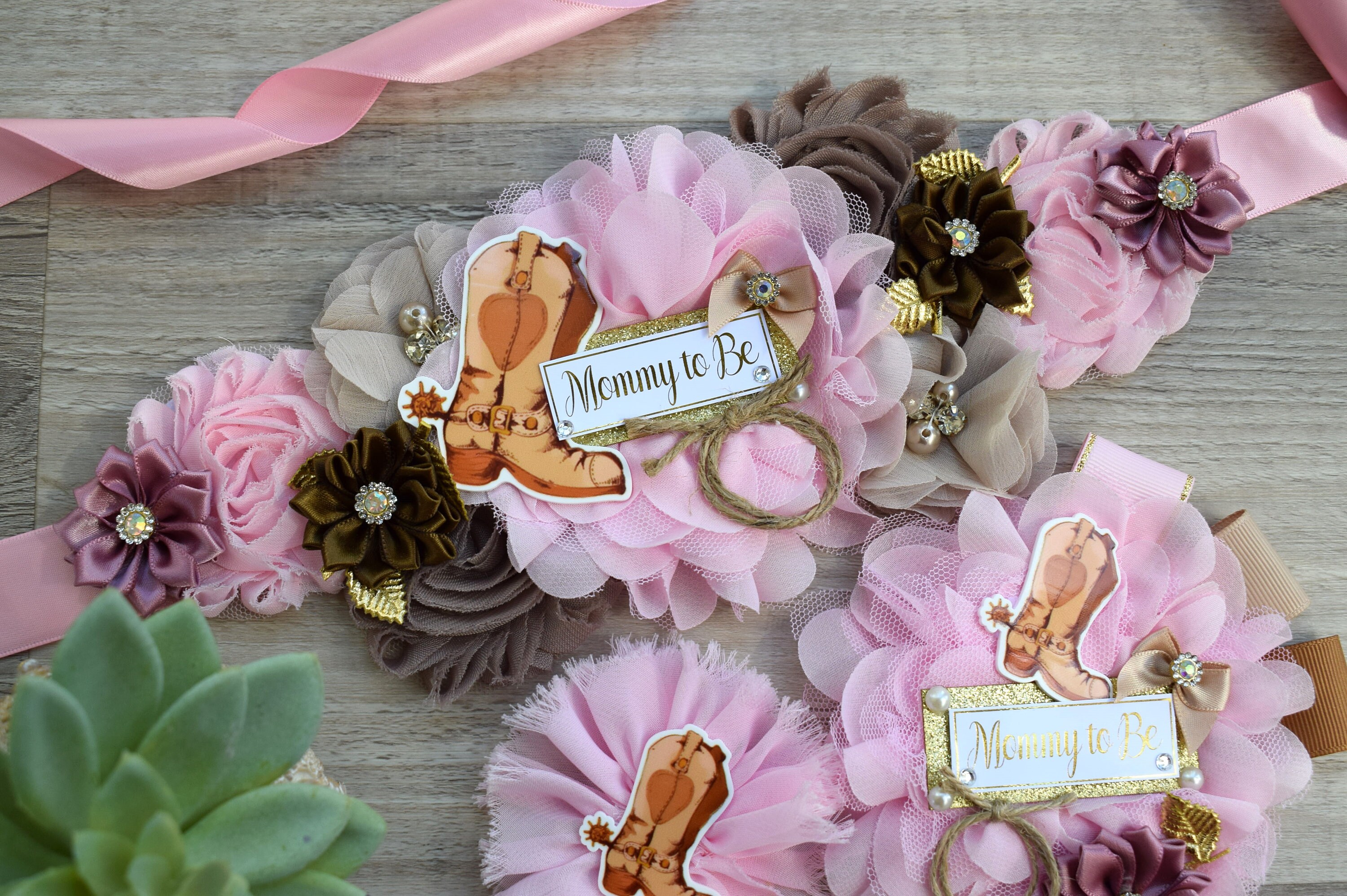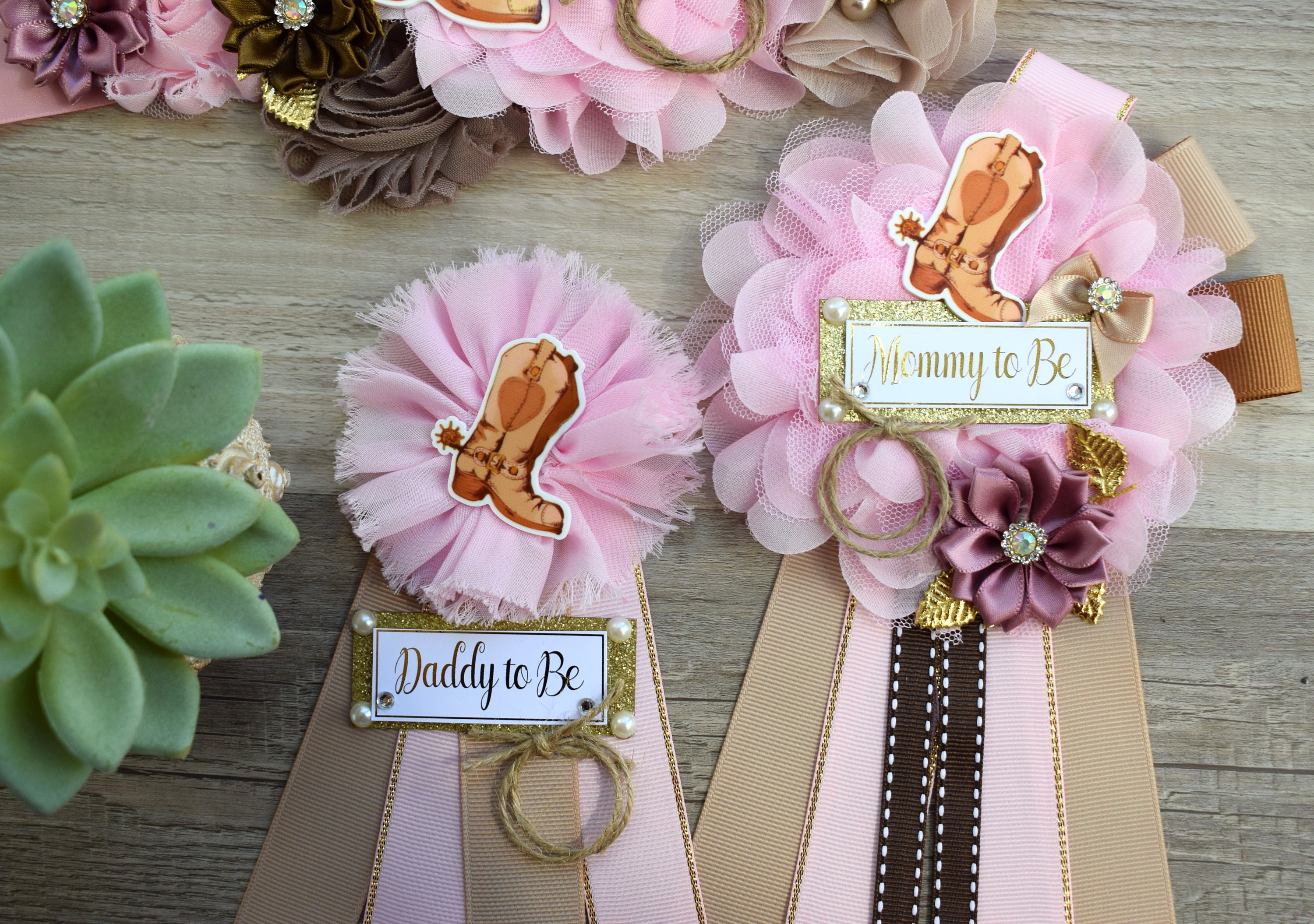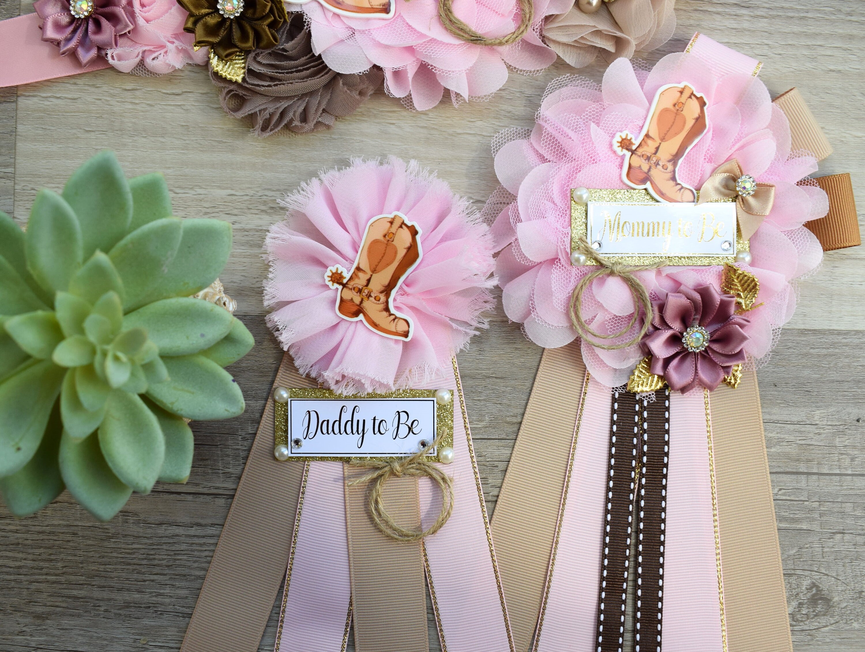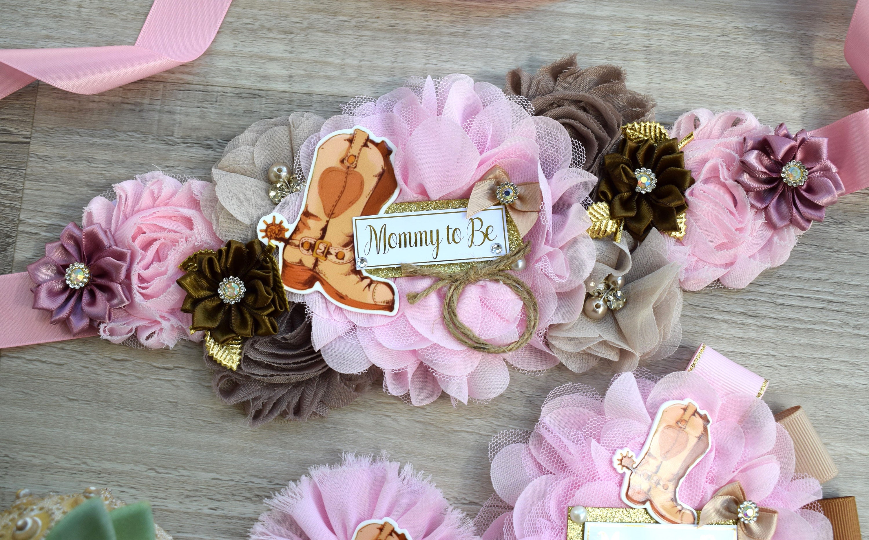 Pink Cowboy Baby Shower, Pink Brown Cowboy Maternity Sash, Gender Reveal Cowboy Mommy To Be Ribbon, Daddy To Be Pin, Boot Hat Corsage Pin
