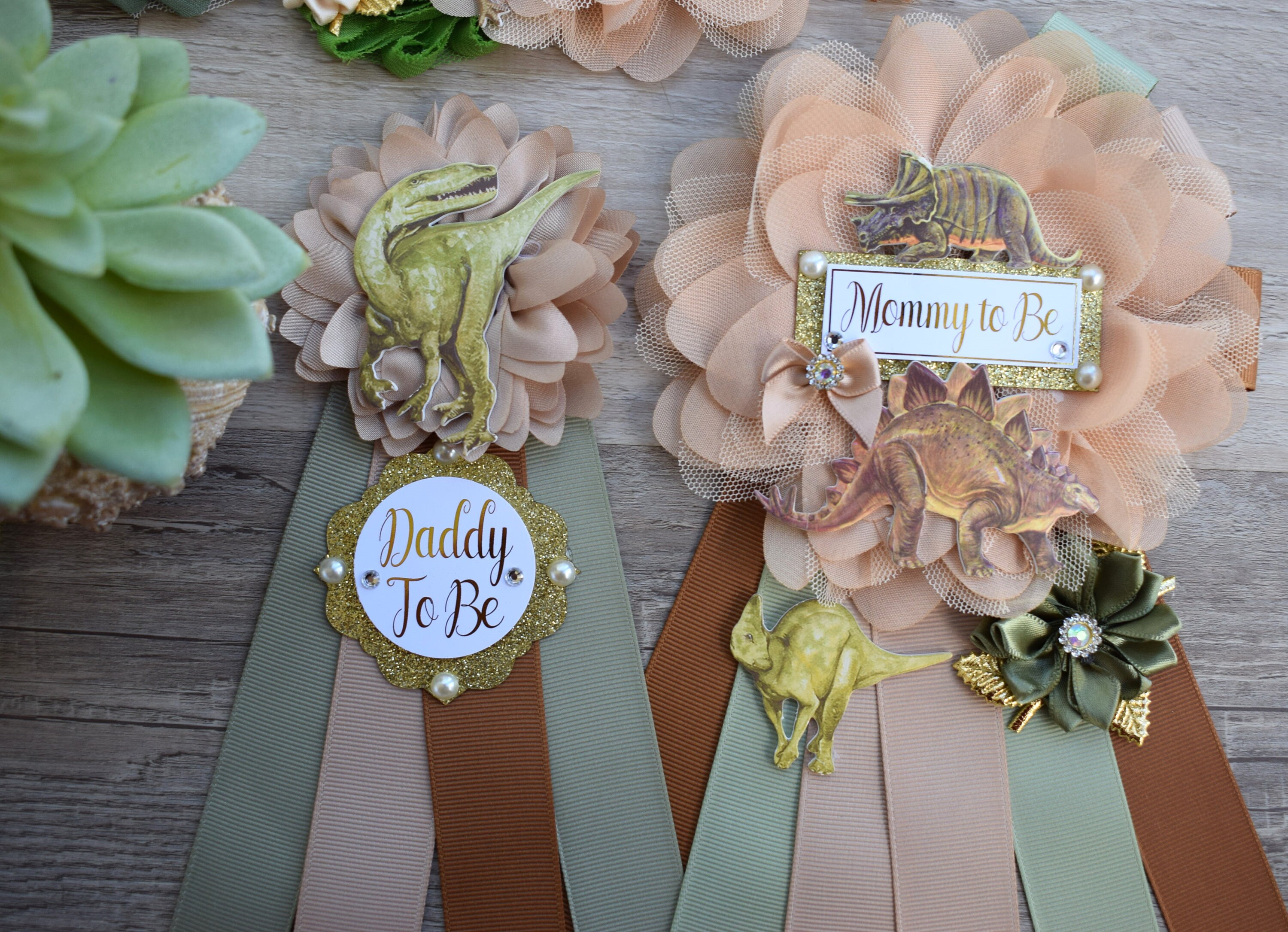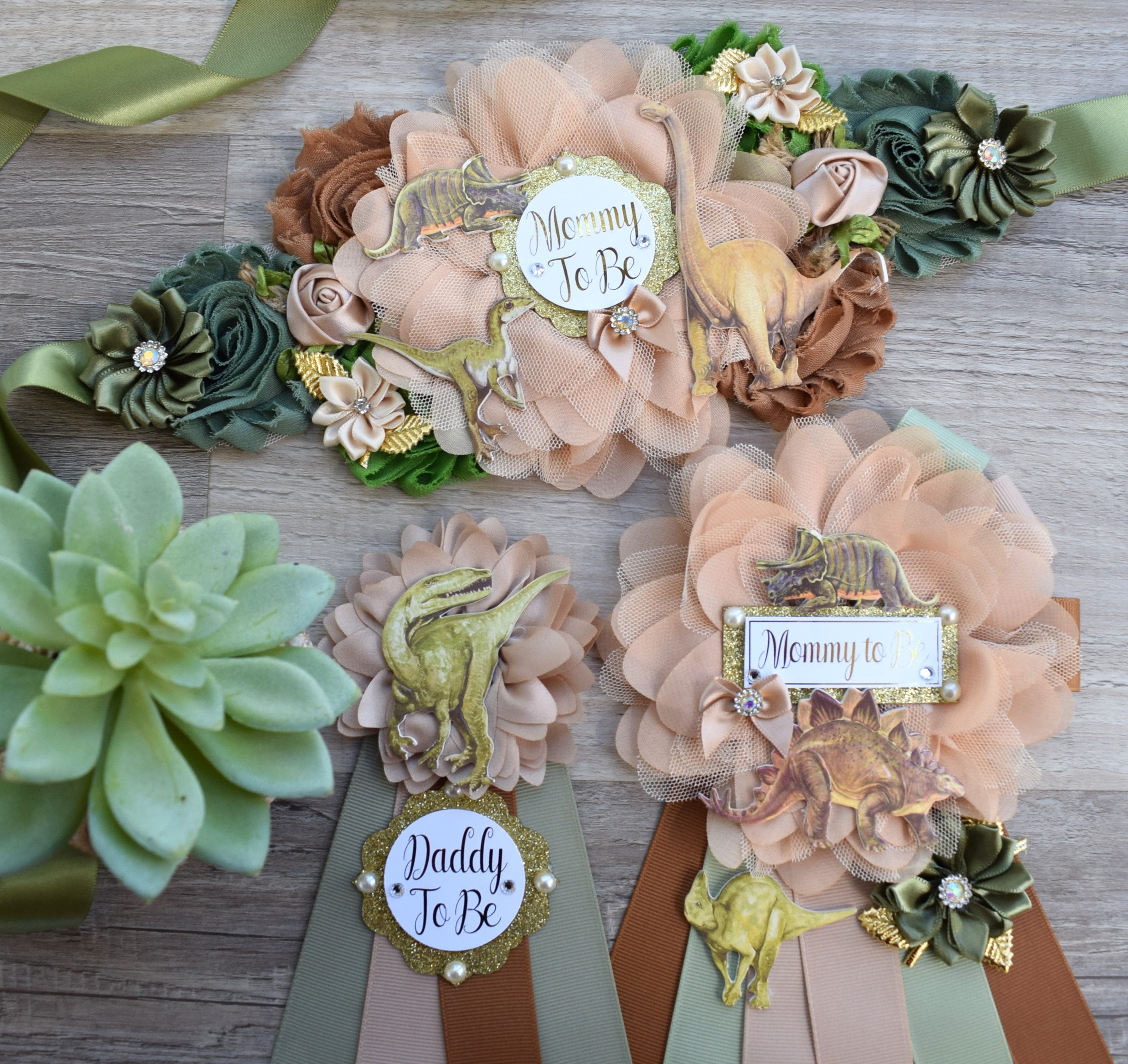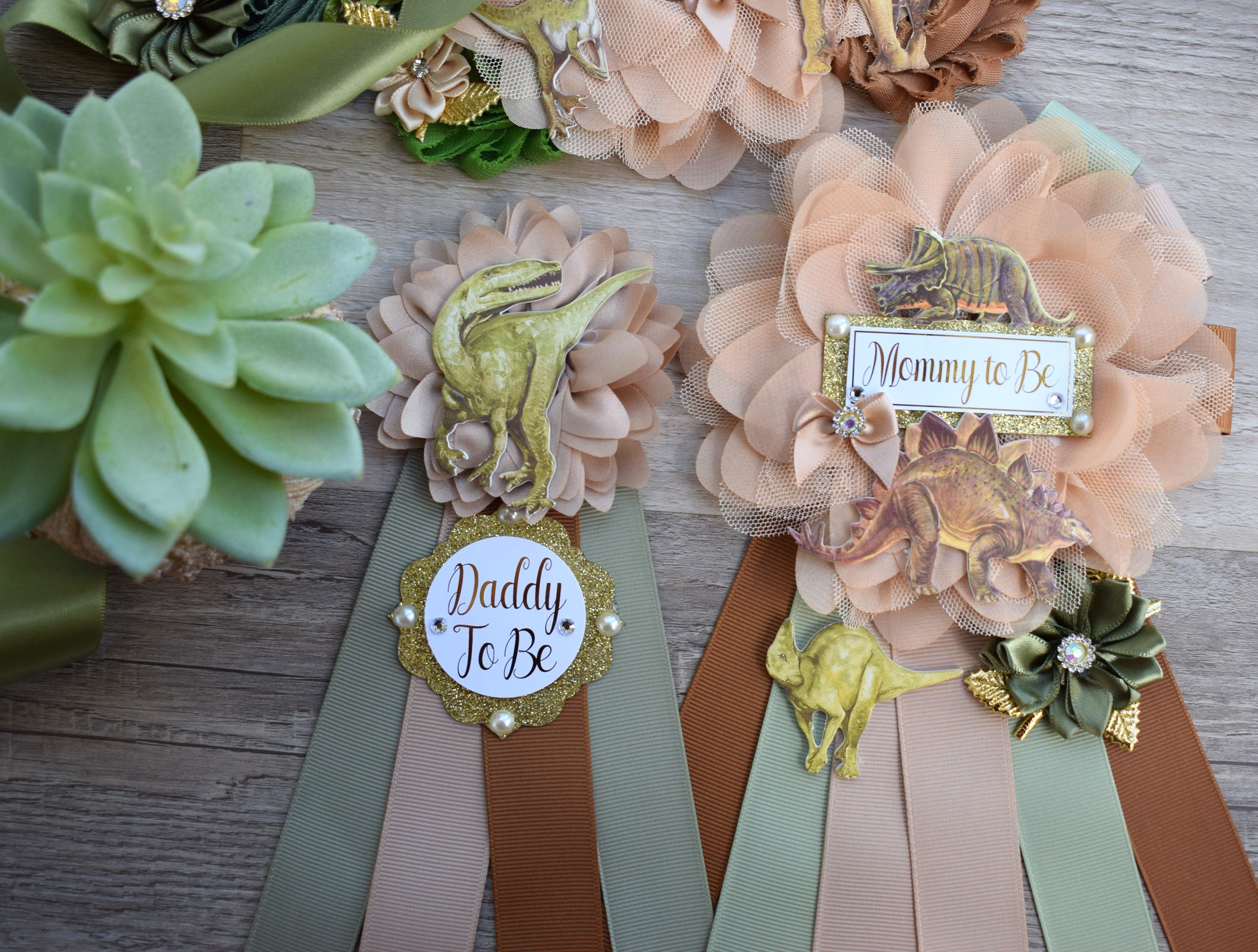 Dinosaur Baby Shower, Dinosaur Corsage Pin Set, Dinosaur Mommy to Be, Dinosaur Daddy to Be, Mamasaurus, Dinosaur Orange Green Blue, Custom