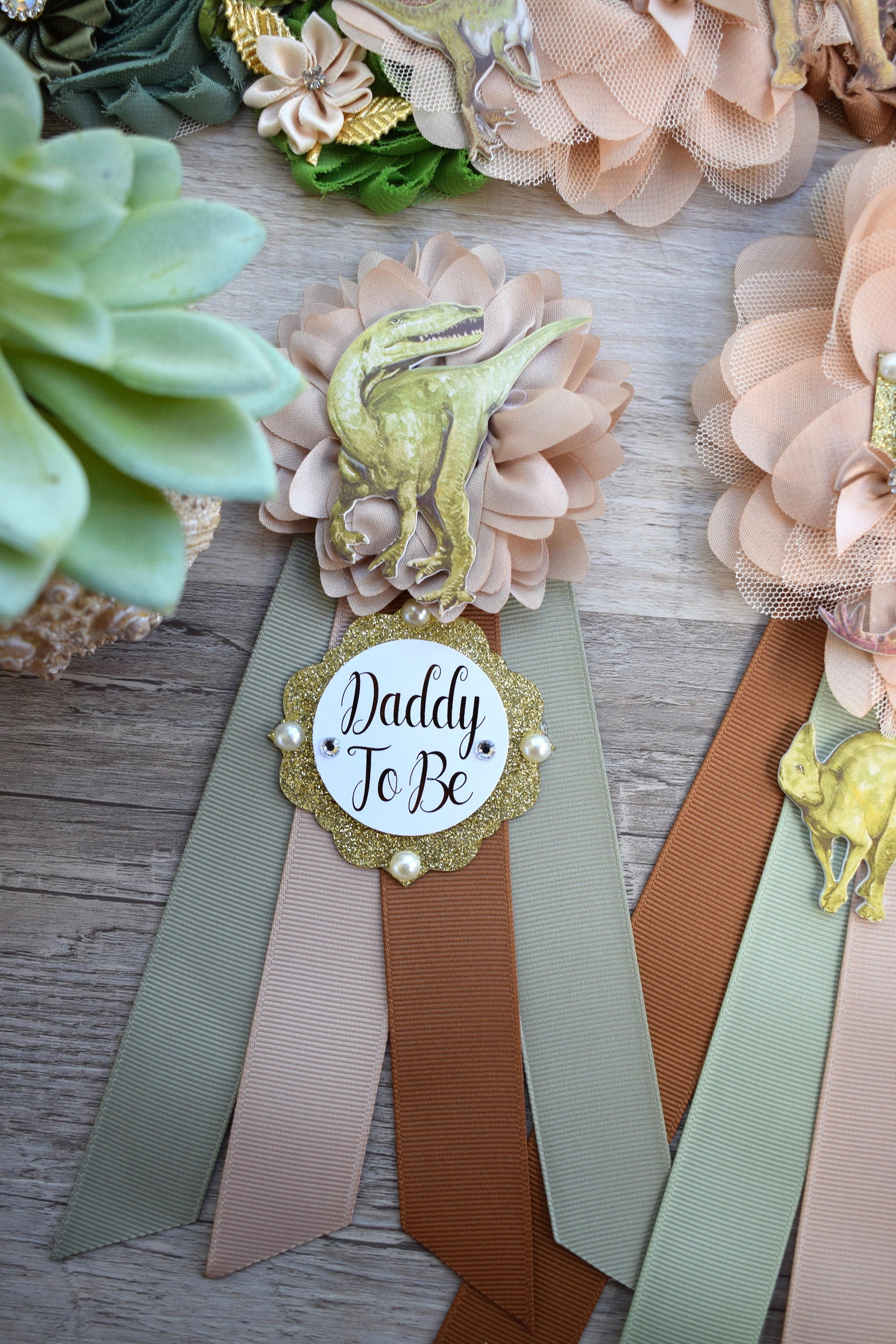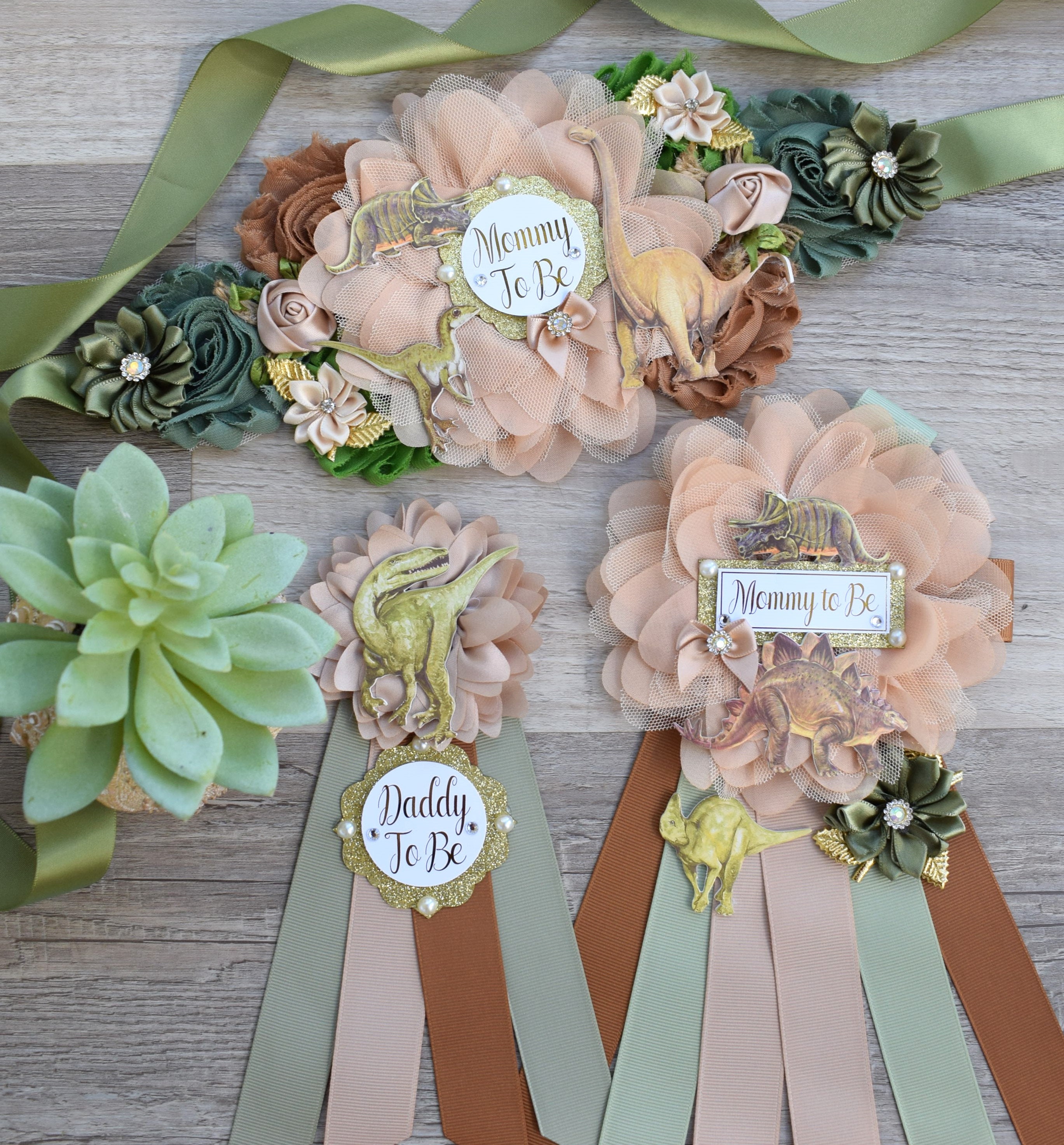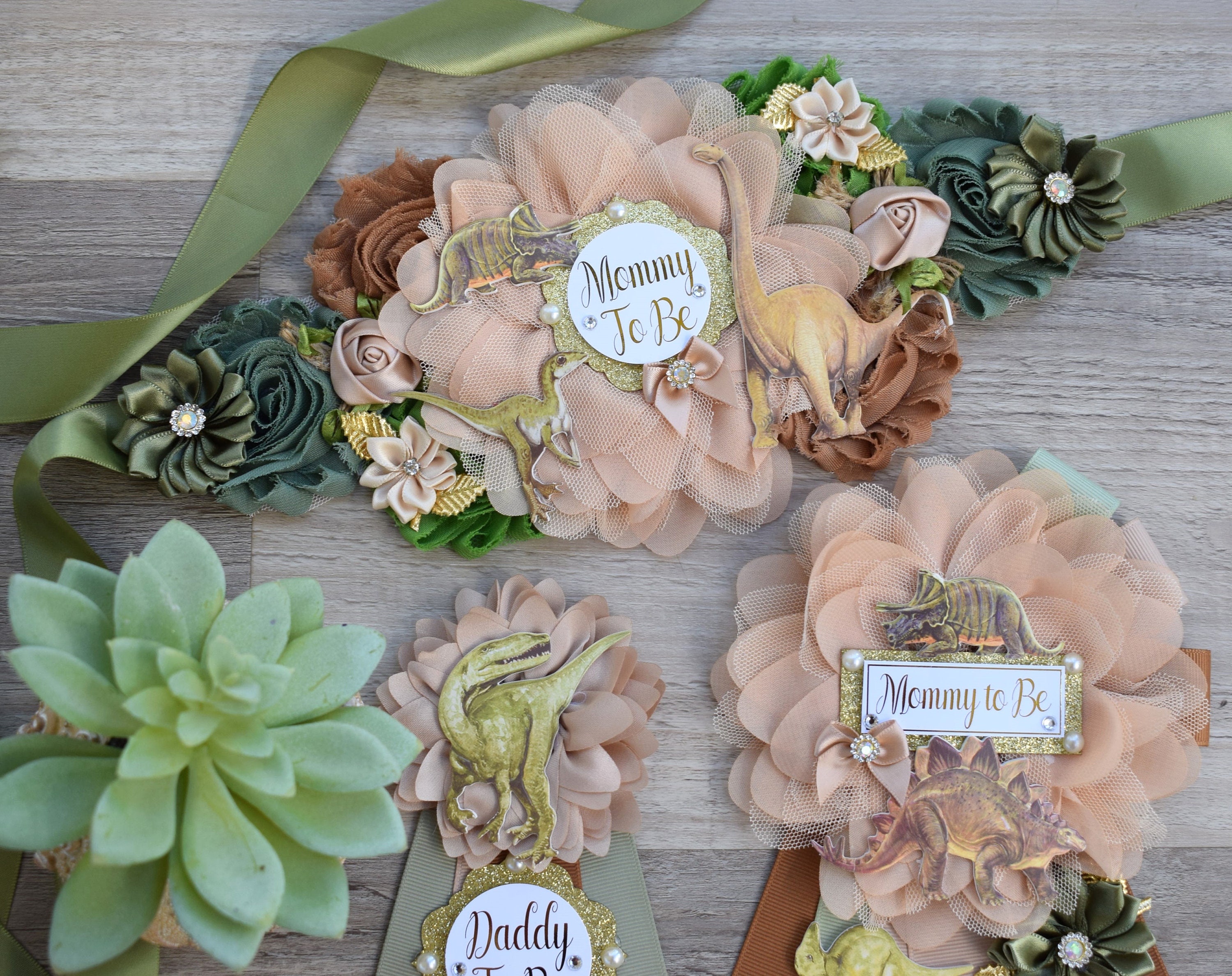 Dinosaur Baby Shower, Dinosaur Corsage Pin Set, Dinosaur Mommy to Be, Dinosaur Daddy to Be, Mamasaurus, Dinosaur Orange Green Blue, Custom