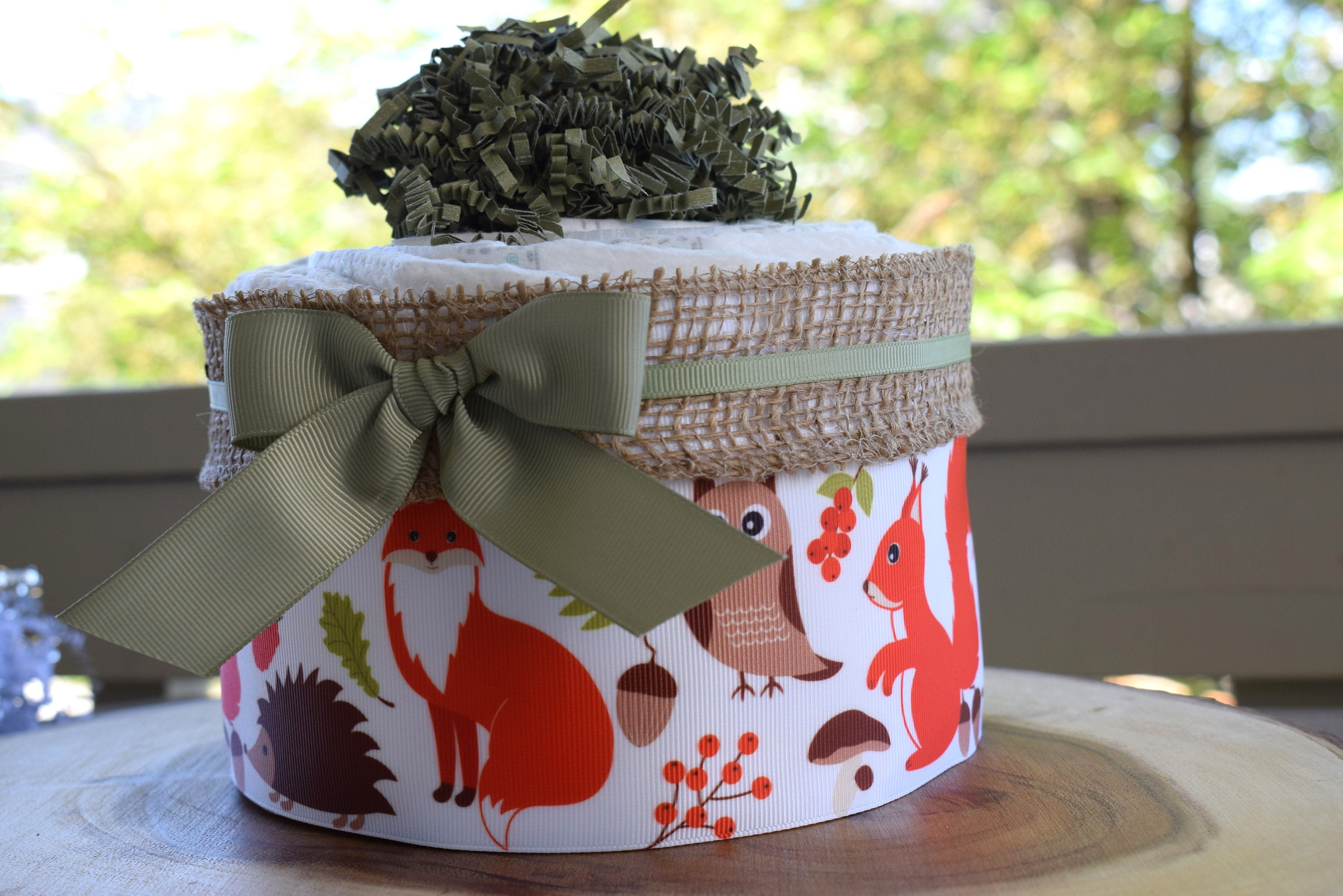 Woodland Mini Diaper Cake Baby Shower, Baby Shower Centerpieces Decorations, Girls Room Nursery Decor, New Mom Gifts, Baby Shower Gift