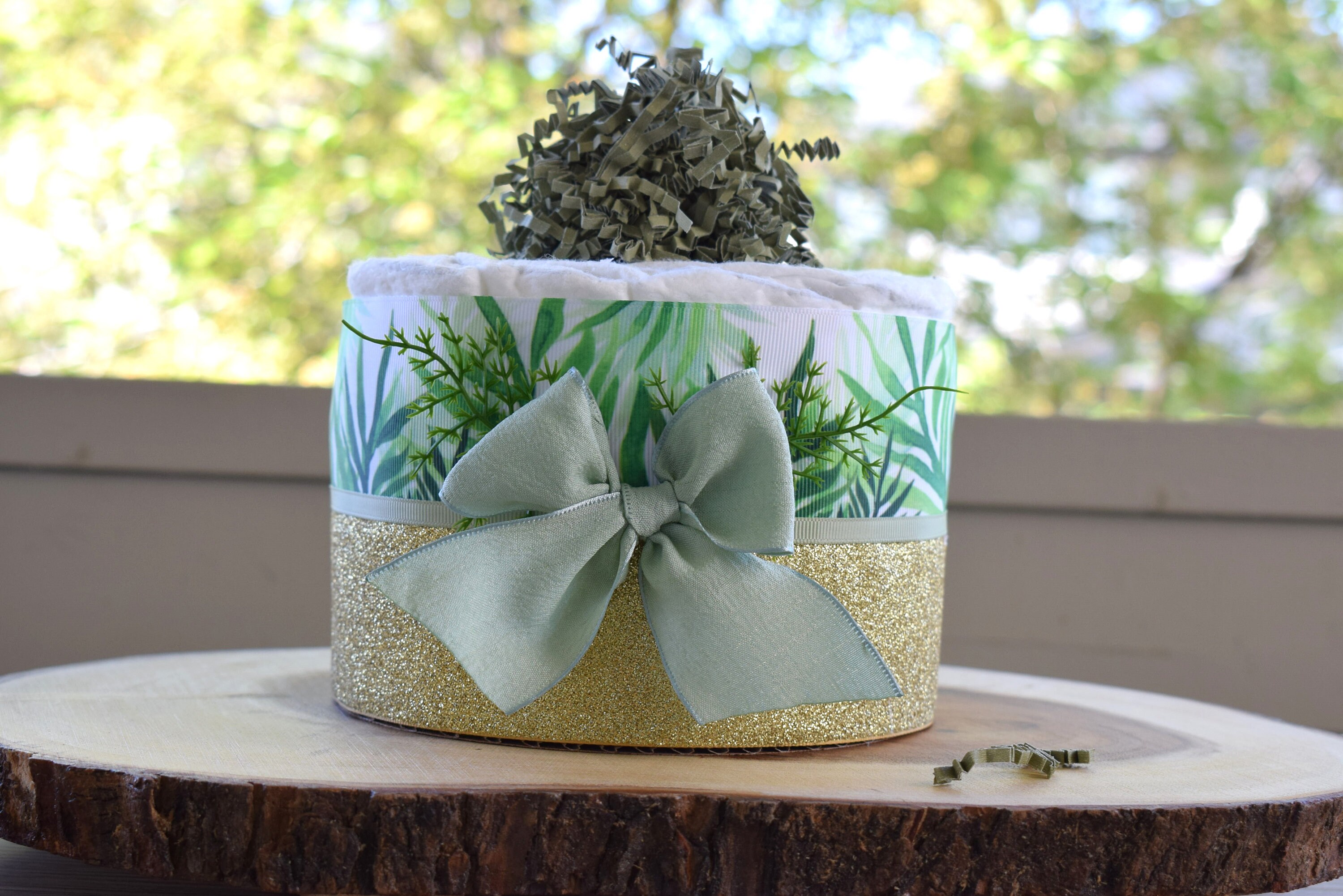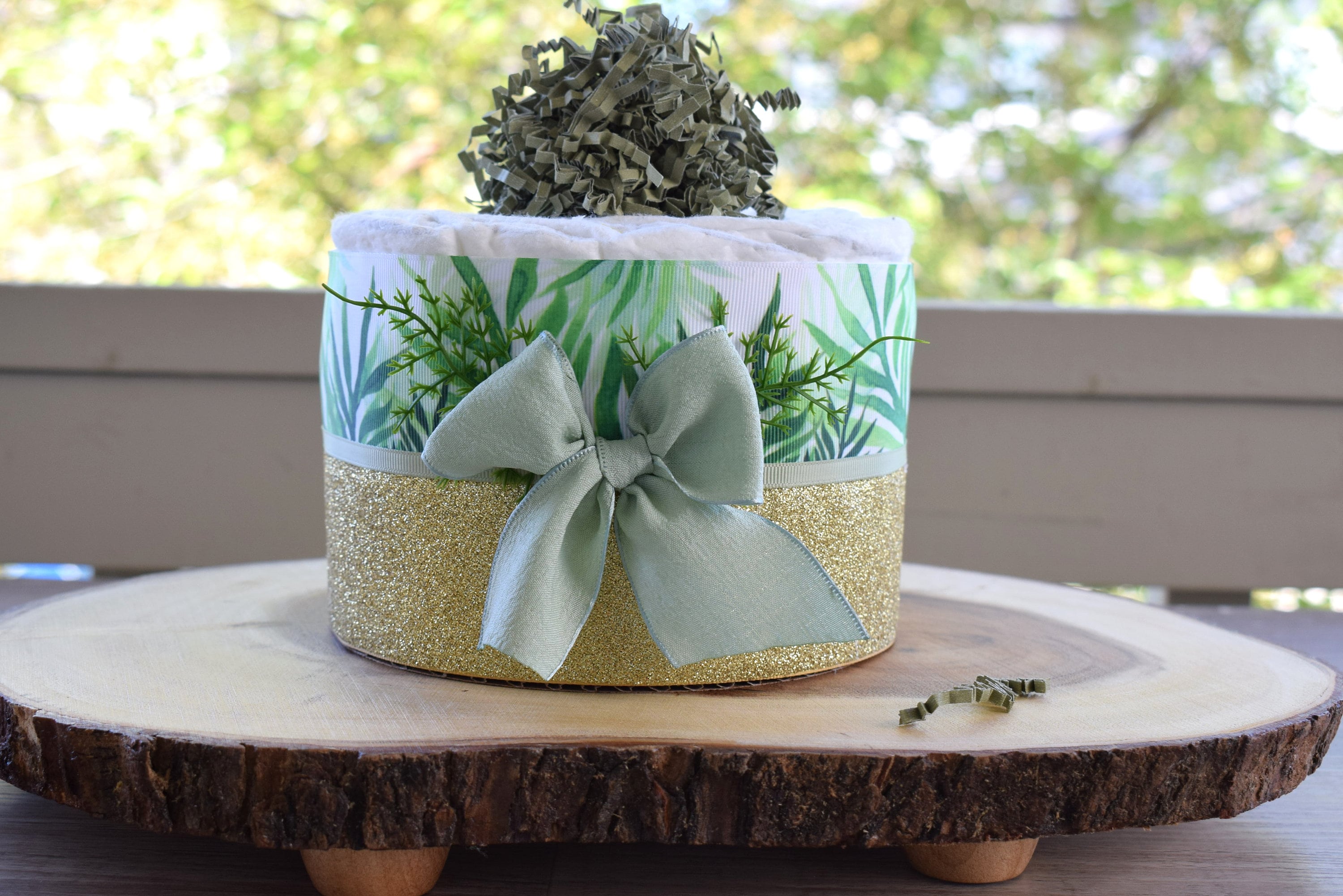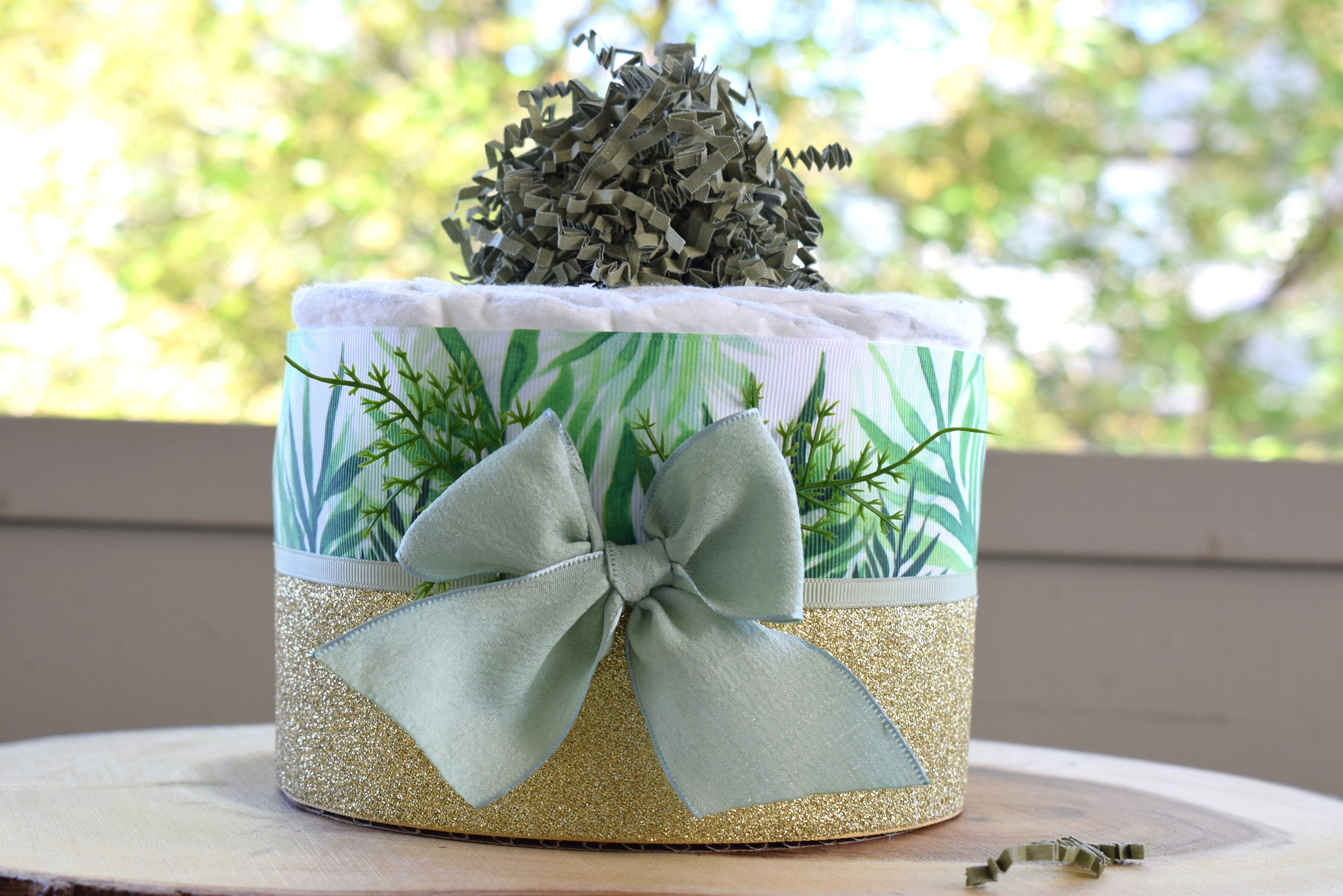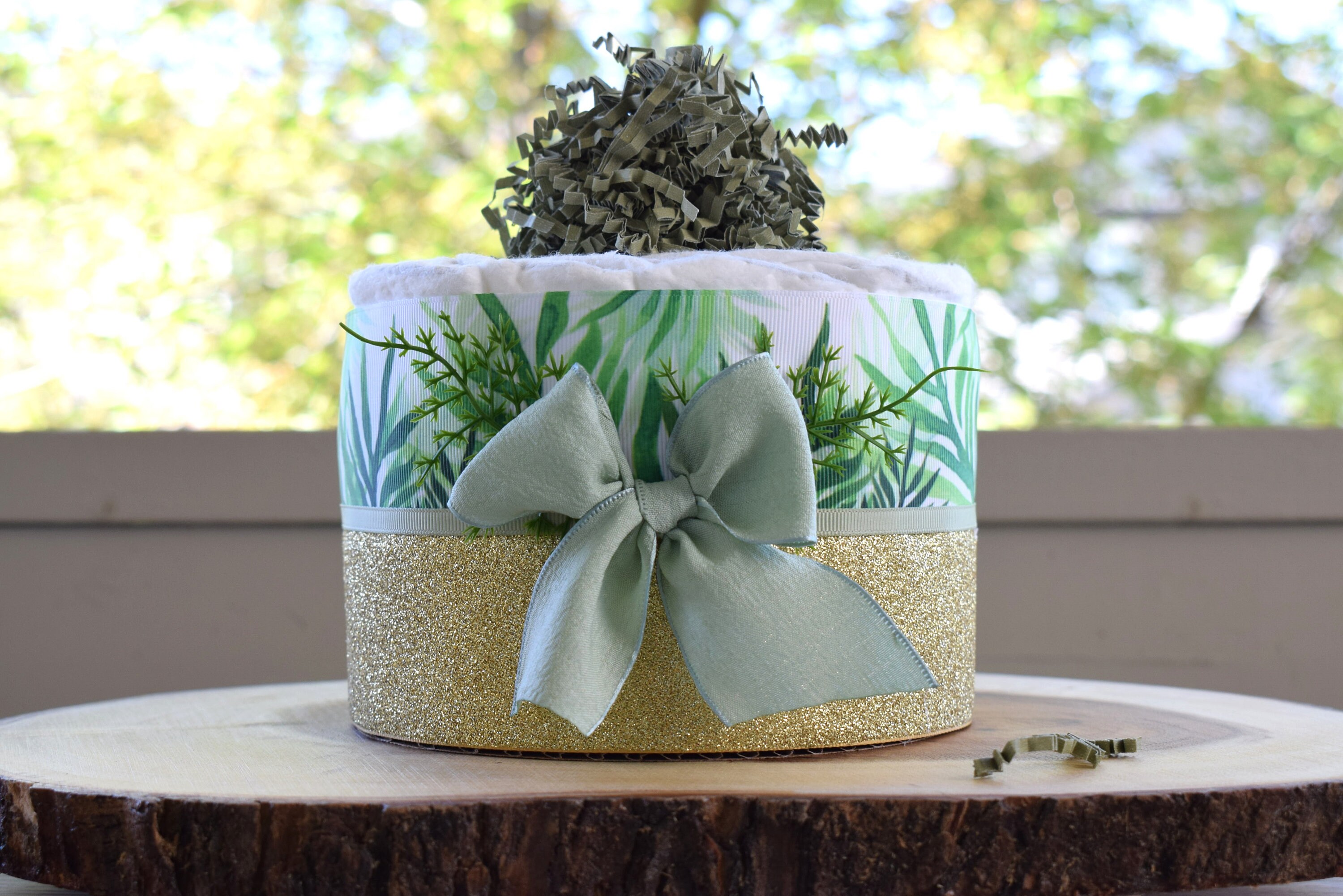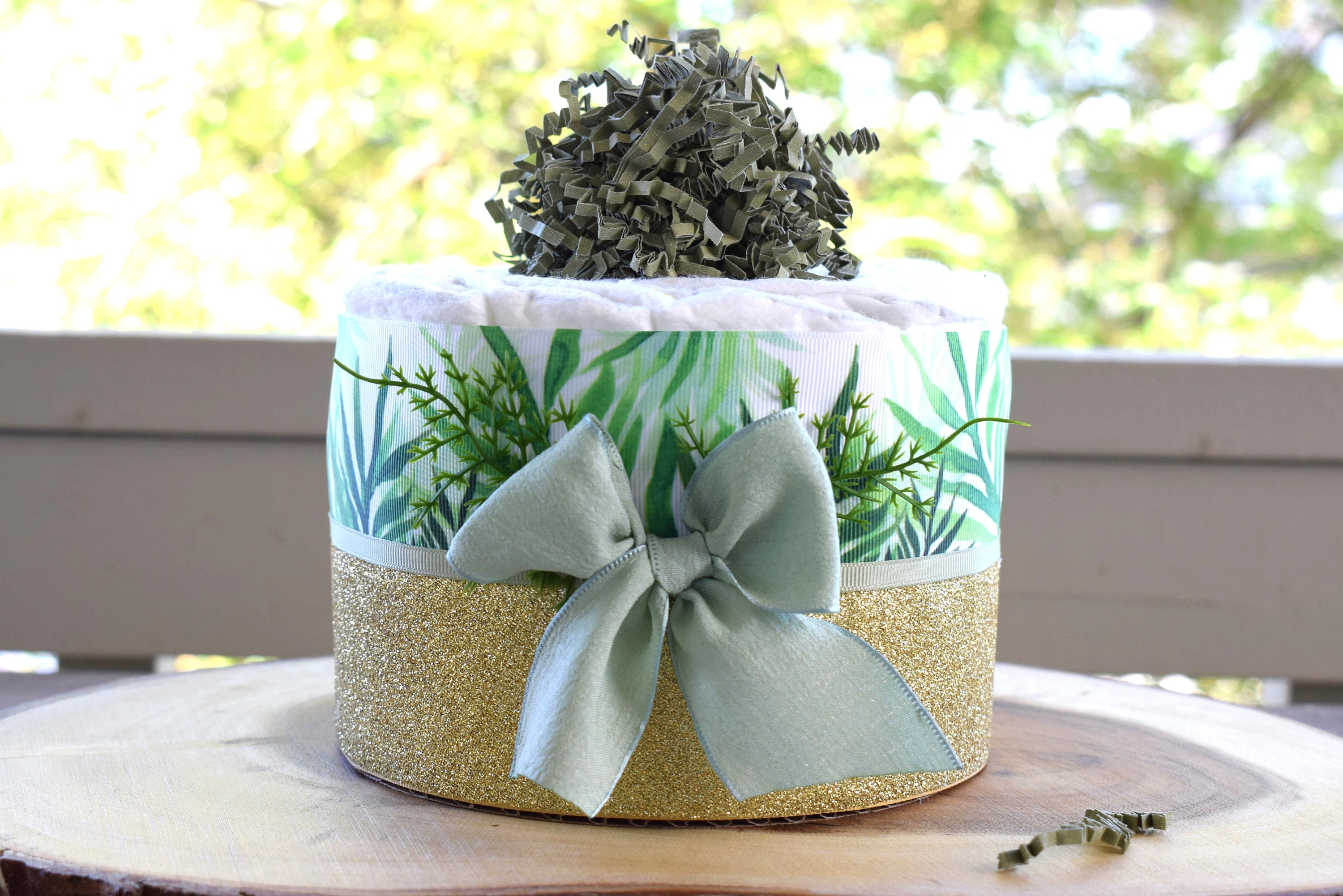 Greenery Mini Diaper Cake Baby Shower, Green Baby Shower Centerpieces Decorations, Girls Room Nursery Decor, New Mom Gifts, Baby Shower Gift