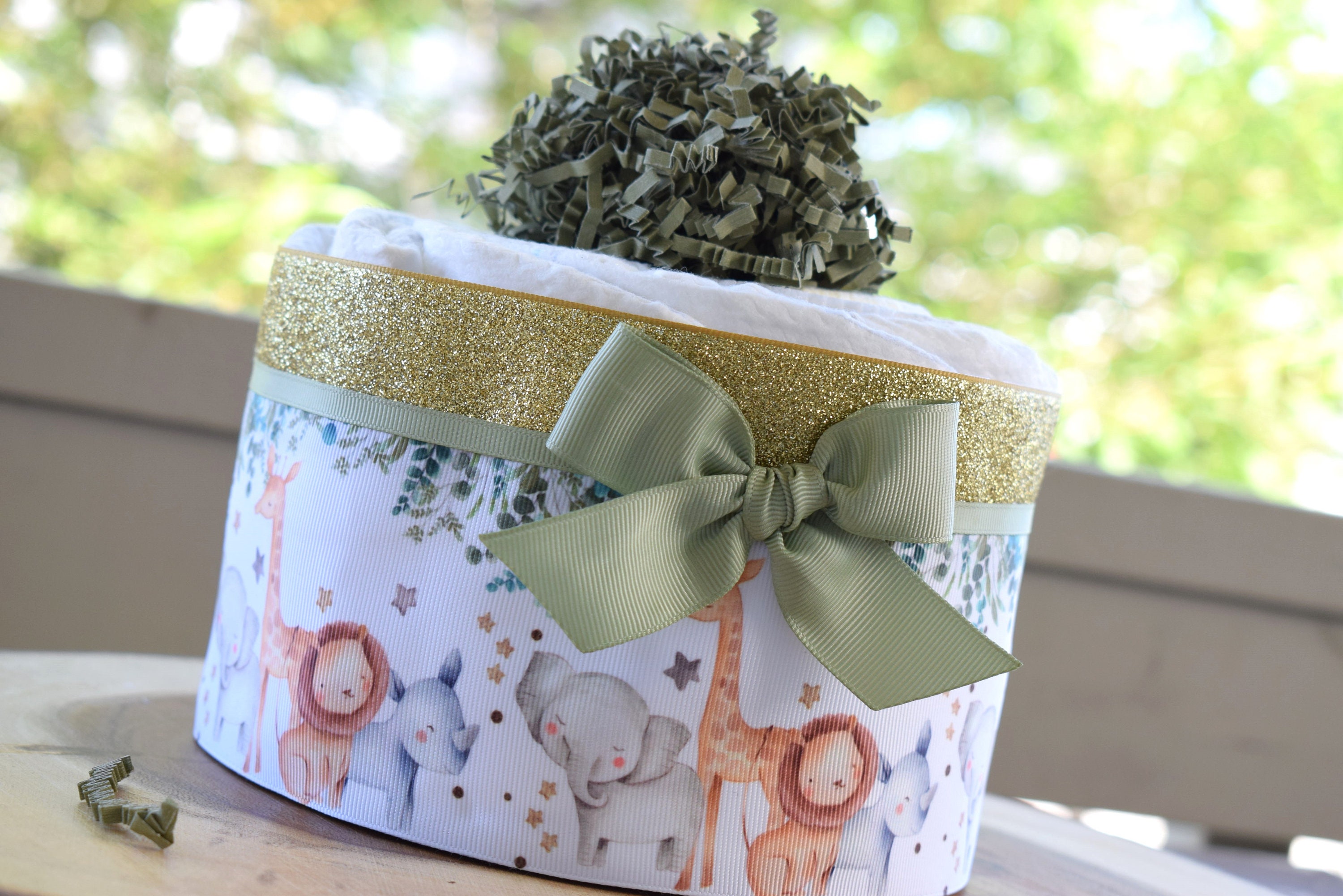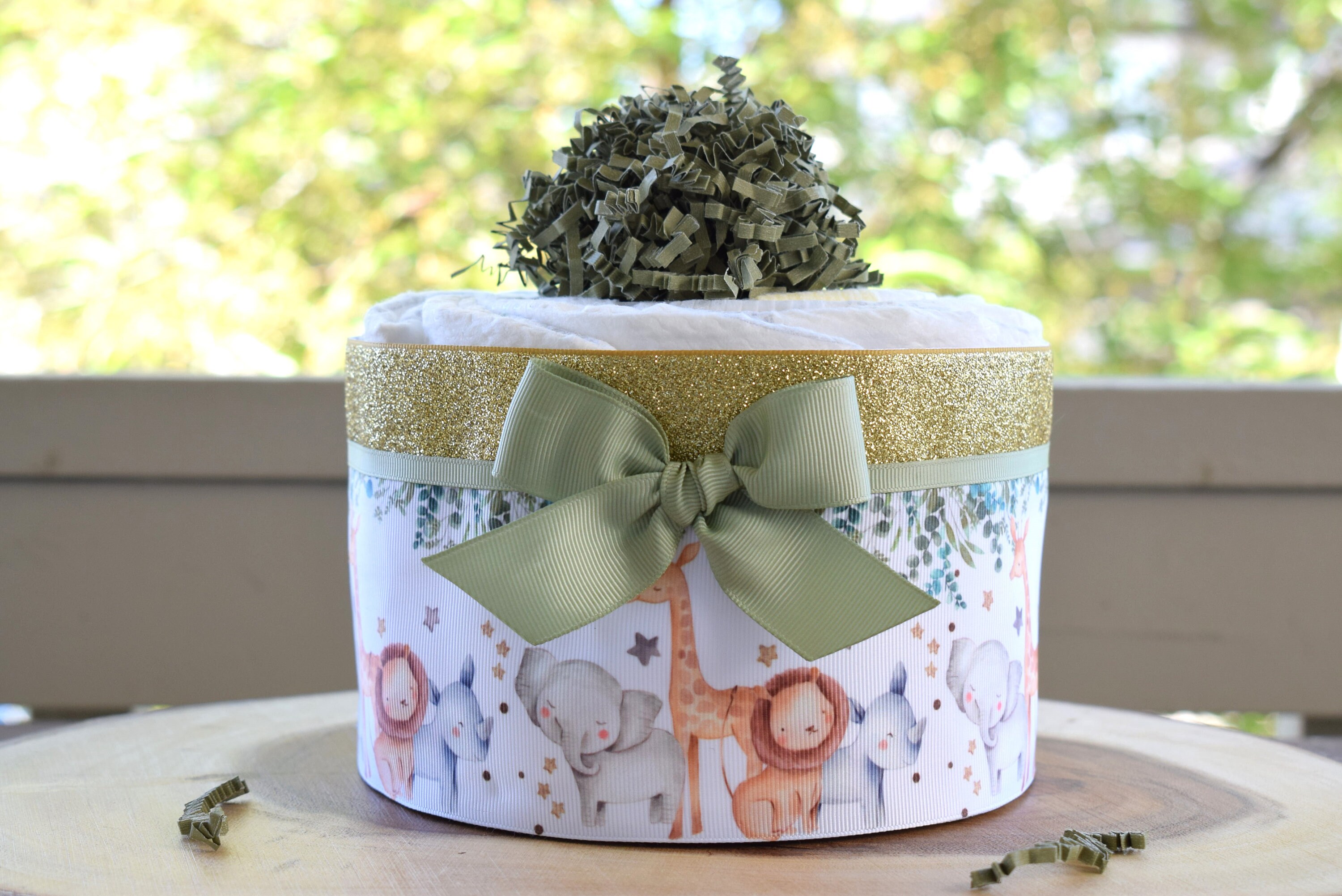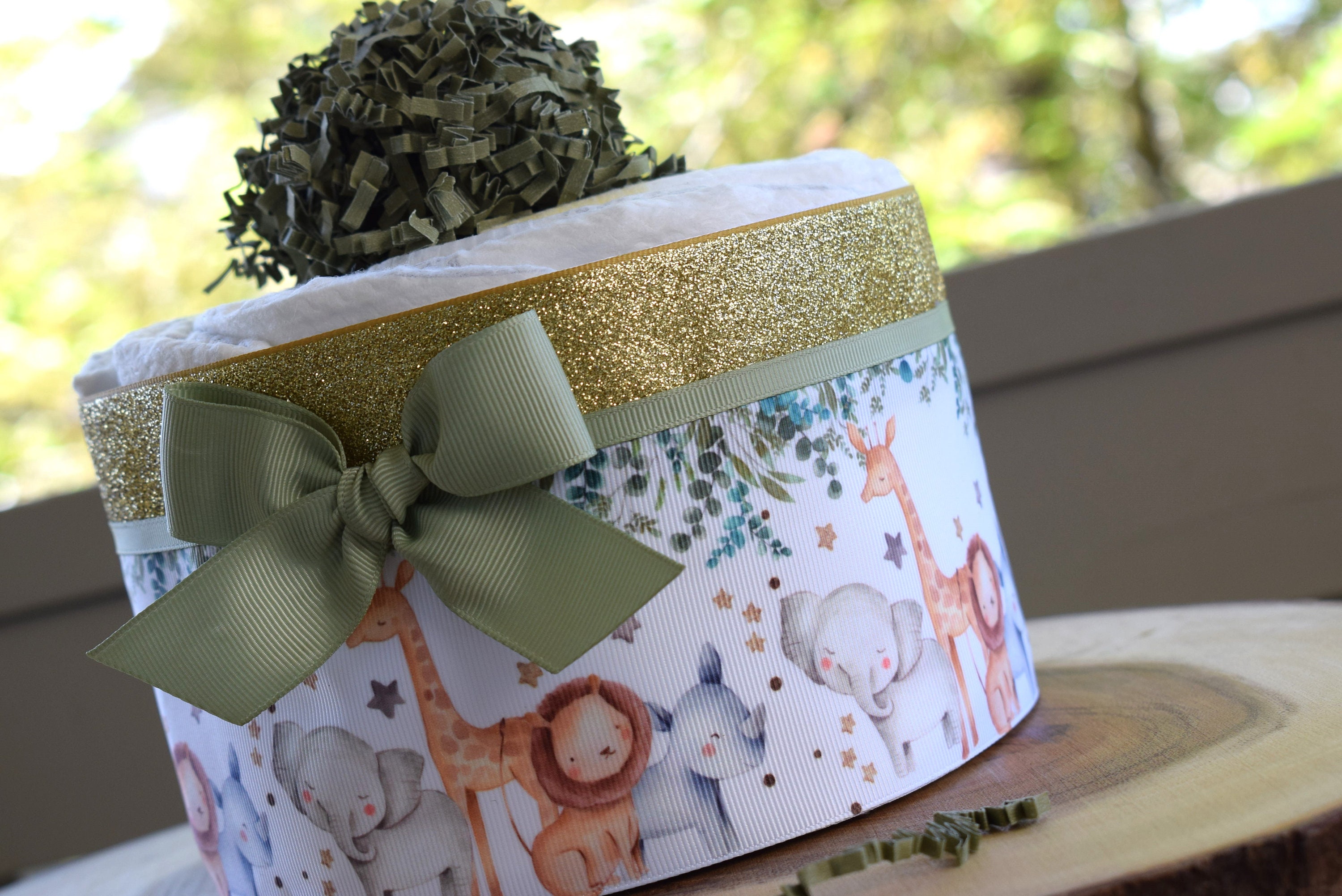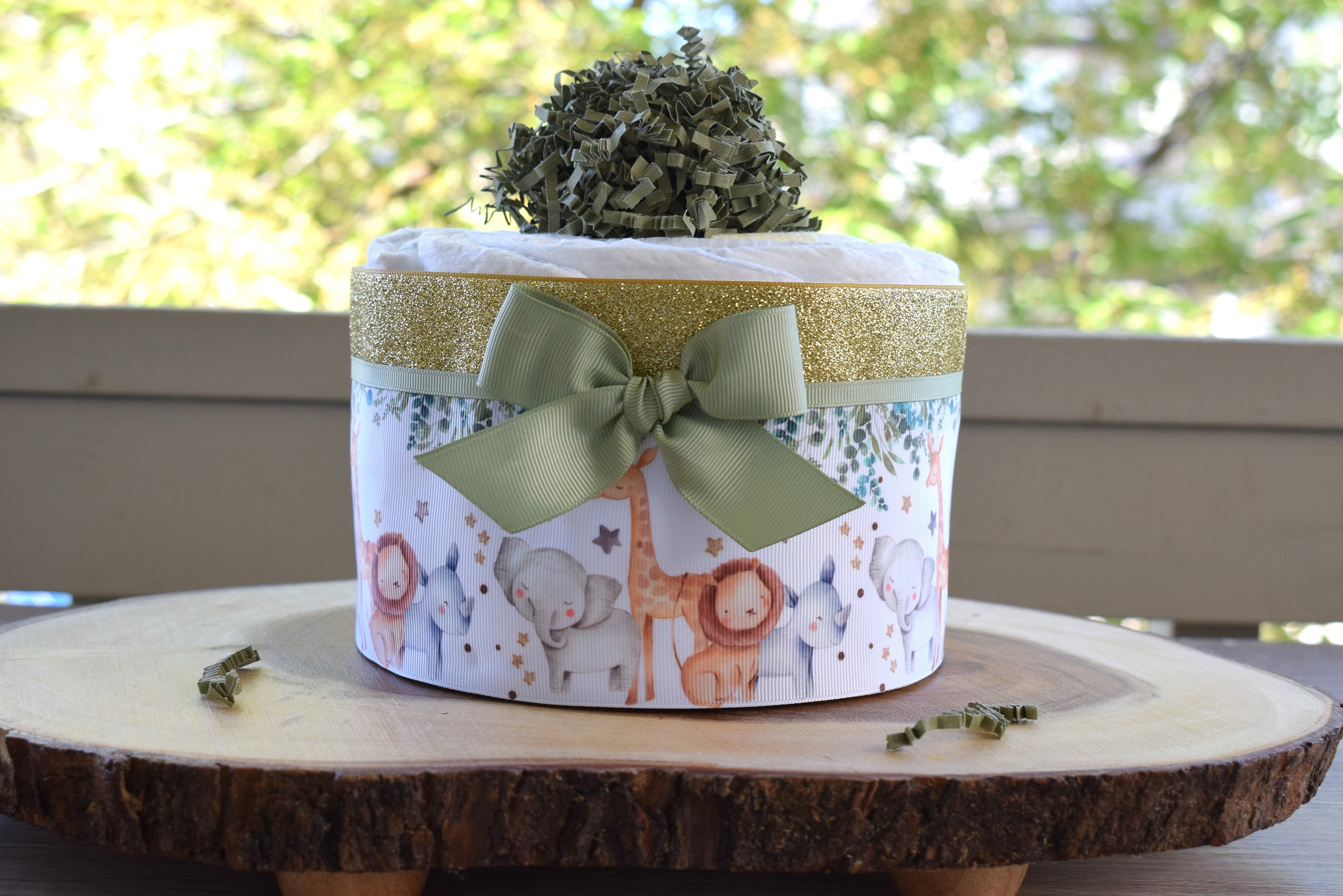 Animal Safari Mini Diaper Cake Baby Shower, Baby Shower Centerpieces Decorations, Girls Room Nursery Decor, New Mom Gifts, Baby Shower Gift