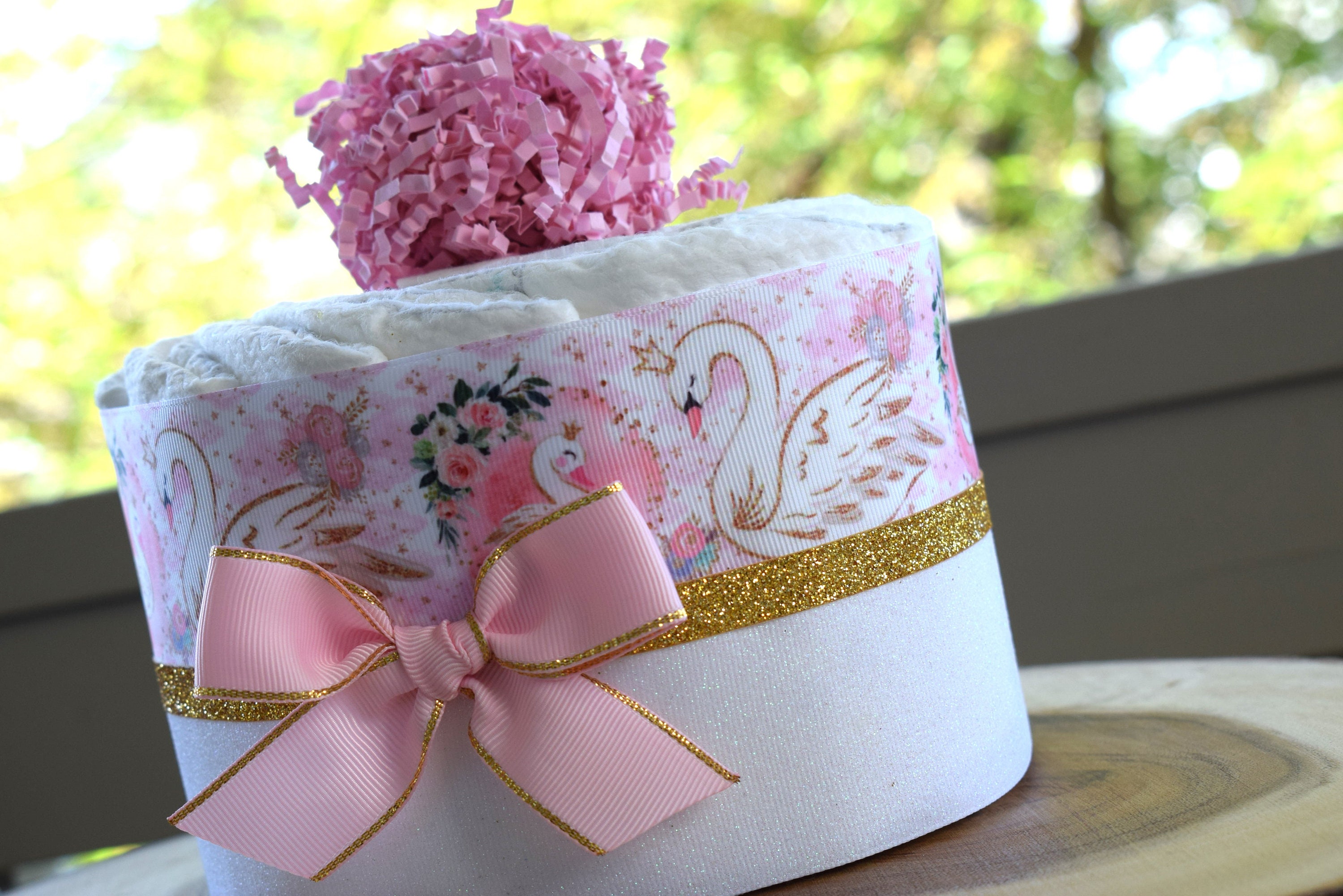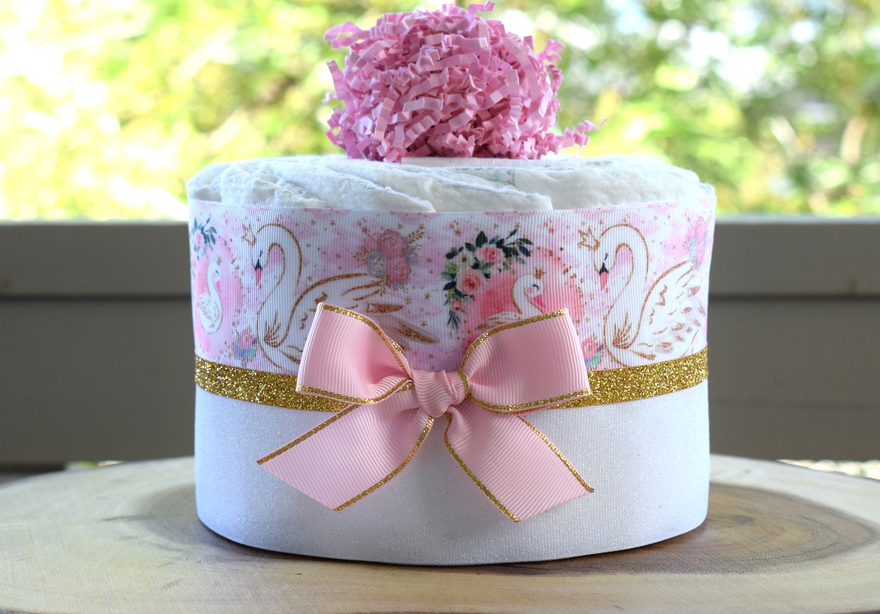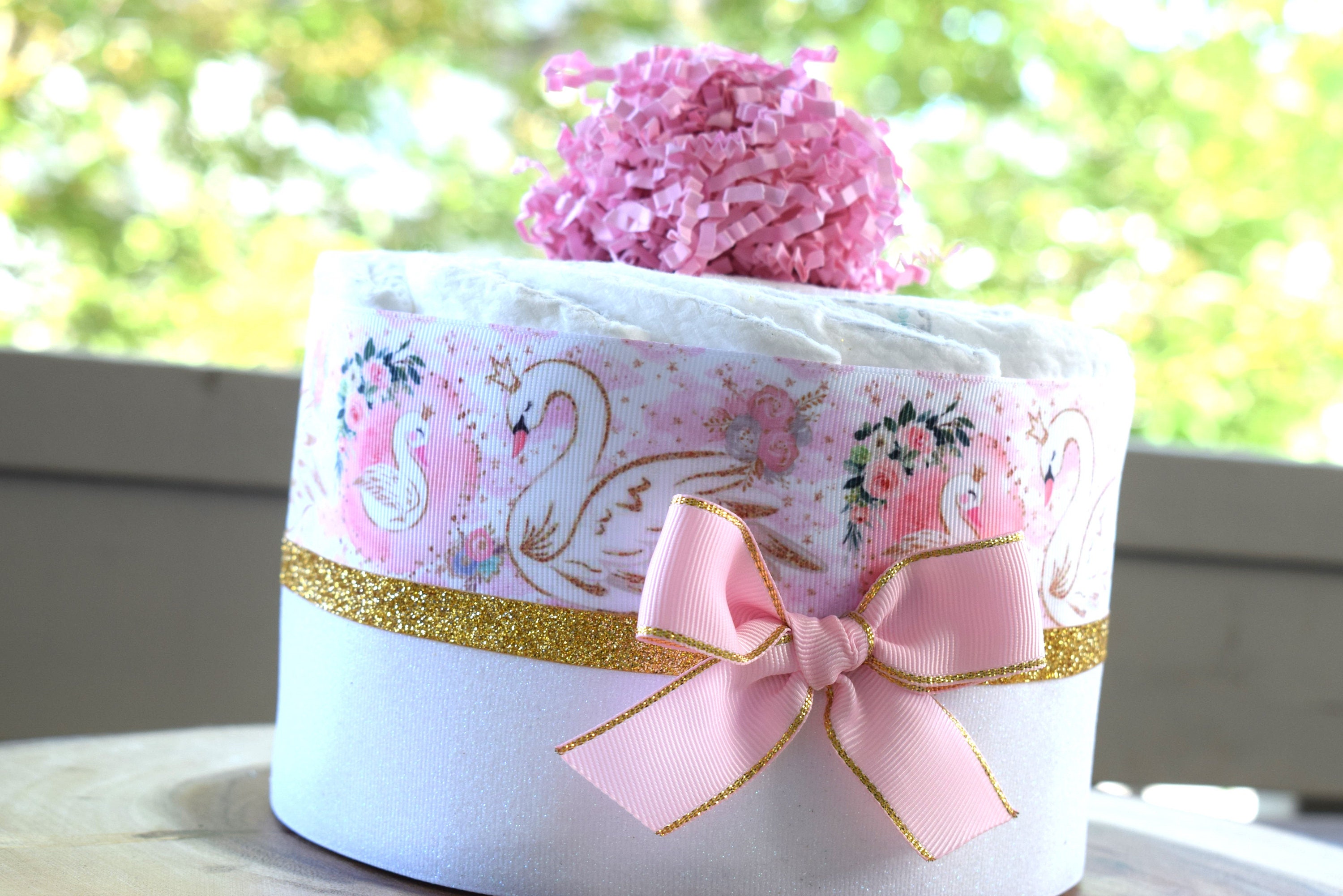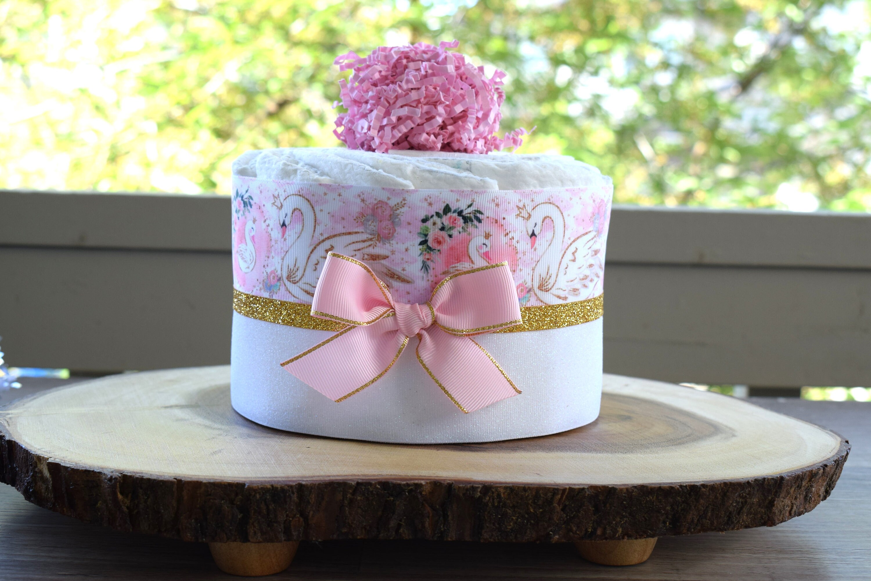 Pink Swan Mini Diaper Cake Baby Shower, Baby Shower Centerpieces Decorations, Girls Room Nursery Decor, New Mom Gifts, Baby Shower Gift