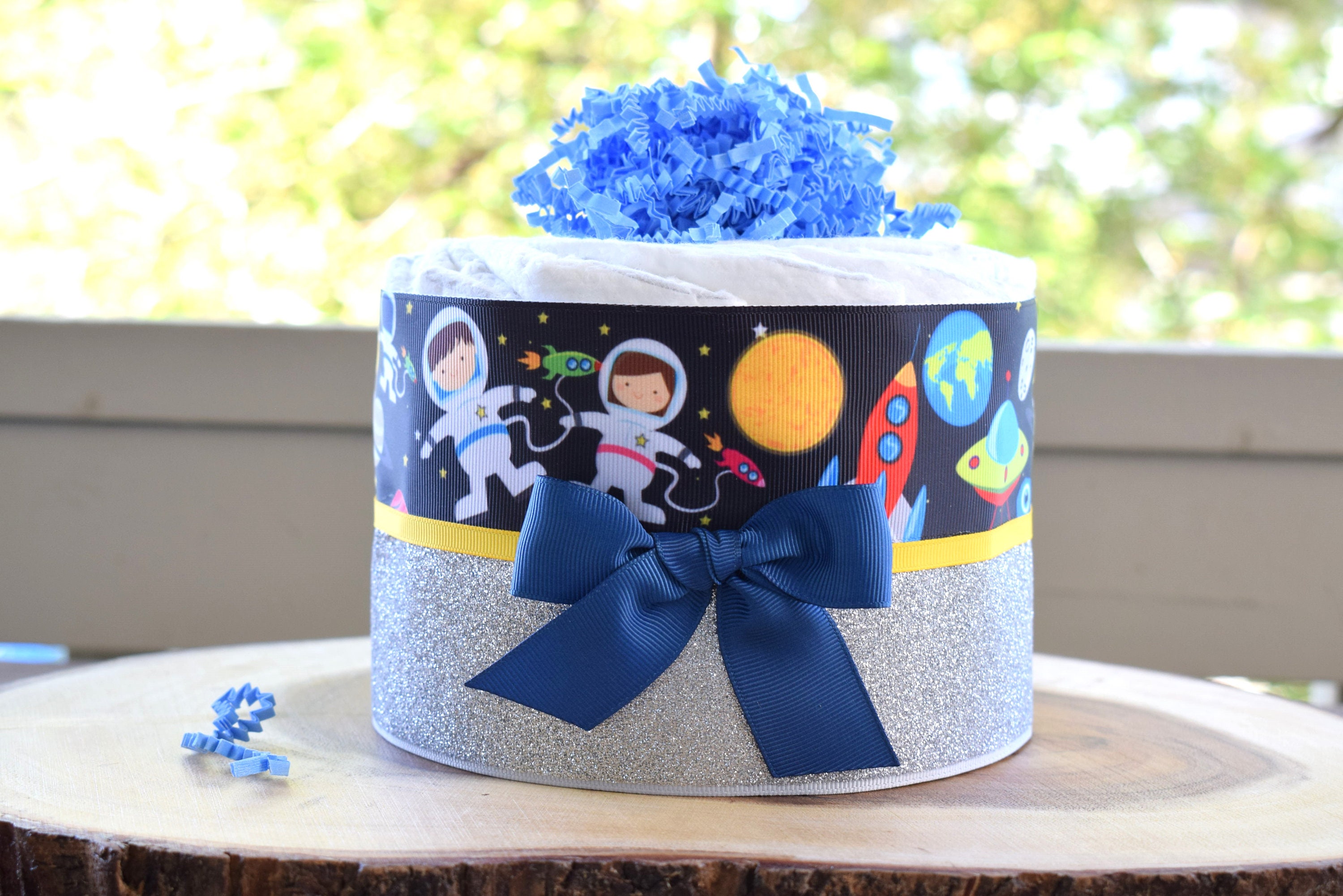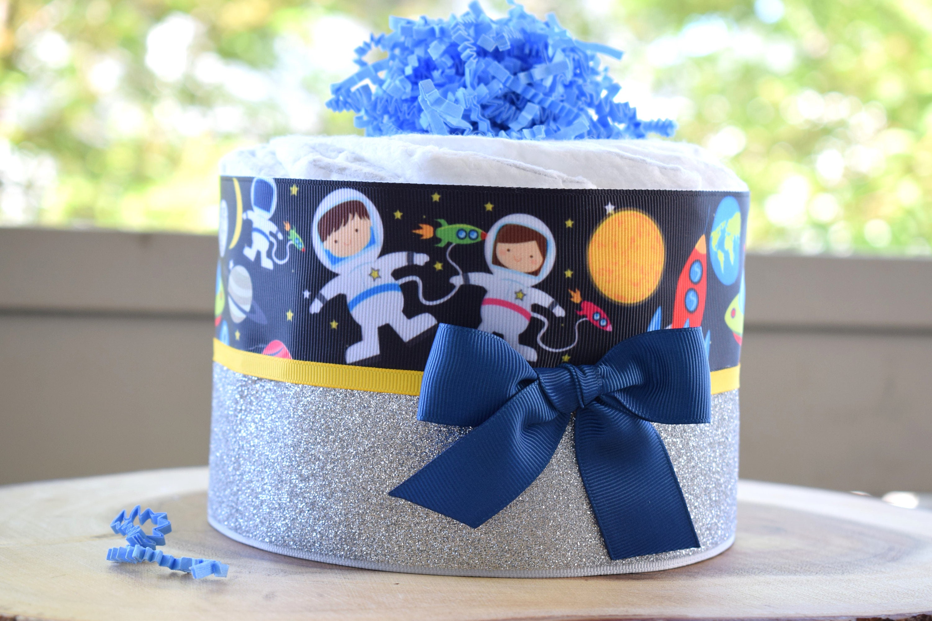 Astronaut Mini Diaper Cake Baby Shower, Space Baby Shower Centerpieces Decorations, Girls Room Nursery Decor, New Mom Gift, Baby Shower Gift